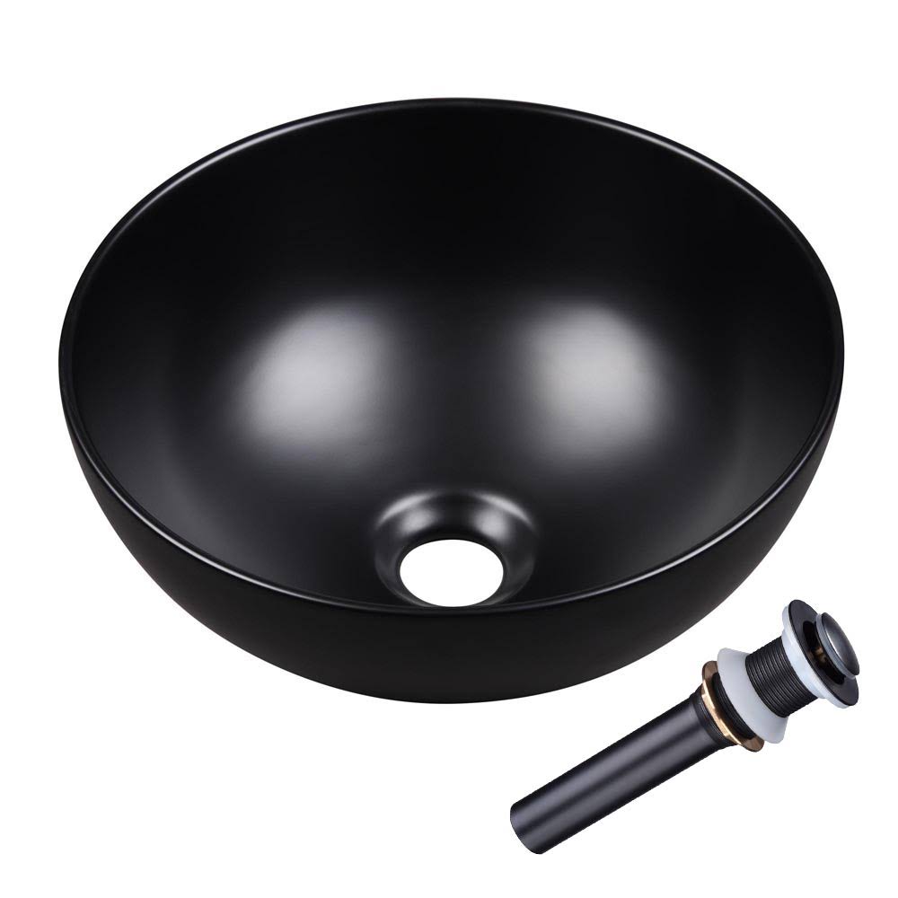 Aquaterior 12 inch Black Bathroom Vessel Sink Round Bowl Shaped Countertop Ceramic w/ Pop Up Drain - Avayadevconnect
