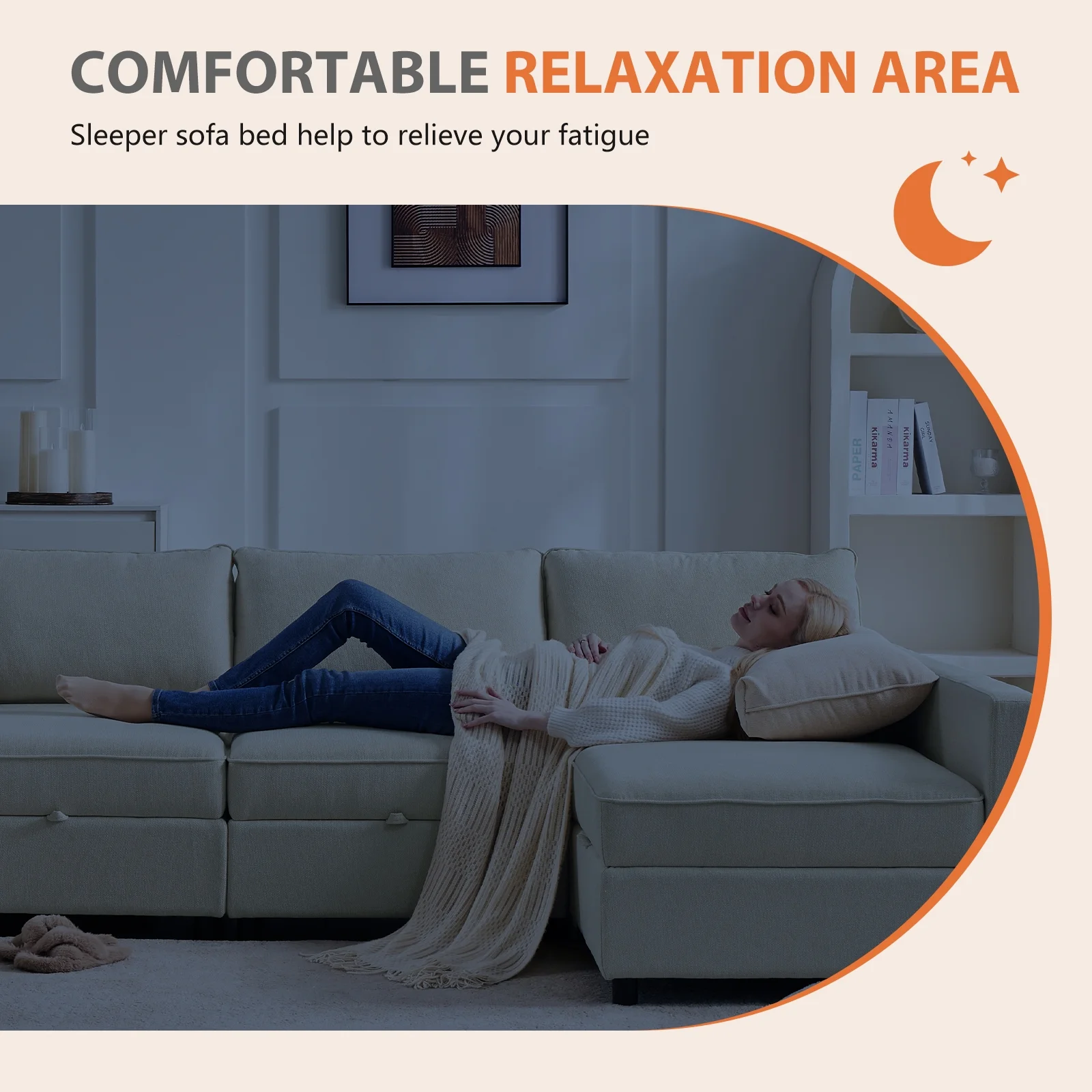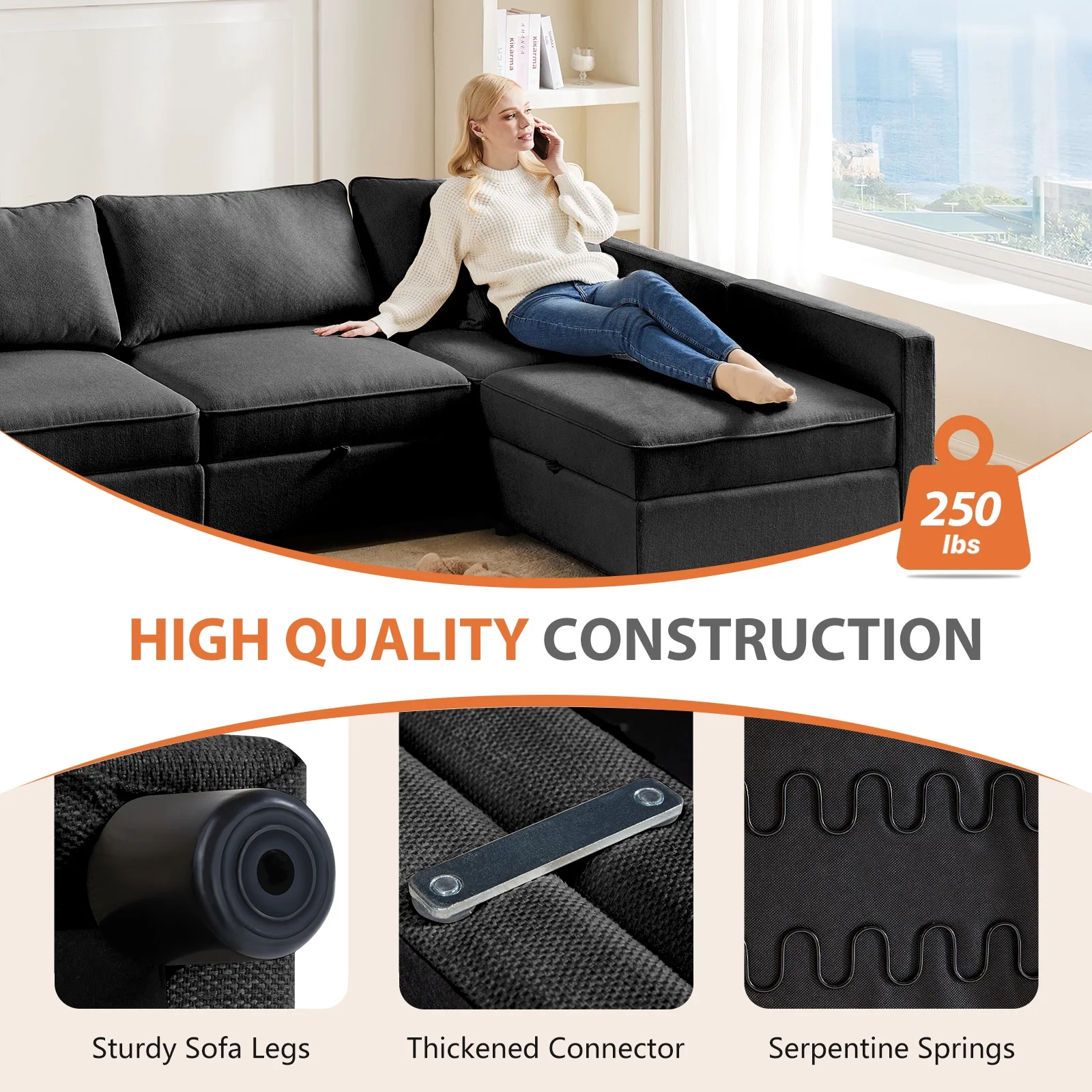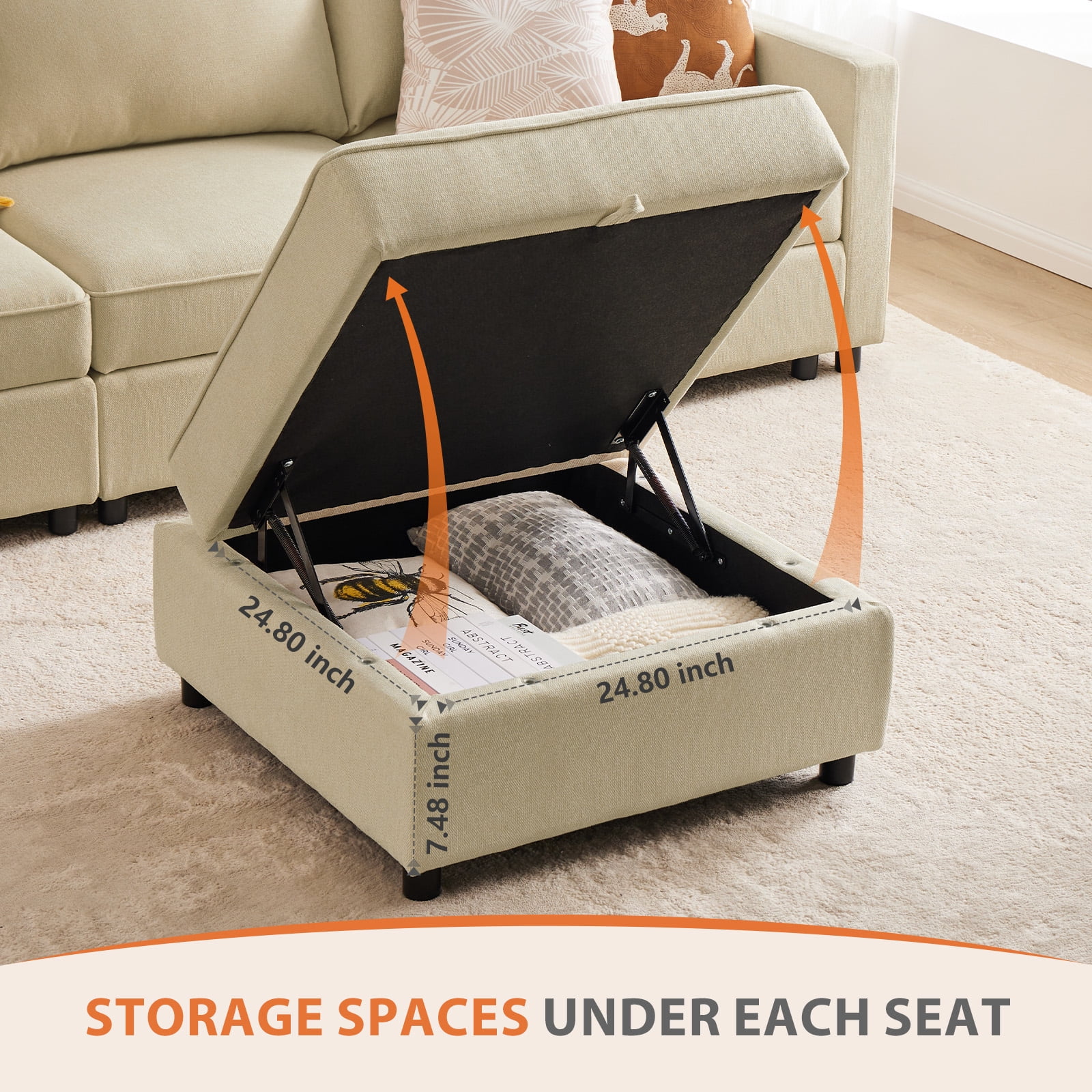 CONCETTA Modular Sectional Sofa, 4 Seat Convertible Oversized U Shaped Sofa Couch with Storage Ottomans, Beige