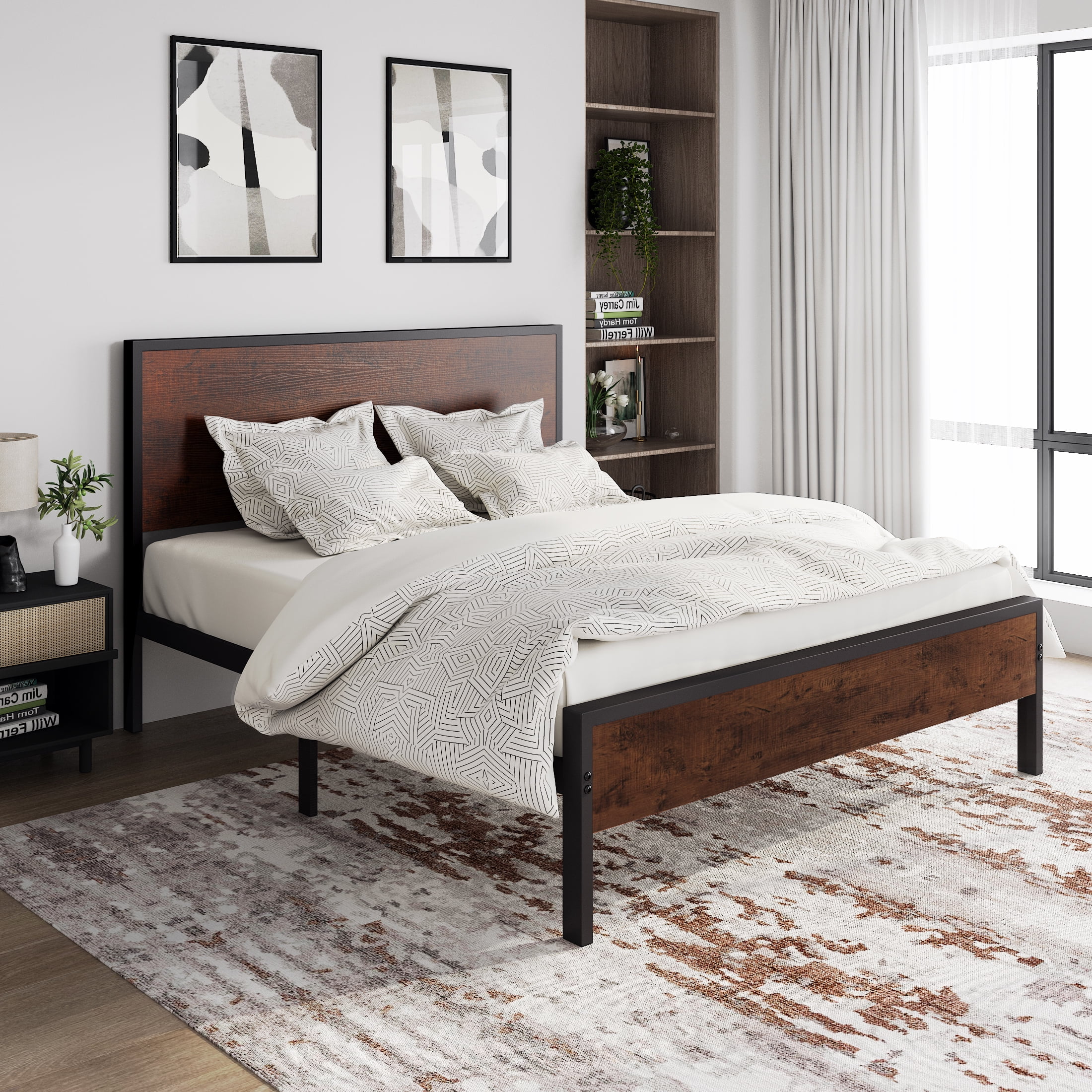 Allewie Queen Size Heavy Duty Bed Frame with Black Oak Headboard, Engineered Wood, 12'' Under Bed Storage
