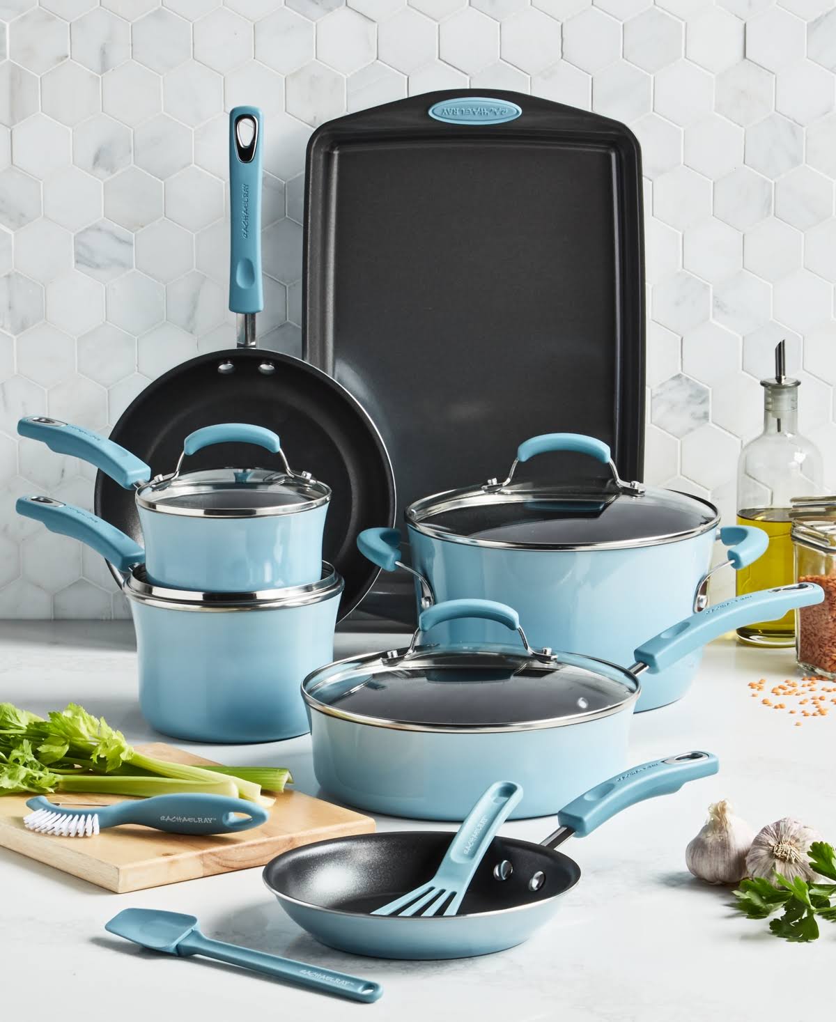 Rachael Ray Gradient Sky Blue Hard Enamel Nonstick Cookware Set, 14 PC - Avayadevconnect