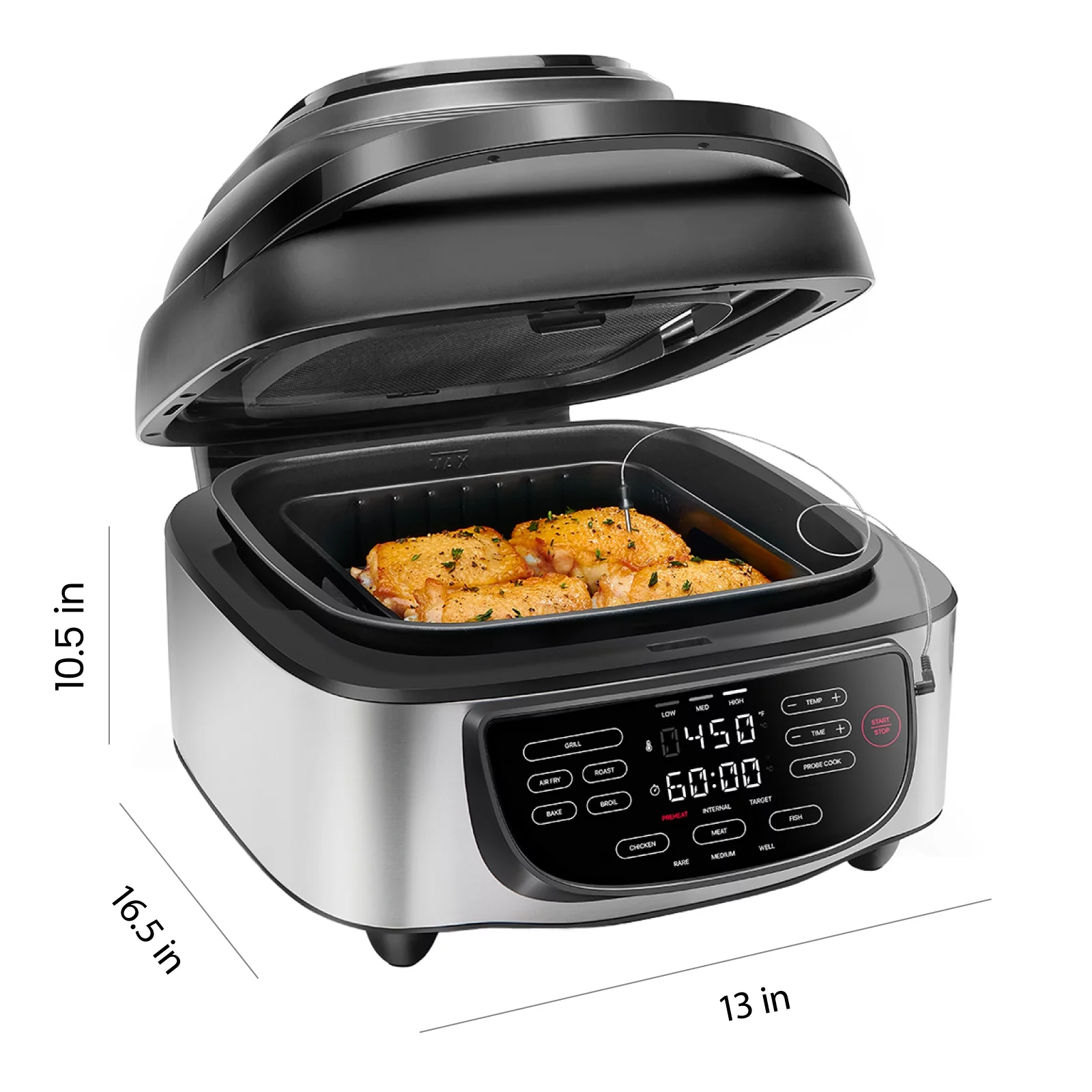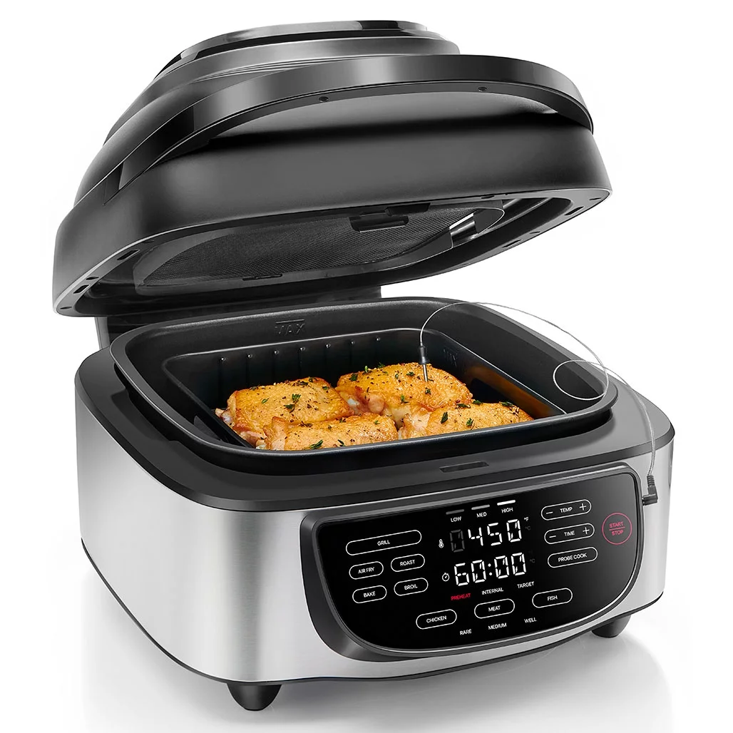 Chefman 5-in-1 Air Fryer + Indoor Grill w/ Thermometer, 7.4 qt Capacity - Stainless Steel, New