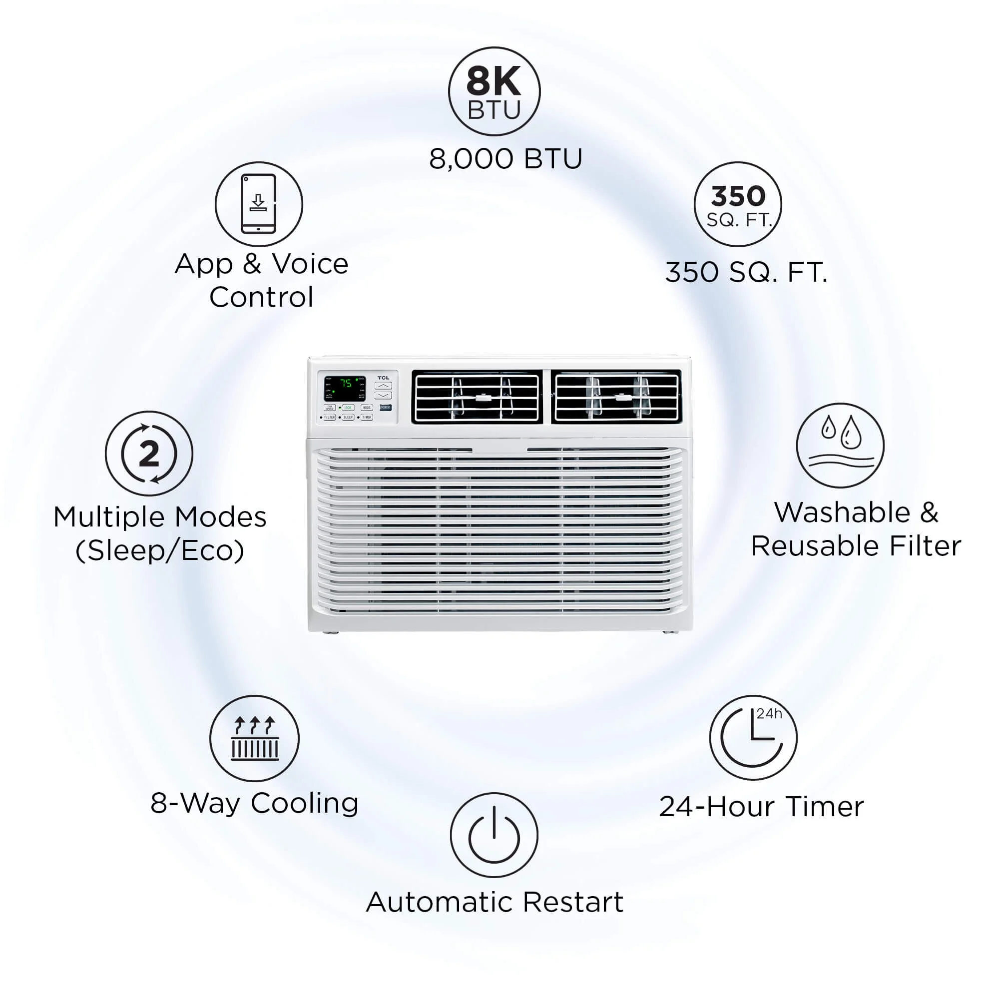 TCL Home 8,000 BTU 115-Volt Smart Window Air Conditioner with Remote, White, W8W91