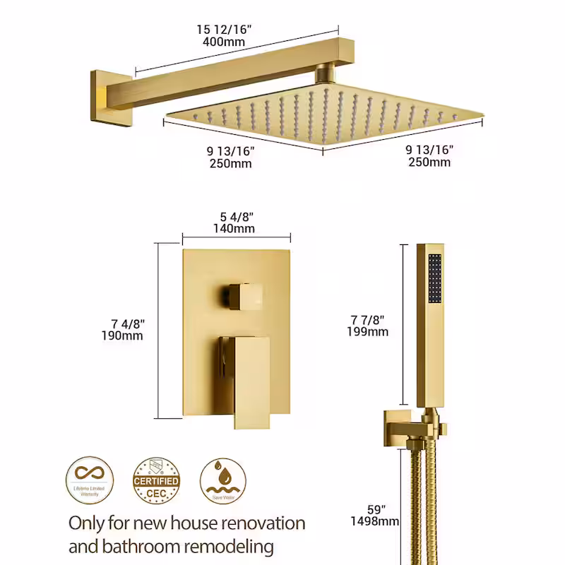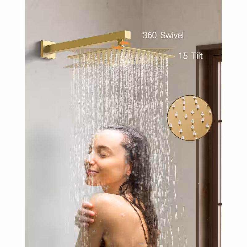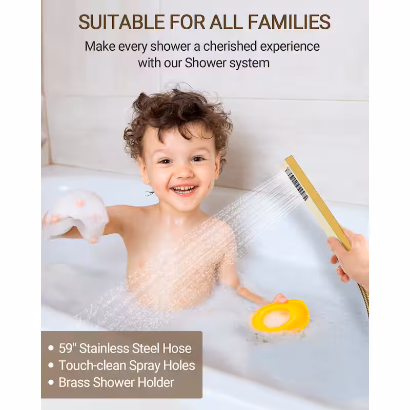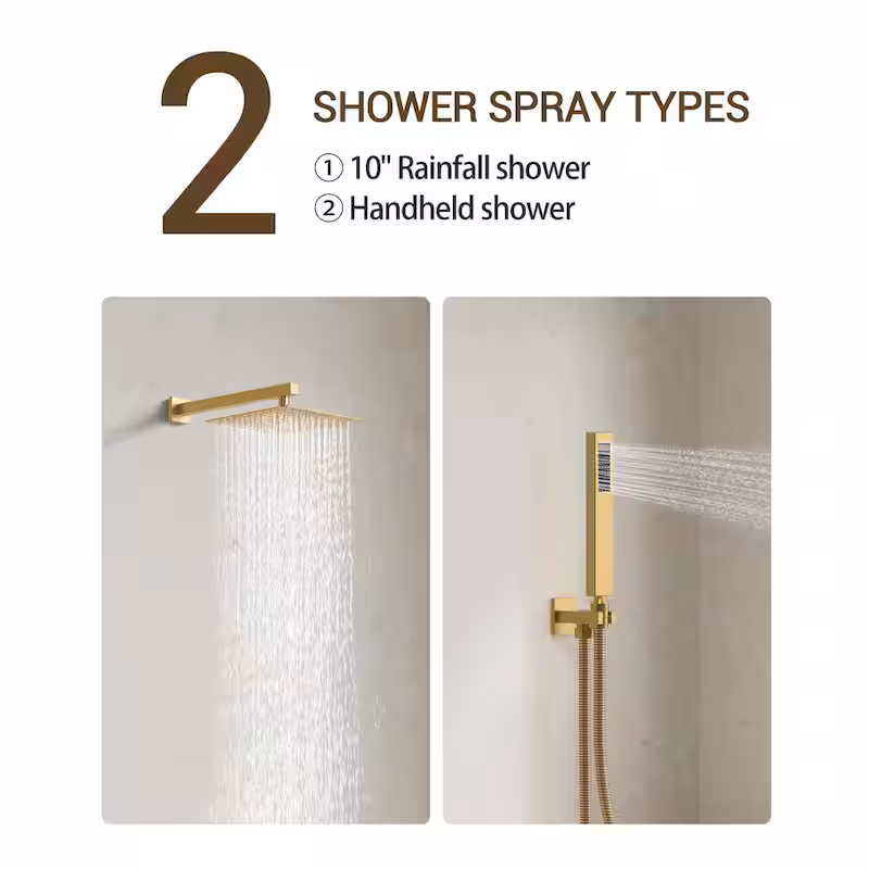 1-Spray 2.5 GPM Wall-Mounted Dual Shower Heads with Handheld Shower in Brushed Gold (Valve Included)
