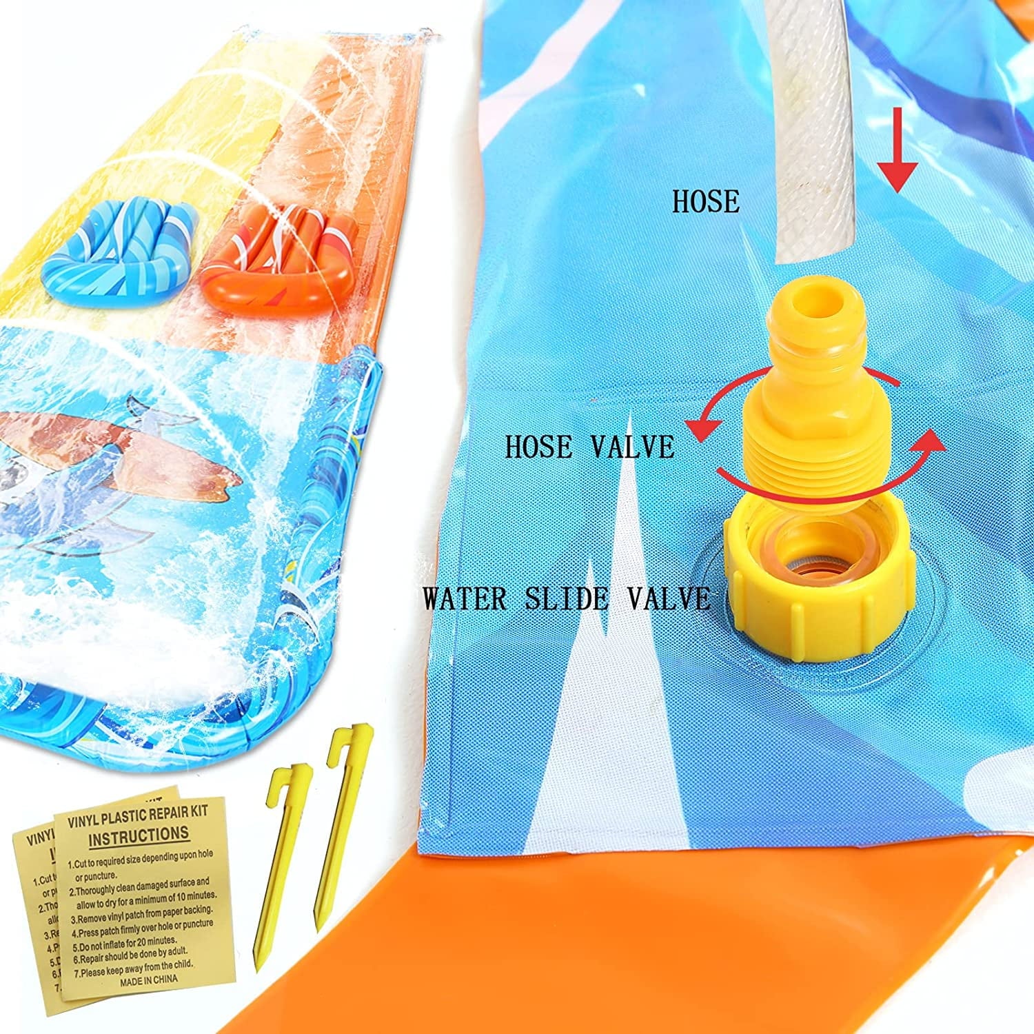 Terra Water Slide for Kids & Adult With Inflatable Water Splash with 2 Bodyboards Lanes Slip Racing Water Slide with Water Sprayer Build in Sprinkler for Porch 20ft