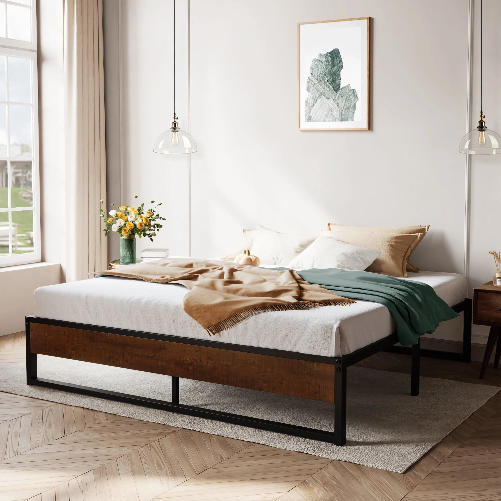 Allewie Black Twin Size Metal Platform Bed Frame with Storage, Mattress Foundation, No Box Spring Needed