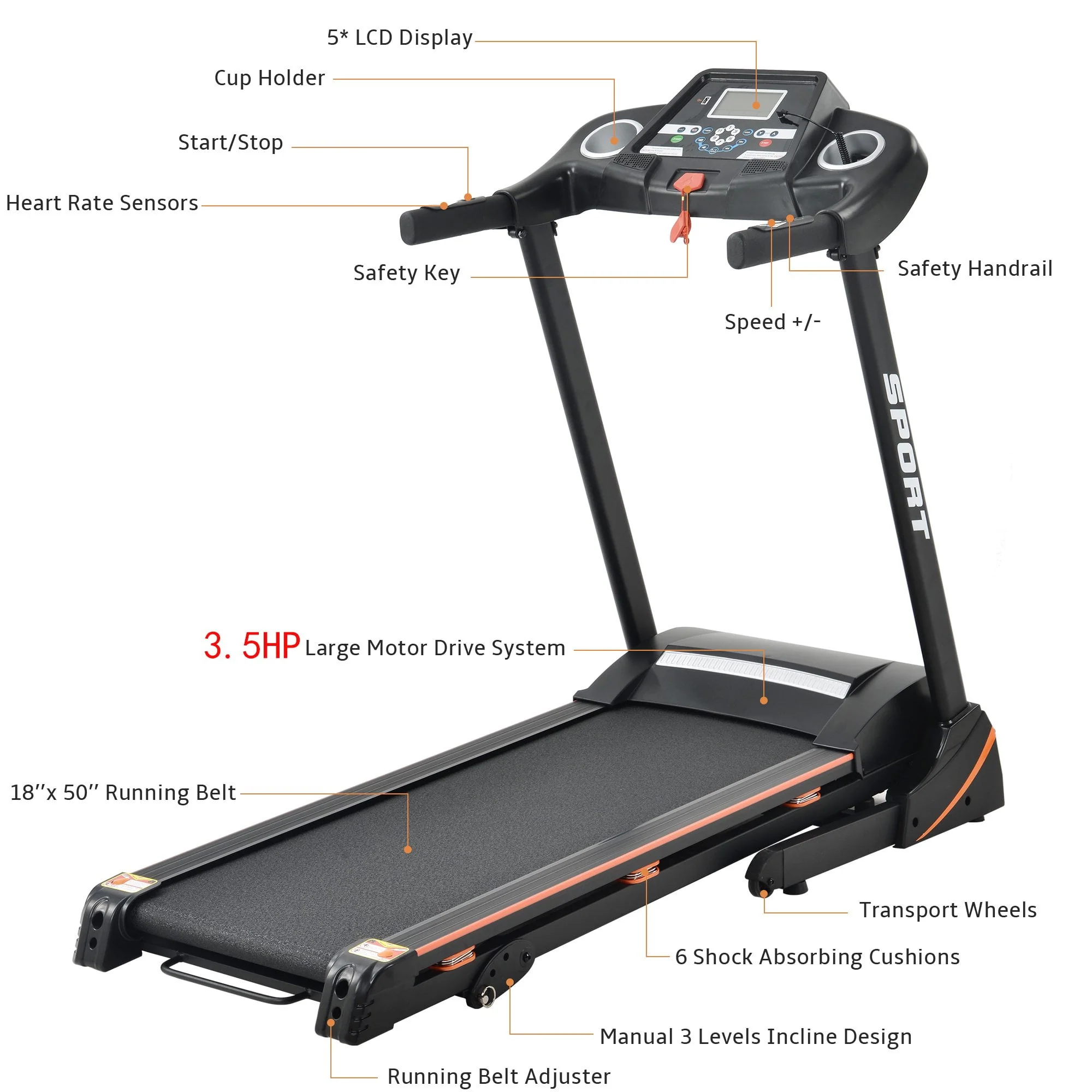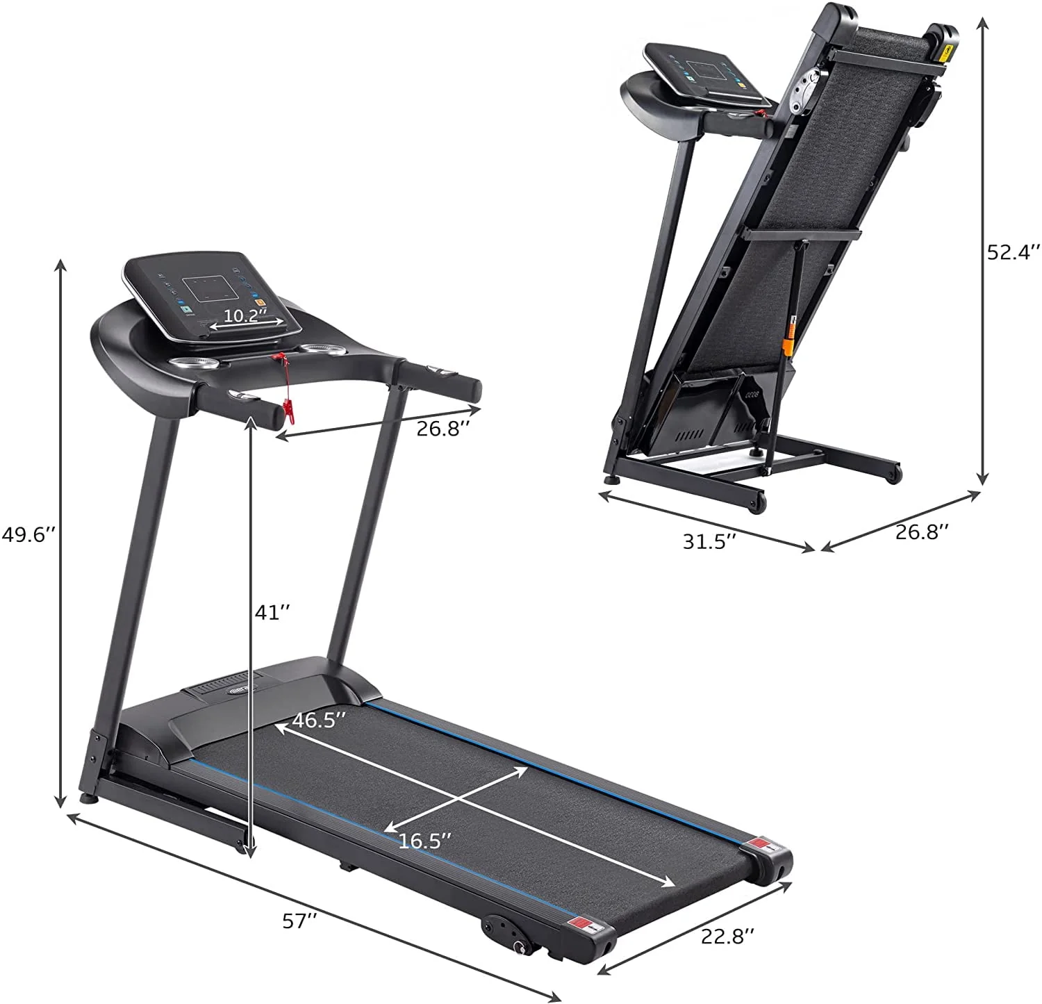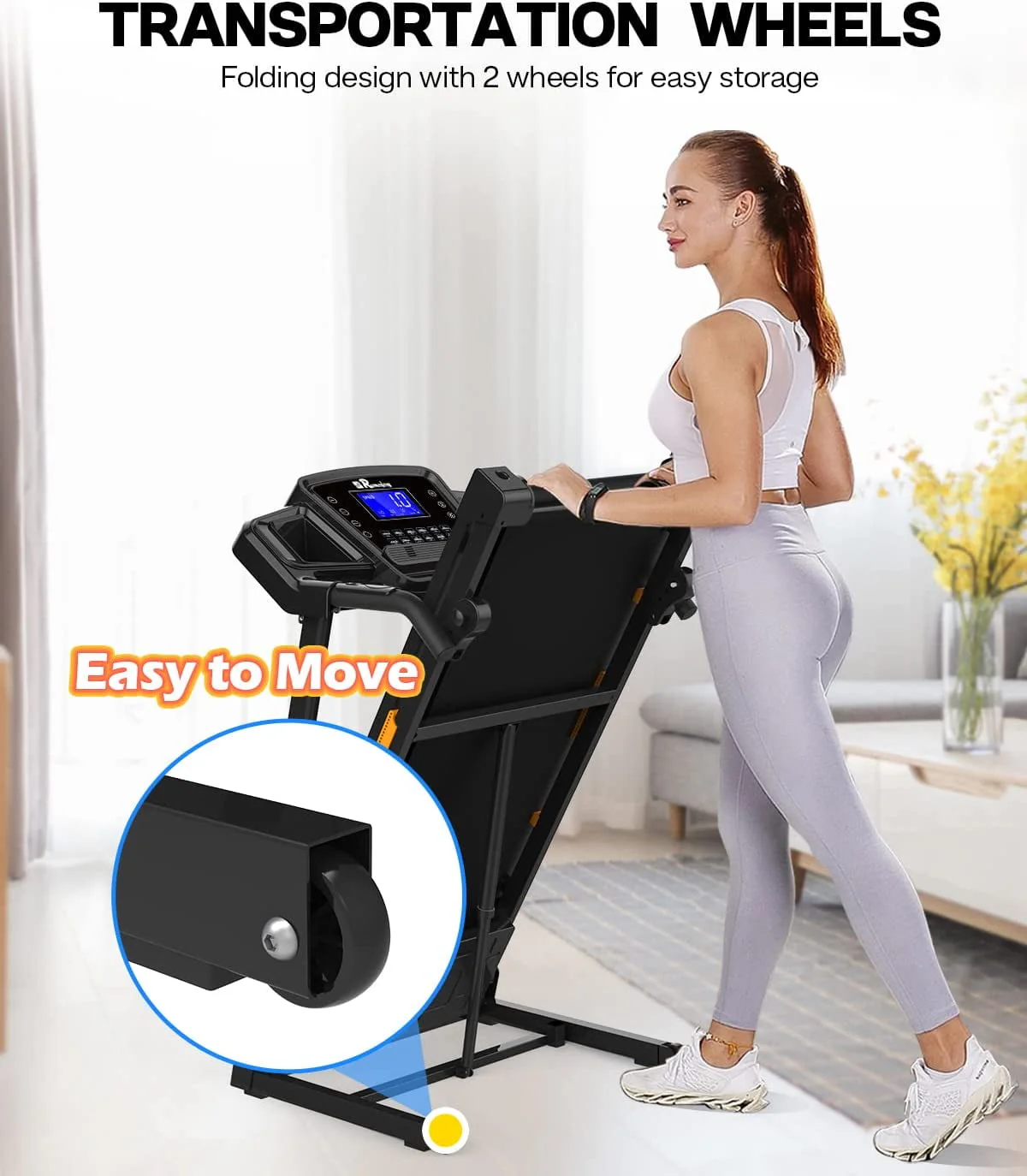 Folding Treadmills for Home - 3.5HP Portable Running Machine with Incline, 17 Wide Foldable Electric Treadmill for Walking Jogging Exercise with Bluetooth, 300 LBS Capacity Weight