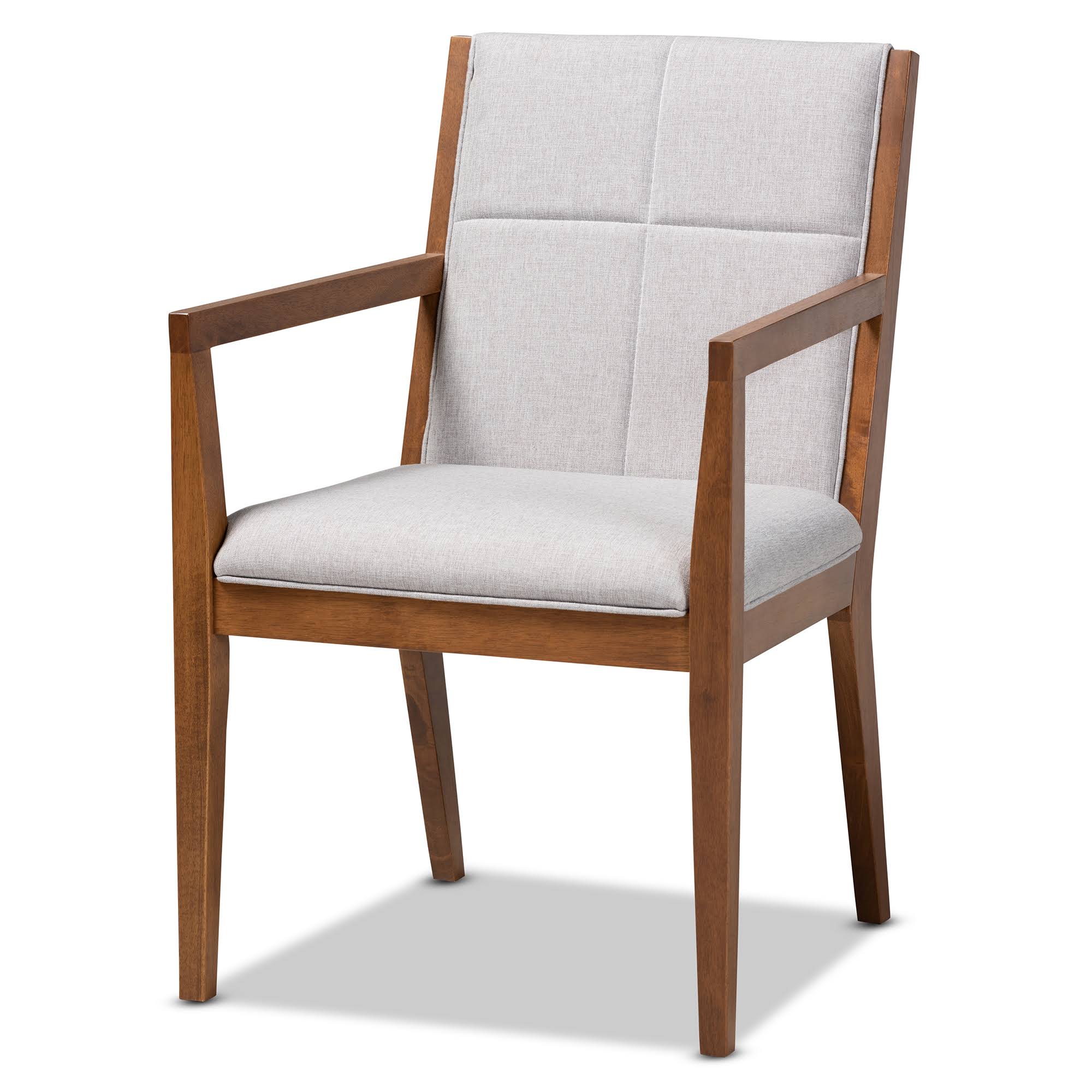 Baxton Studio Theresa Mid-Century Modern Greyish Beige Fabric Upholstered and Walnut Brown Finished Wood Living Room Accent Chair - Megean
