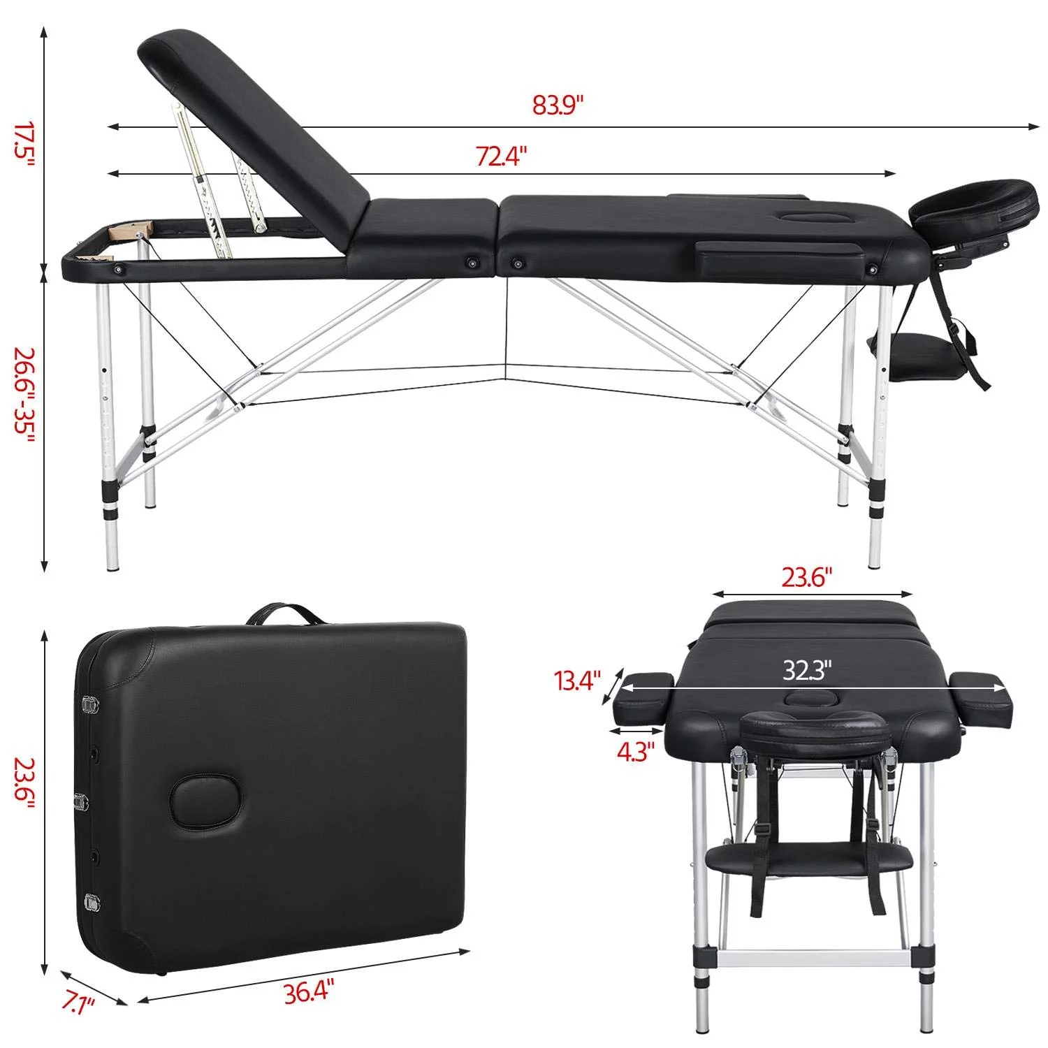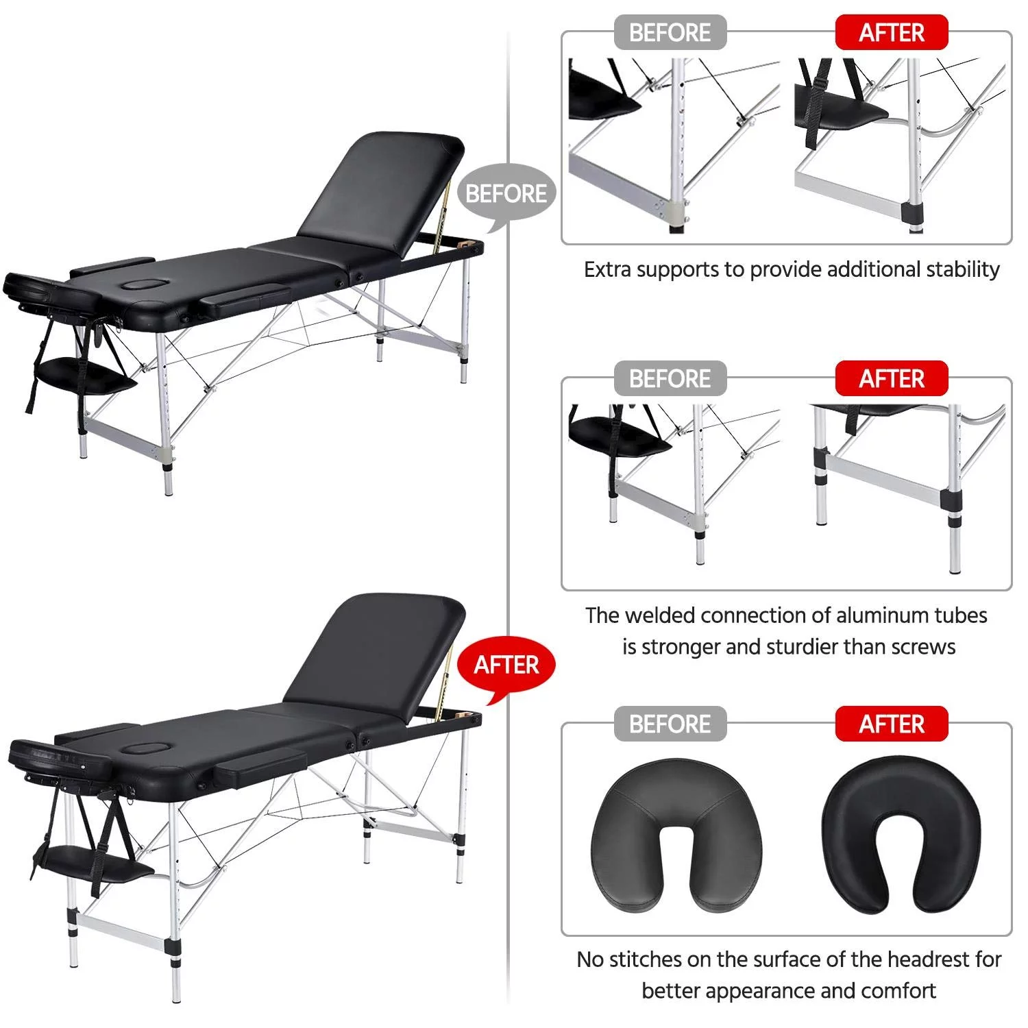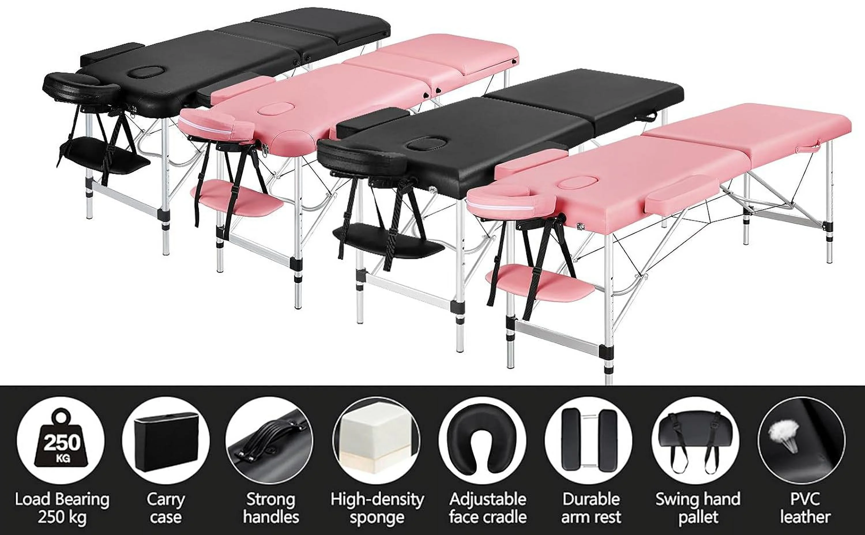 Massage Tables Portable Lash Bed for Eyelash Extensions Aluminium Tattoo Table Height Adjustable Spa Bed Lightweight with Non-Woven Bag, Pink - Curated Treasures Market