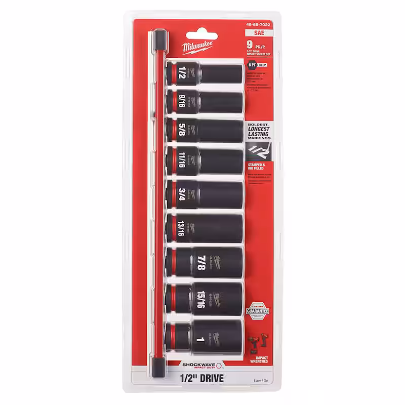 SHOCKWAVE Impact Duty 1/2 in. Drive SAE Deep Well Impact Socket Set (9-Piece)