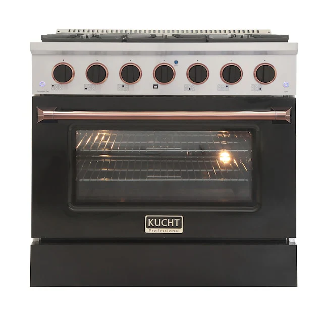 Kucht 36 Pro-Style Natural Gas Dual Fuel Range in Black with Rose Gold Accents, KDF362-K-ROSE