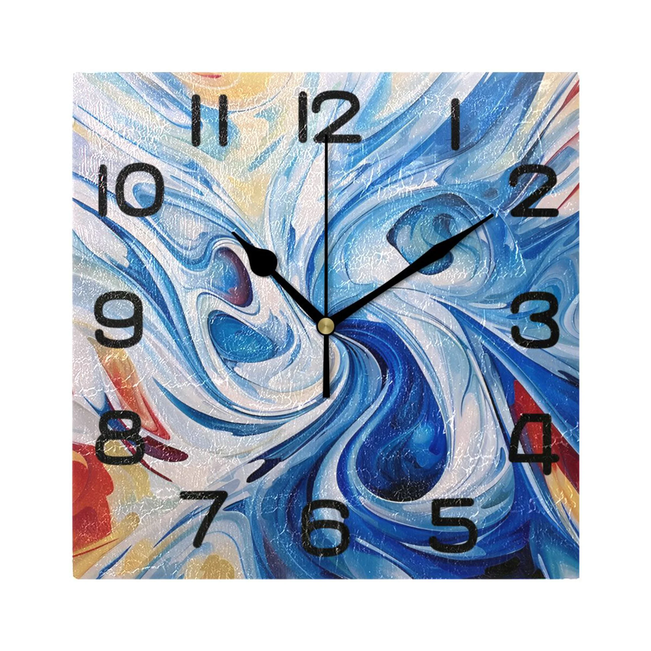 Blue with Liquid Wall Clock Square Silent Non-Ticking Battery Operated Retro 7.78" Clock Home Kitchen Office Decoration - Curated Treasures Market