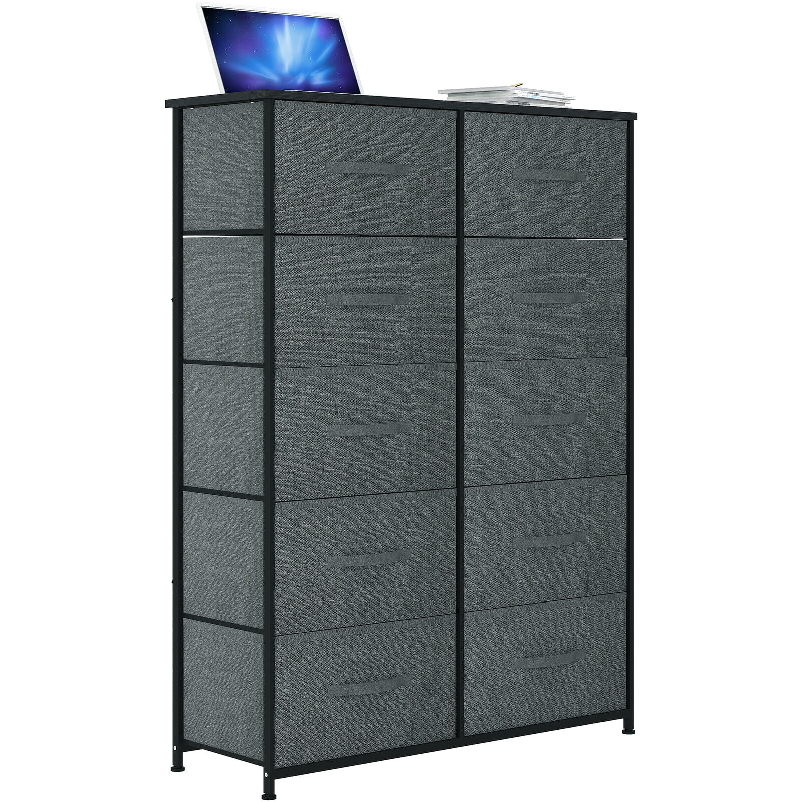YITAHOME 10 Drawers Storage Organizer Wooden Top Shelf for Hallway, Dark Gray