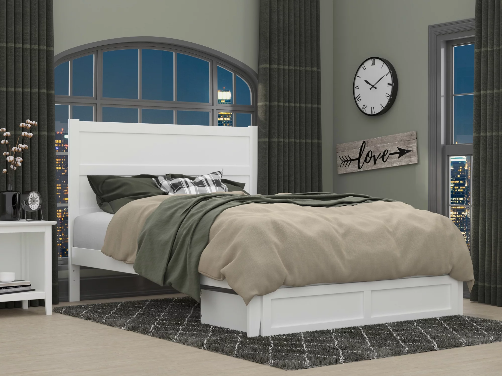 AFI NoHo 14 Queen Wood Platform Bed Frame with Foot Drawer Storage. White