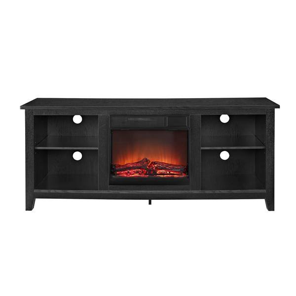 Walker Edison Essential 58" Wood TV Stand with Fireplace, Black - Megean