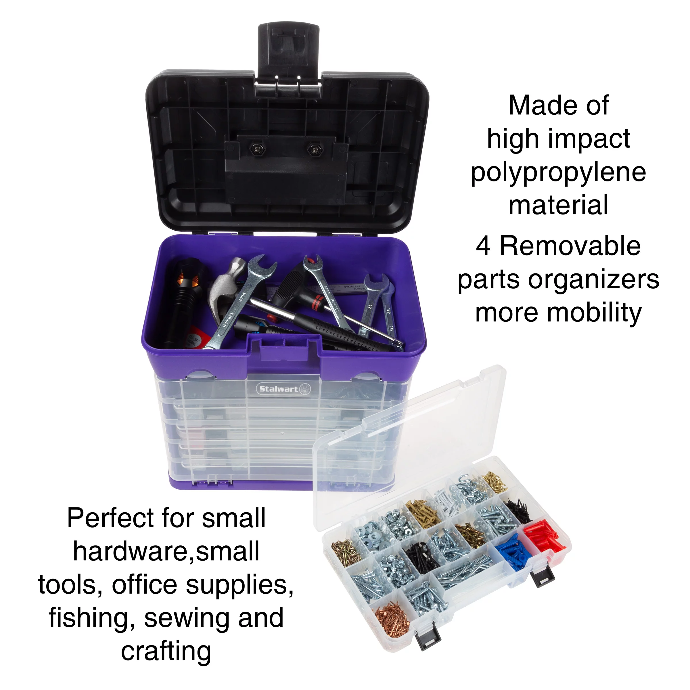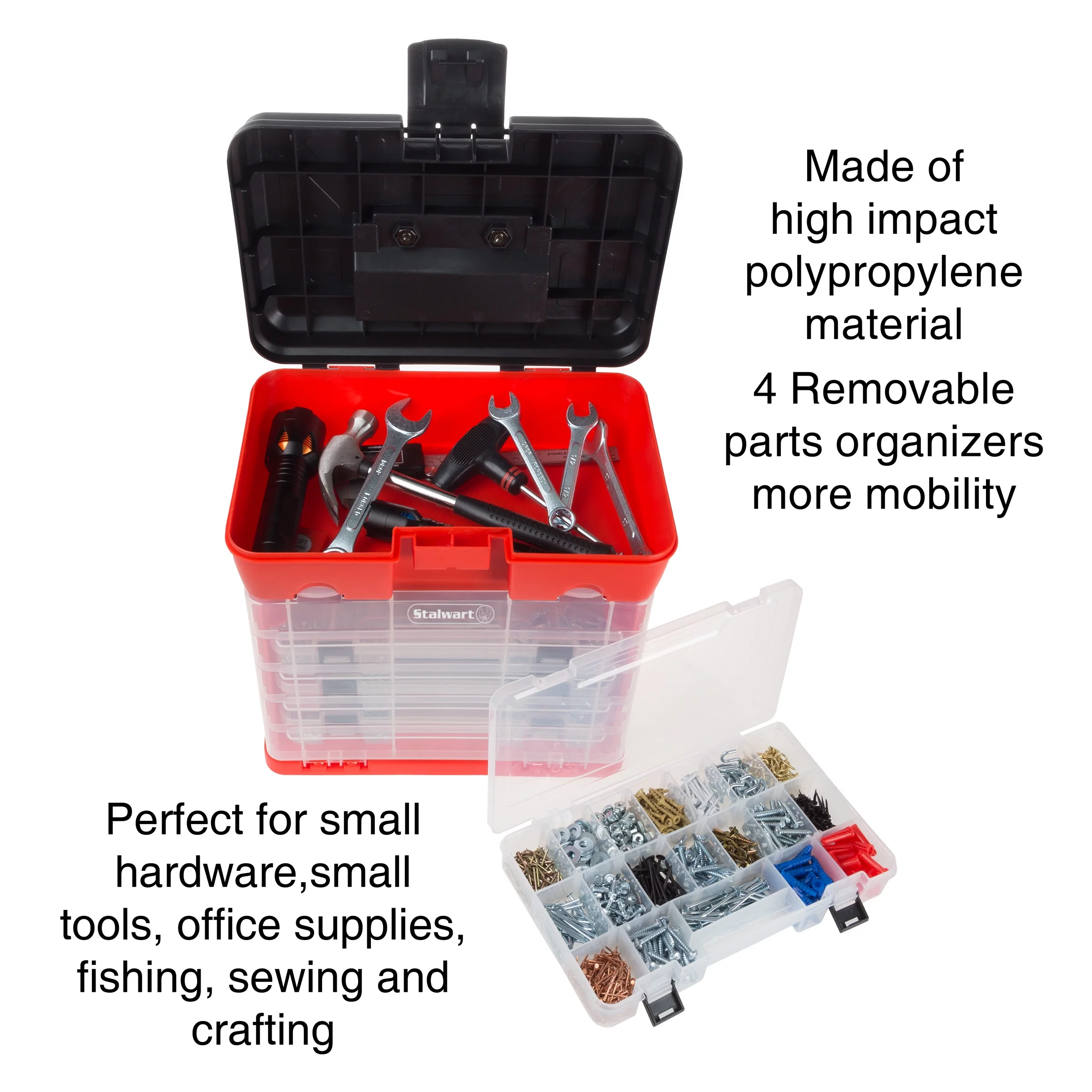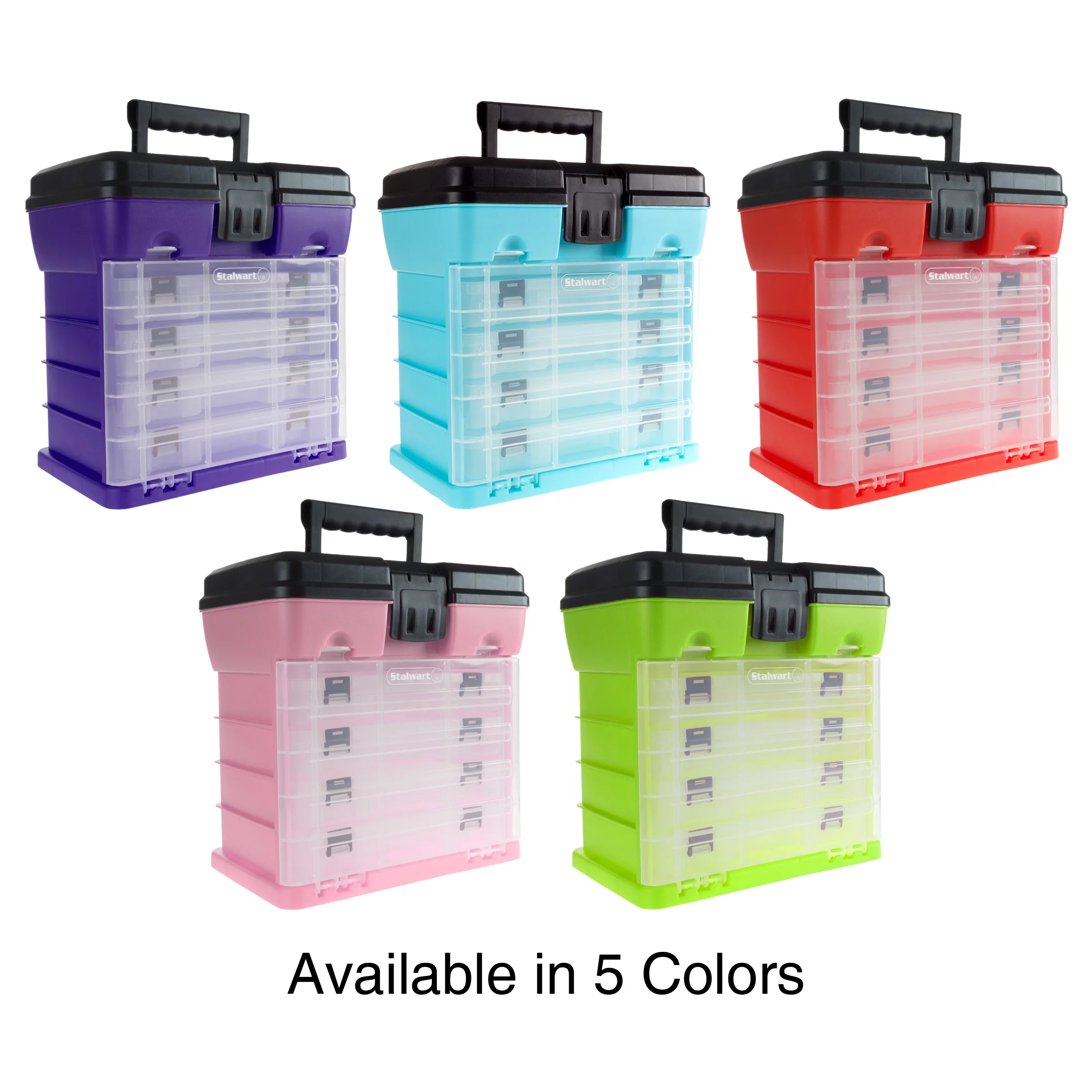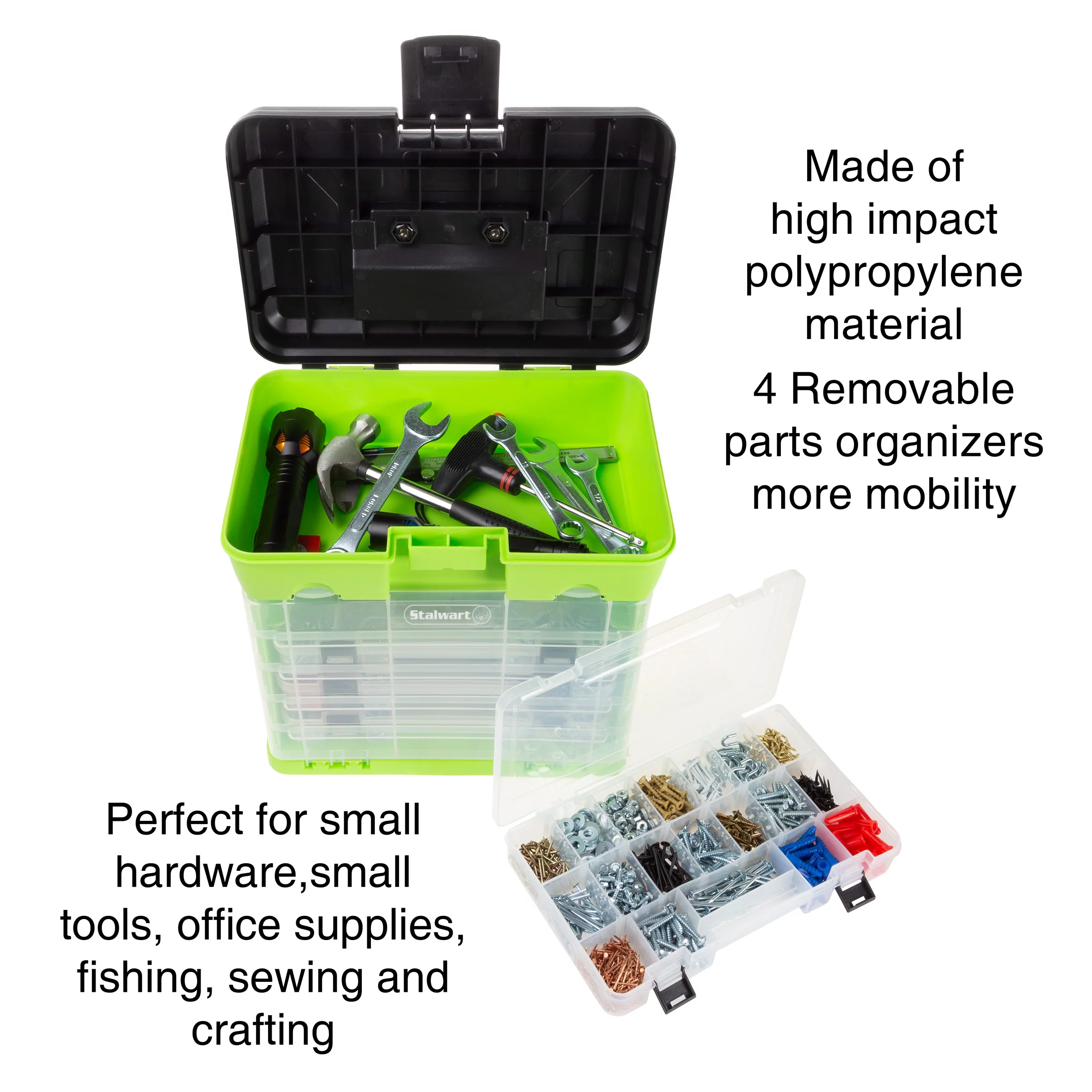 Storage and Tool Box-Durable Organizer Utility Box-4 Drawers with 19 Compartments Each for Hardware Fish Tackle Beads and More by Stalwart (Green)