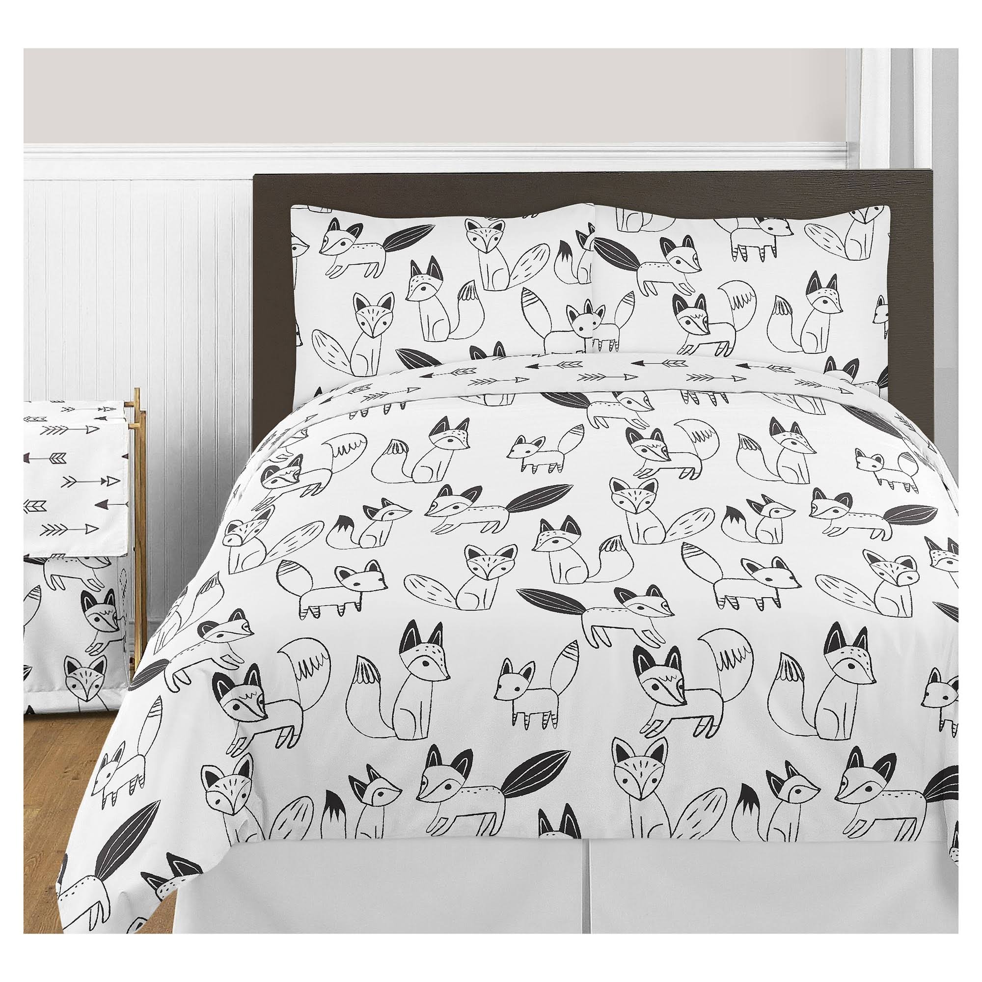 Sweet Jojo Designs Black and White Fox Arrow Boys or Girls 3 Piece Full Queen Bedding Teen Set - Megean