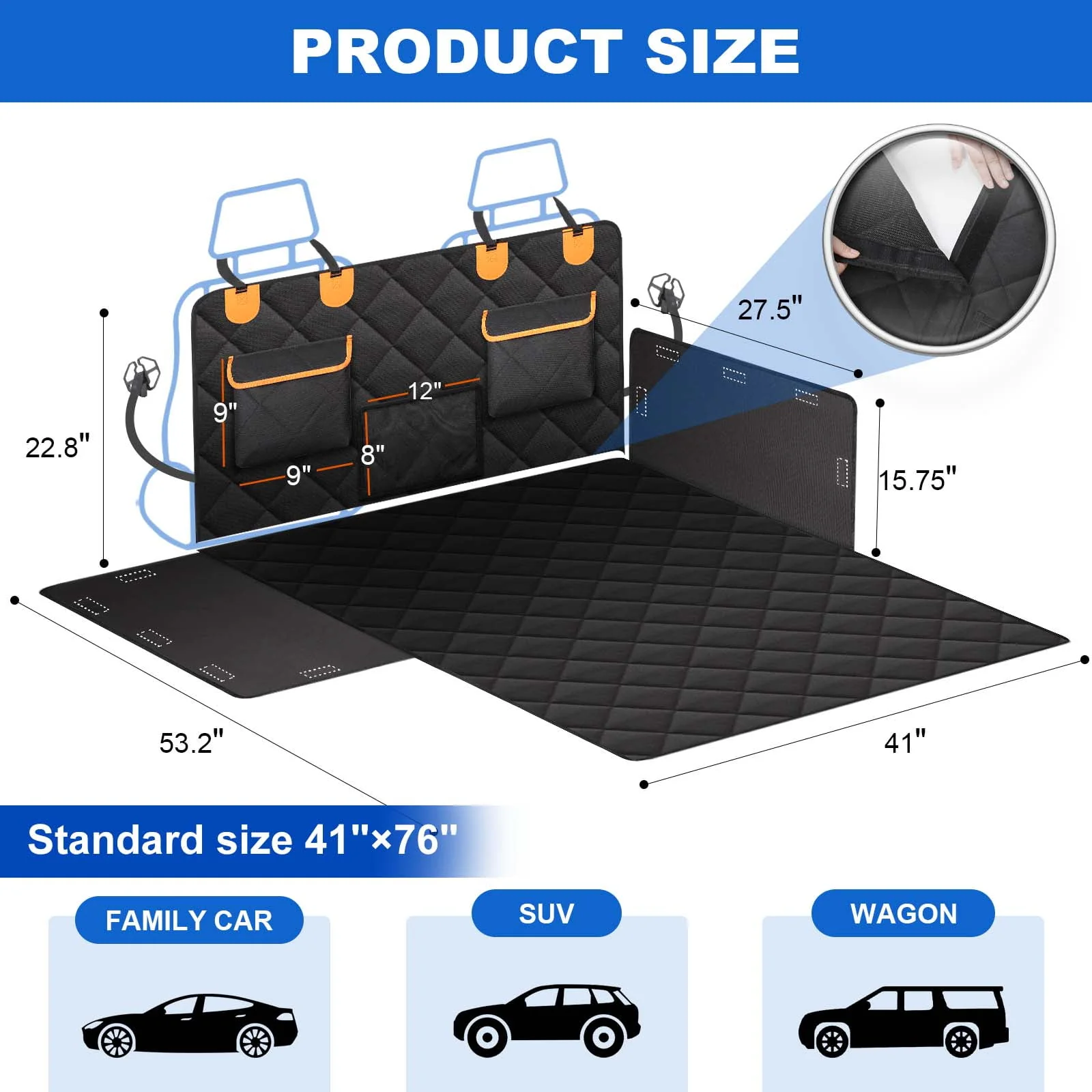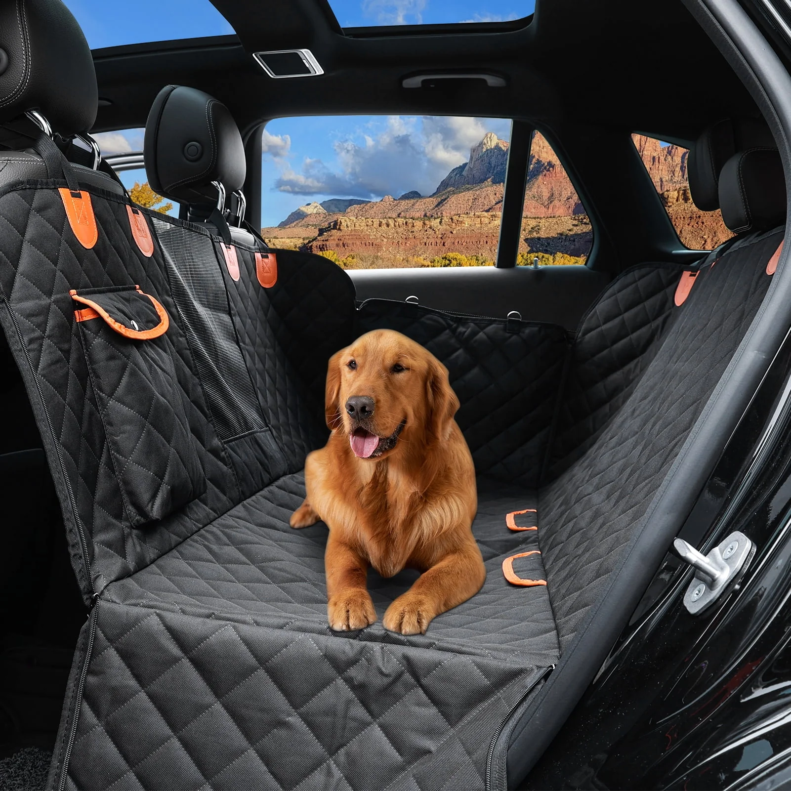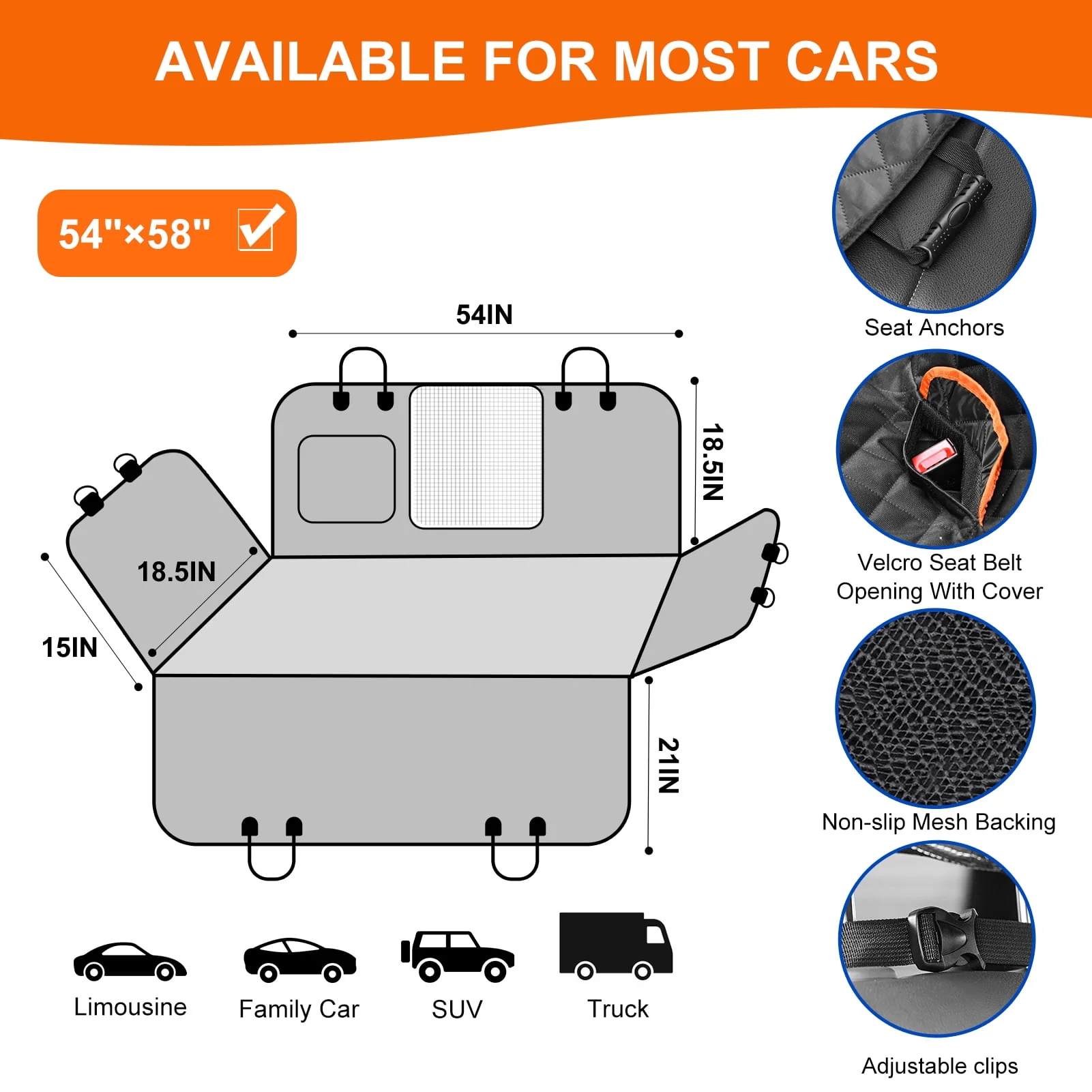 Dog Hammock for Car with Mesh Window, 600D Oxford Waterproof Nonslip Durable Seat Protector for Back Seat for Car Truck SUV(54 W x 58 L)