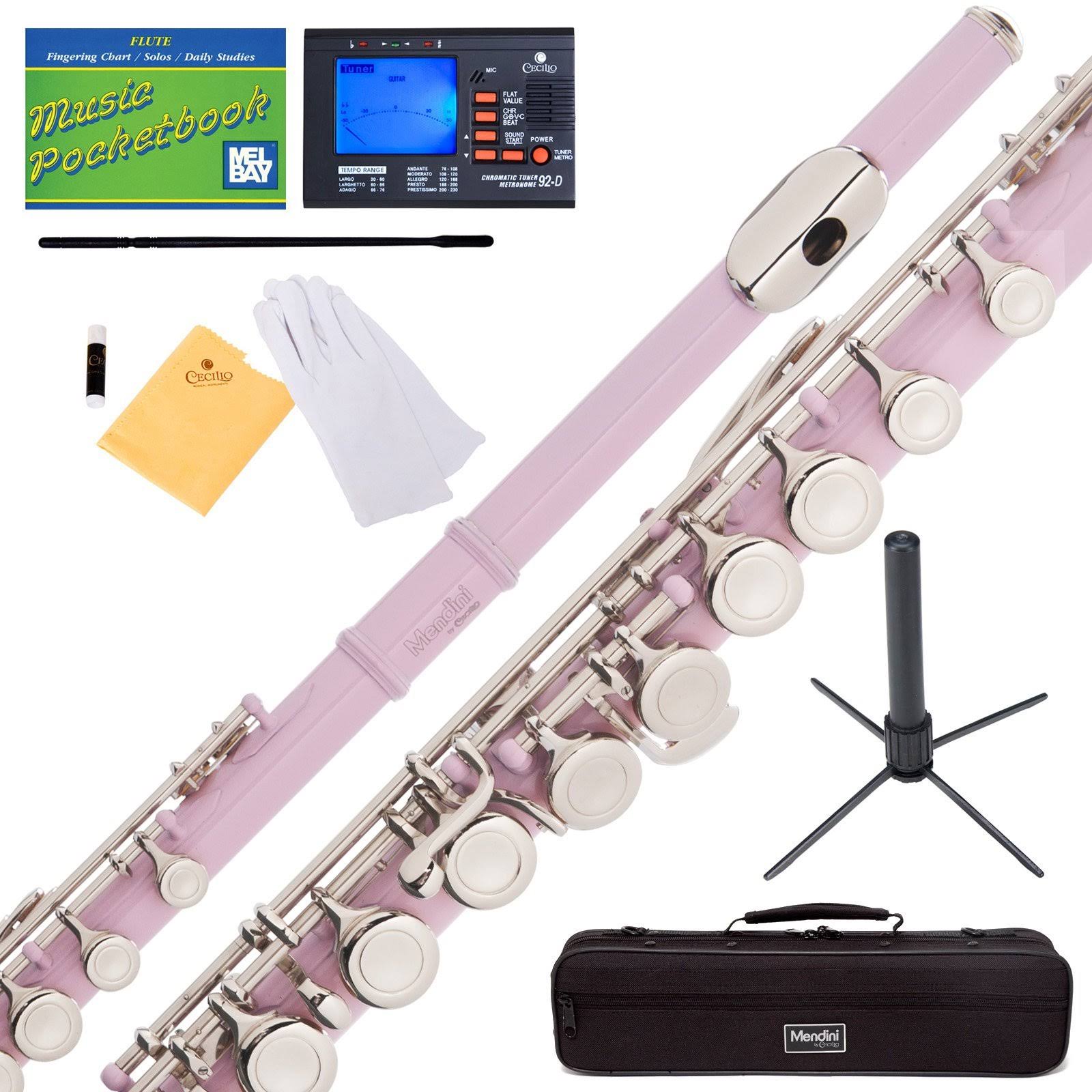 Mendini MFE-PK+SD+PB+92D Pink Lacquer Closed Hole C Flute with 1 Year Warranty, Case, Tuner, Stand, Cleaning Rod and Clo - Megean