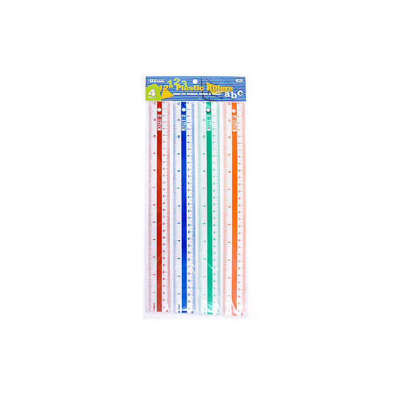 Bazic 12" (30cm) Plastic Ruler - 4/Pack - Megean
