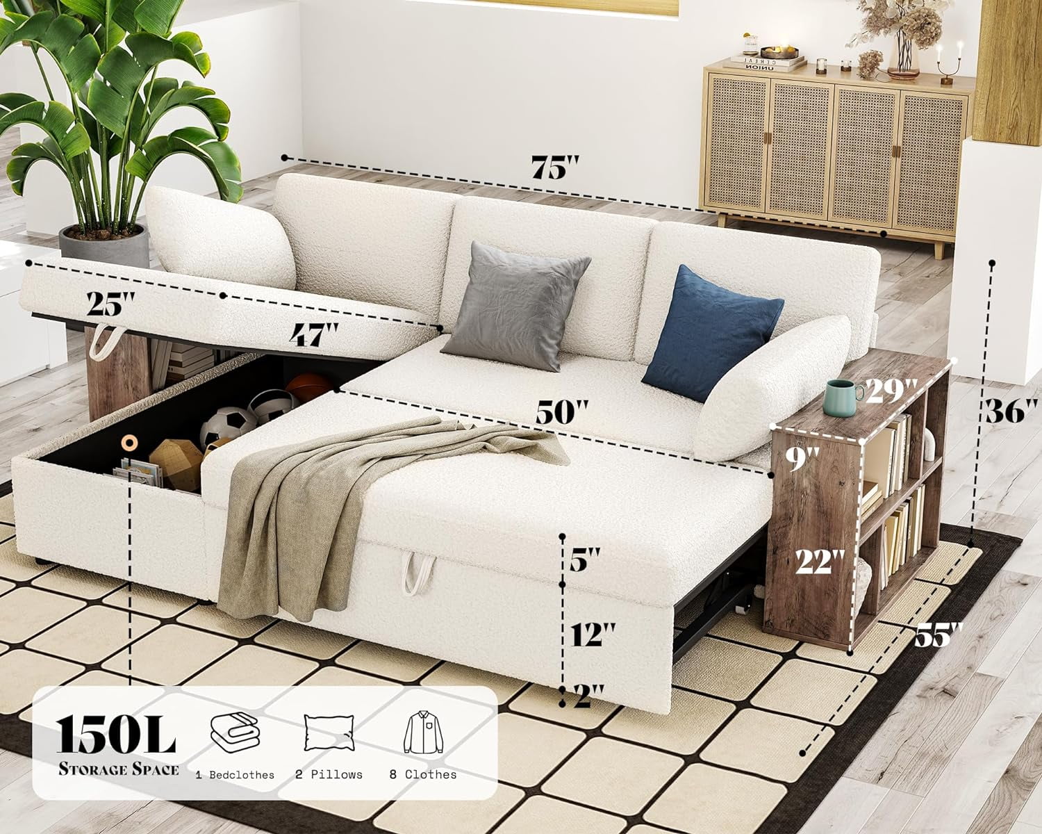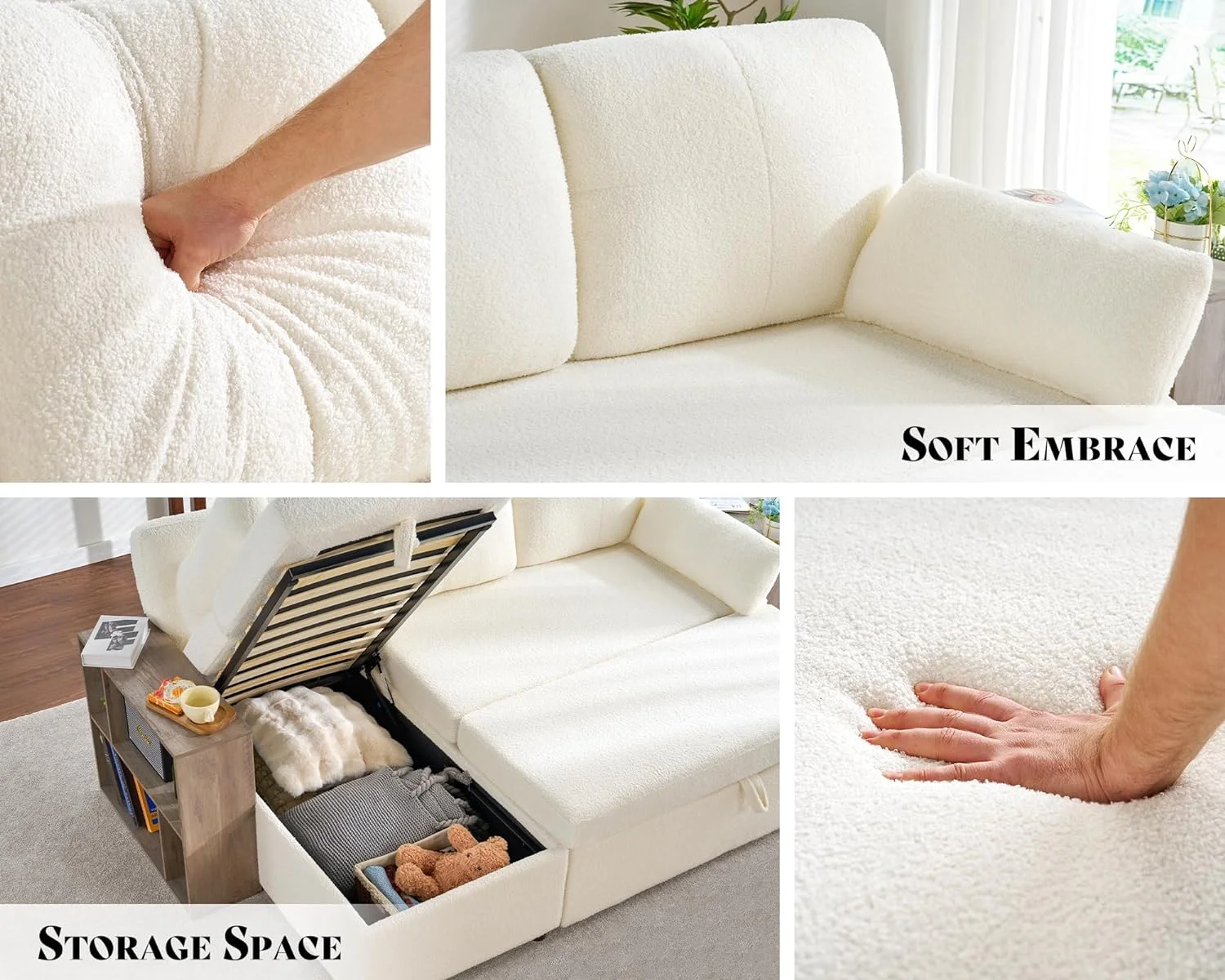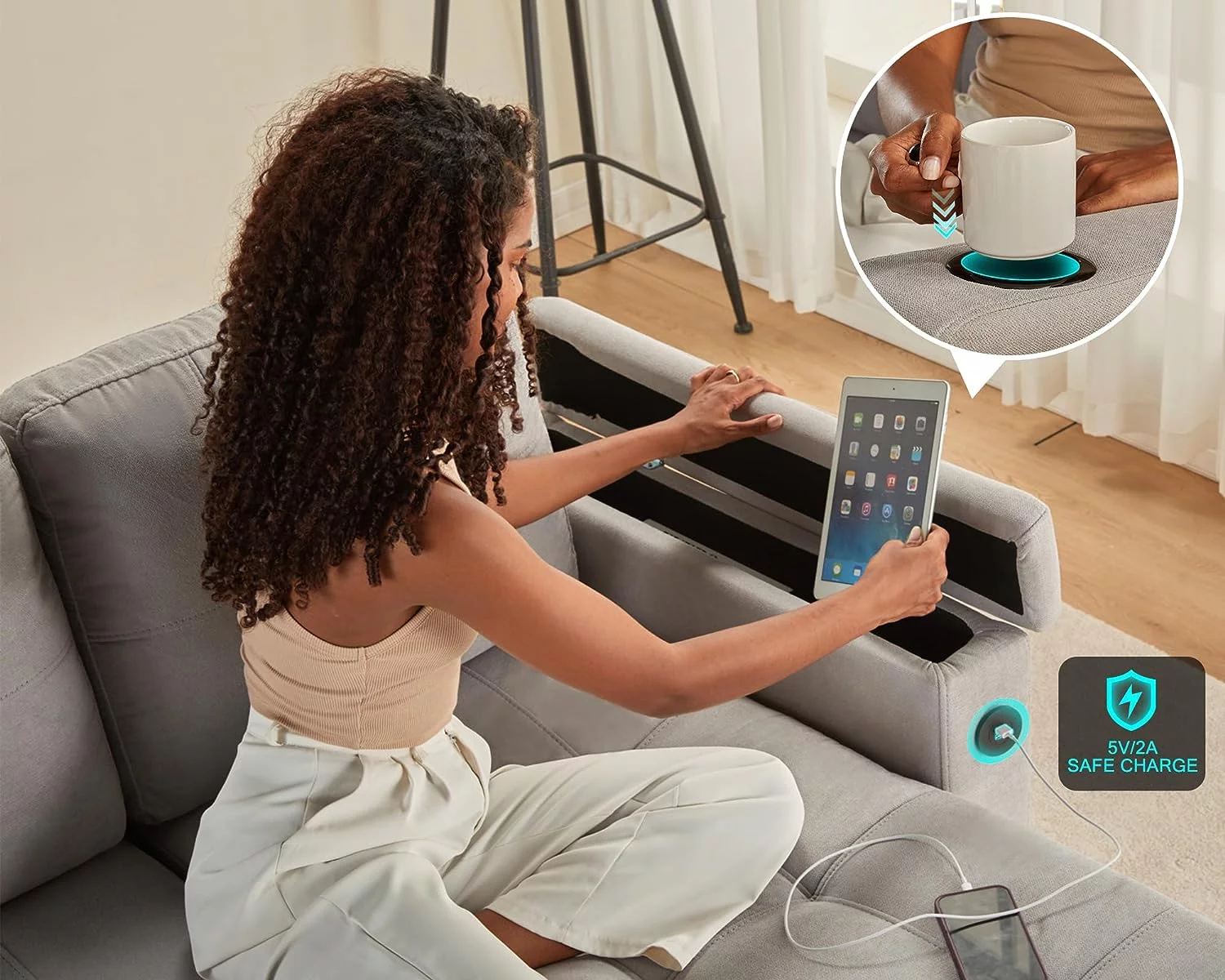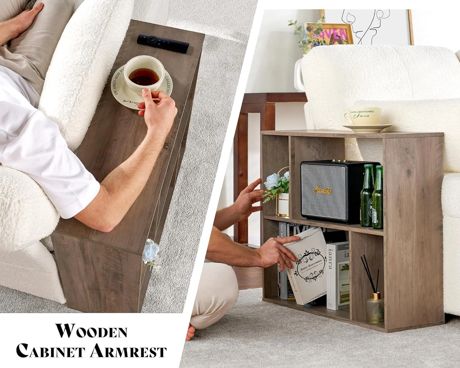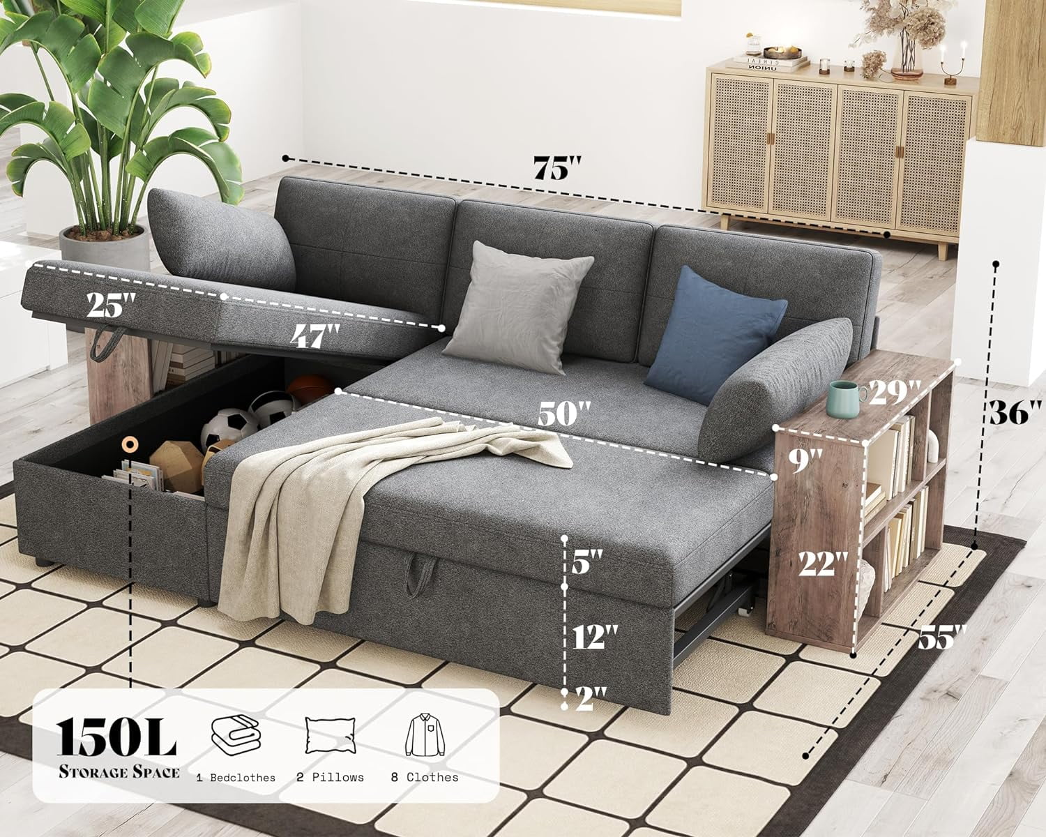 PaPaJet Sleeper Sofa with 2 Cabinet Armrest, L Shaped Couch with Storage Chaise-Grey Couch