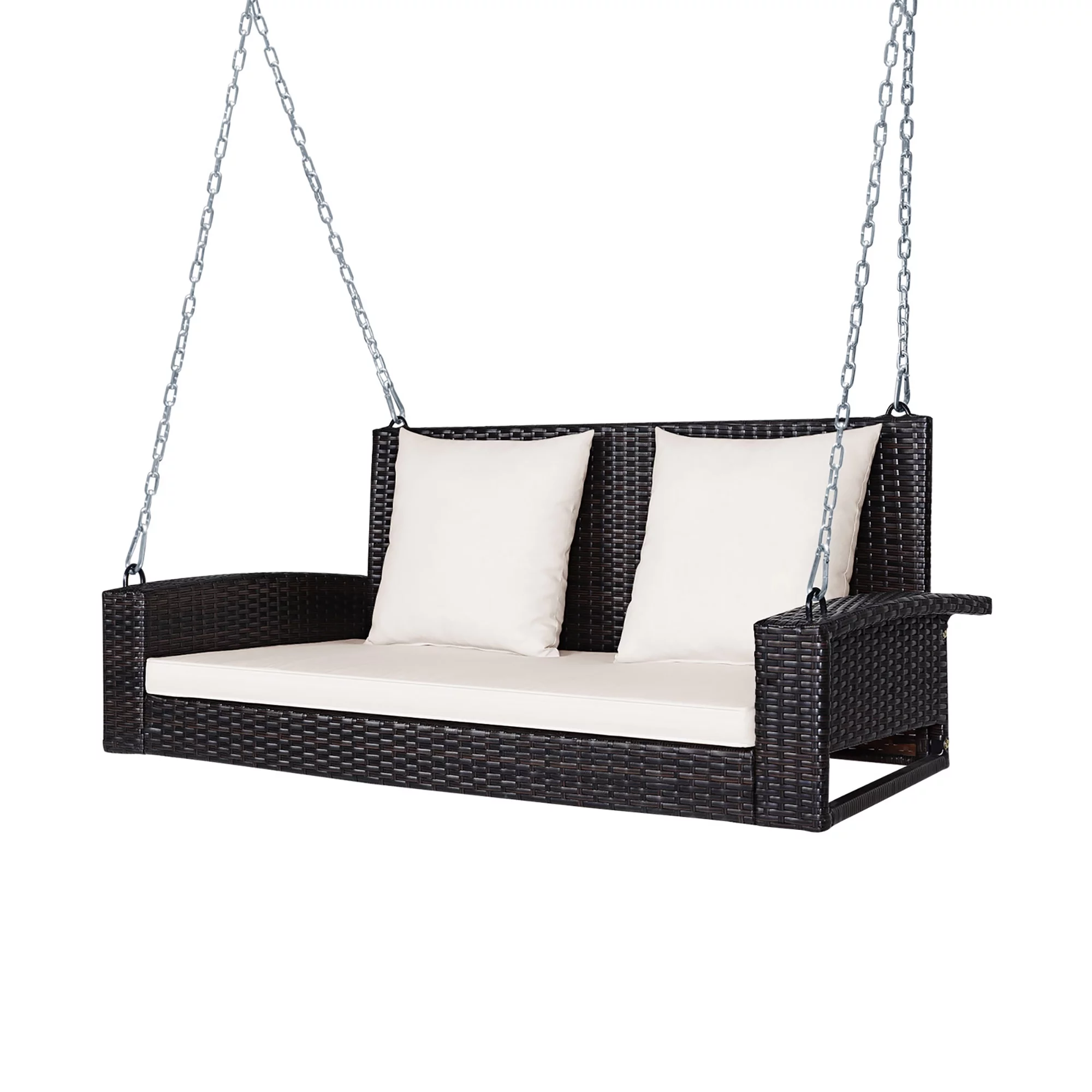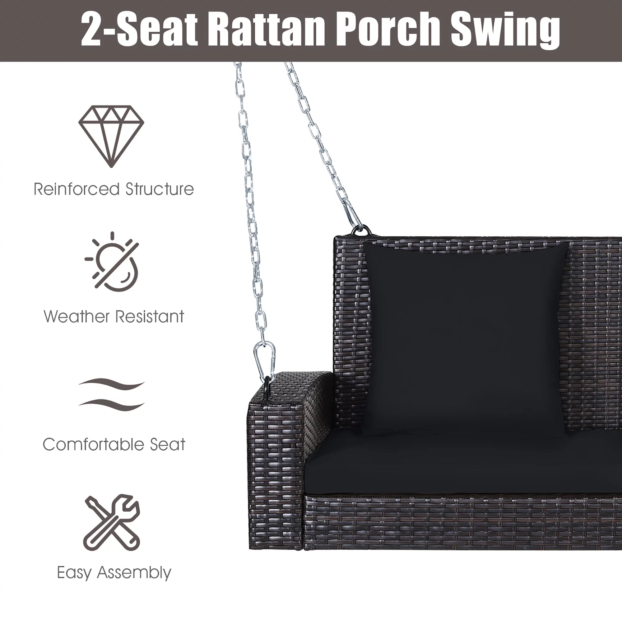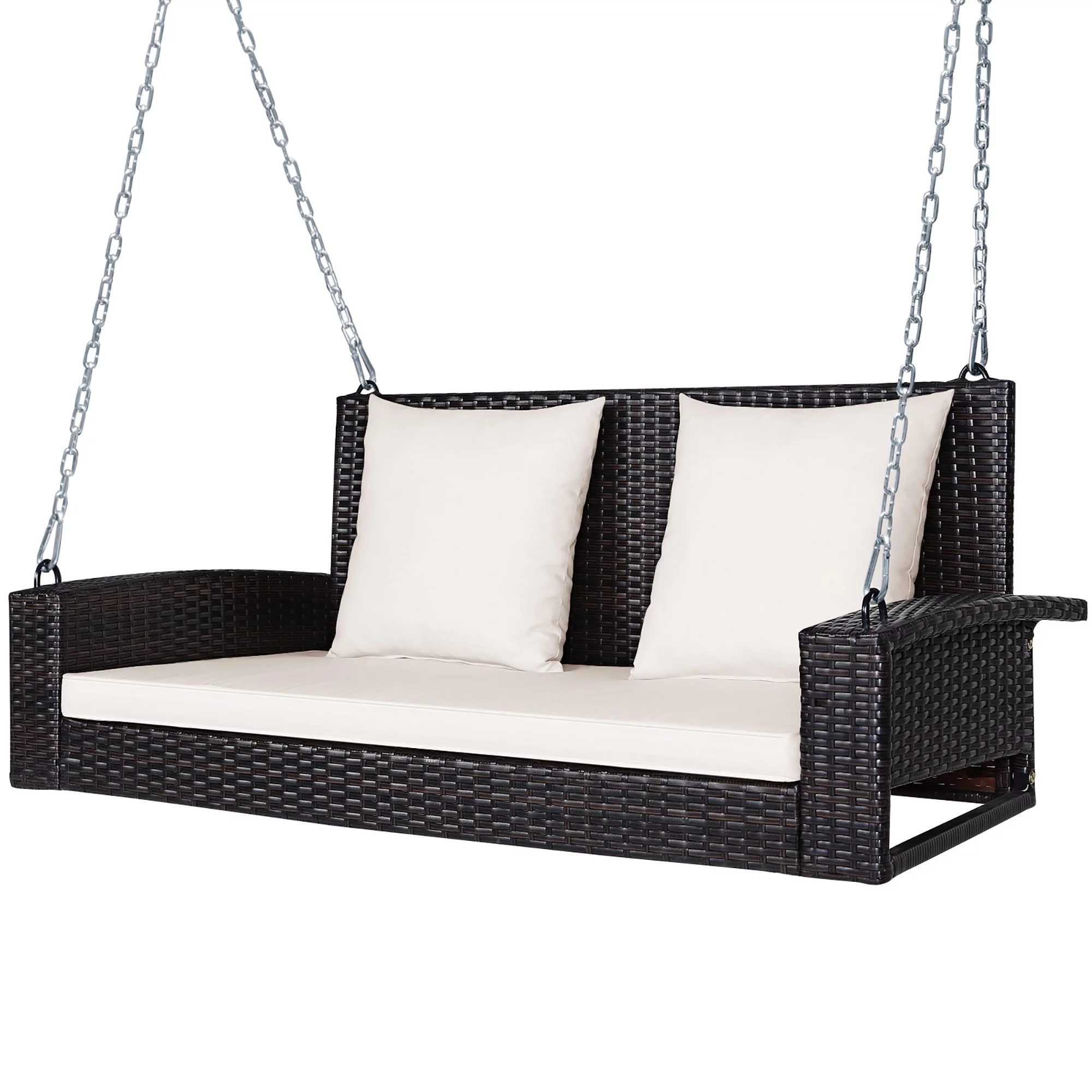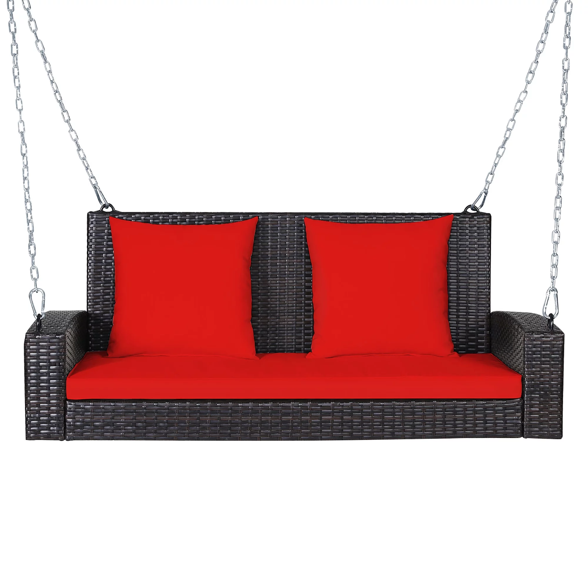 Costway 2-Person Patio Rattan Hanging Porch Swing Bench Chair Cushion Turquoise