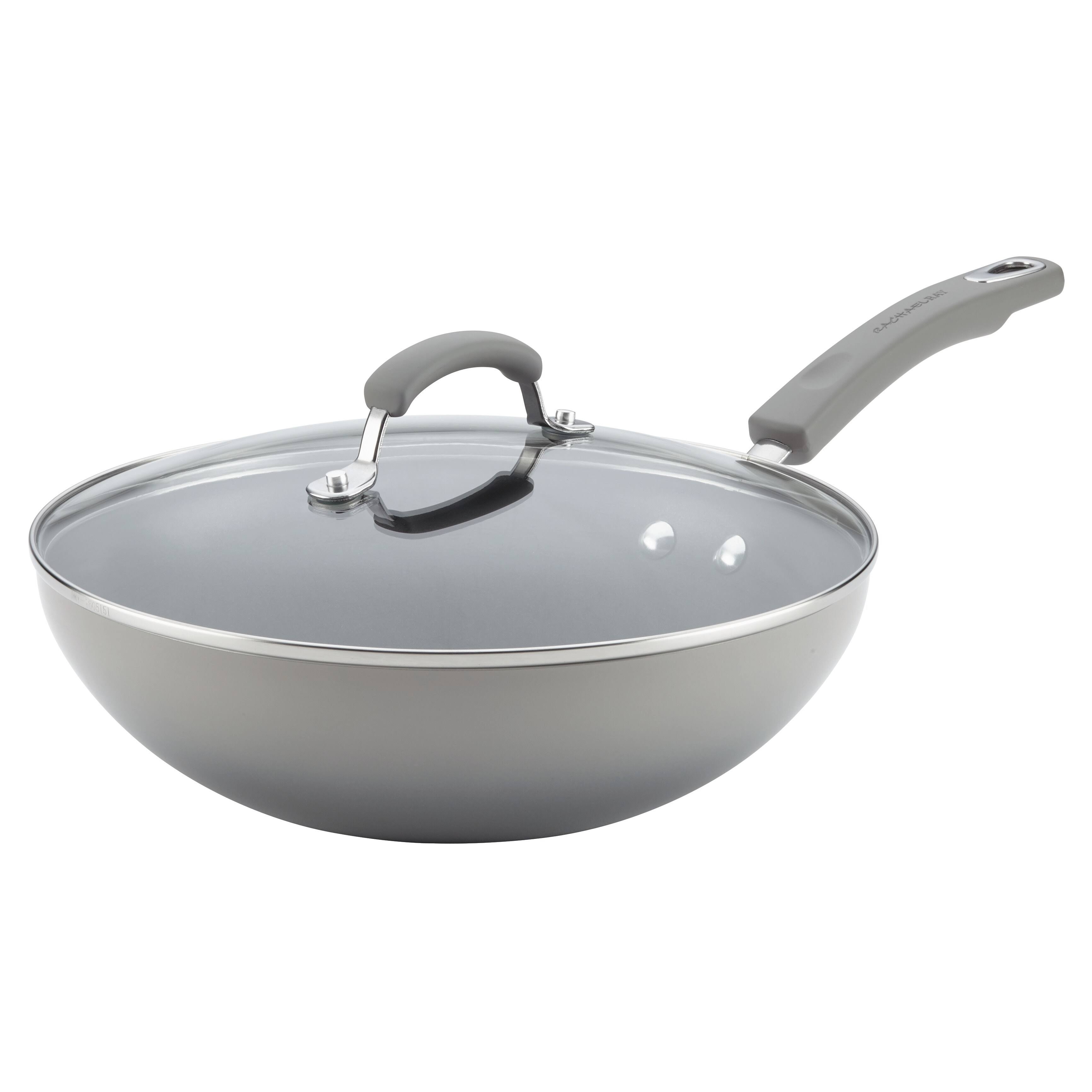 Rachael Ray Classic Brights Aluminum Nonstick Stir 11 inch Fry Pan with Glass Lid, Gray - Megean
