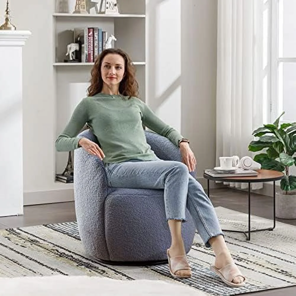 TJCGDTY Swivel Barrel Chair Teddy Sherpa Upholstered Modern Round Accent Arm Chairs Boucle Degree Swivel Small Single Sofa Armchair for Nursery Living Room Bedroom (Teddy Green) - Curated Treasures Market