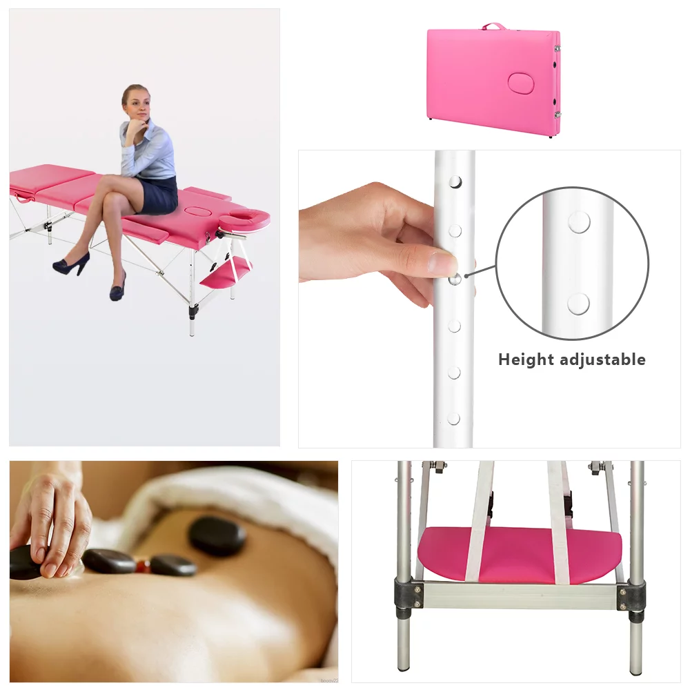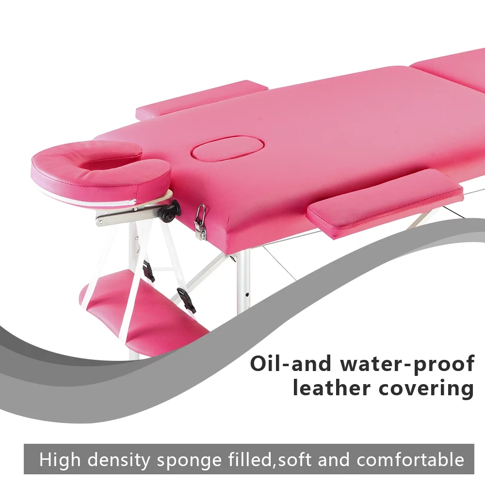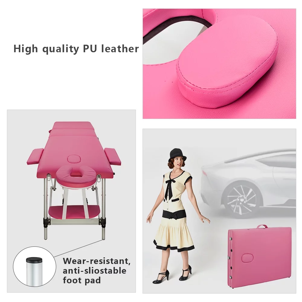 Pabby Yard 3 Sections Folding Portable Massage Table, Beauty Salon SPA Chair Tattoo Chair, Pink Tattoo Table Massage Bed Aluminum Foot Fitted for Facials, Massages, Tattoo Sessions and Body Piercings - Curated Treasures Market