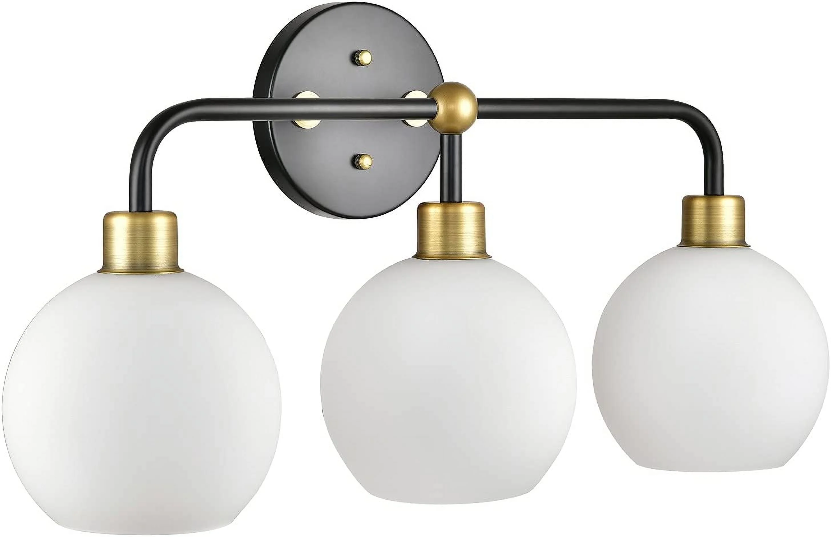 HYUN Modern Bathroom Vanity Lights Fixtures 3-Lights Over Mirror Lighting Matte Black and Gold Vanity Lights for Bathroom Light Fixtures Frosted Glass Covers, UL Listed - Curated Treasures Market