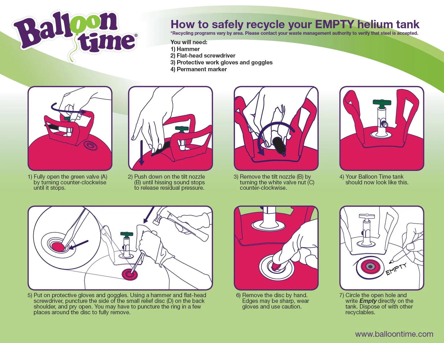 Balloon Time 9.5in Standard Helium Tank Kit (Includes 30 Assorted Latex Balloons and White Ribbon)