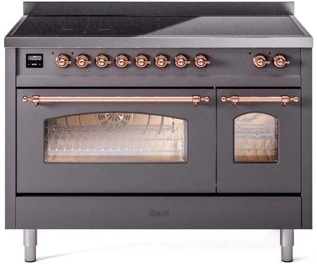 ILVE Nostalgie II 48 Induction Range with Element Stove and Electric Oven in Matte Graphite with Copper Trim, UPI486NMPMGP