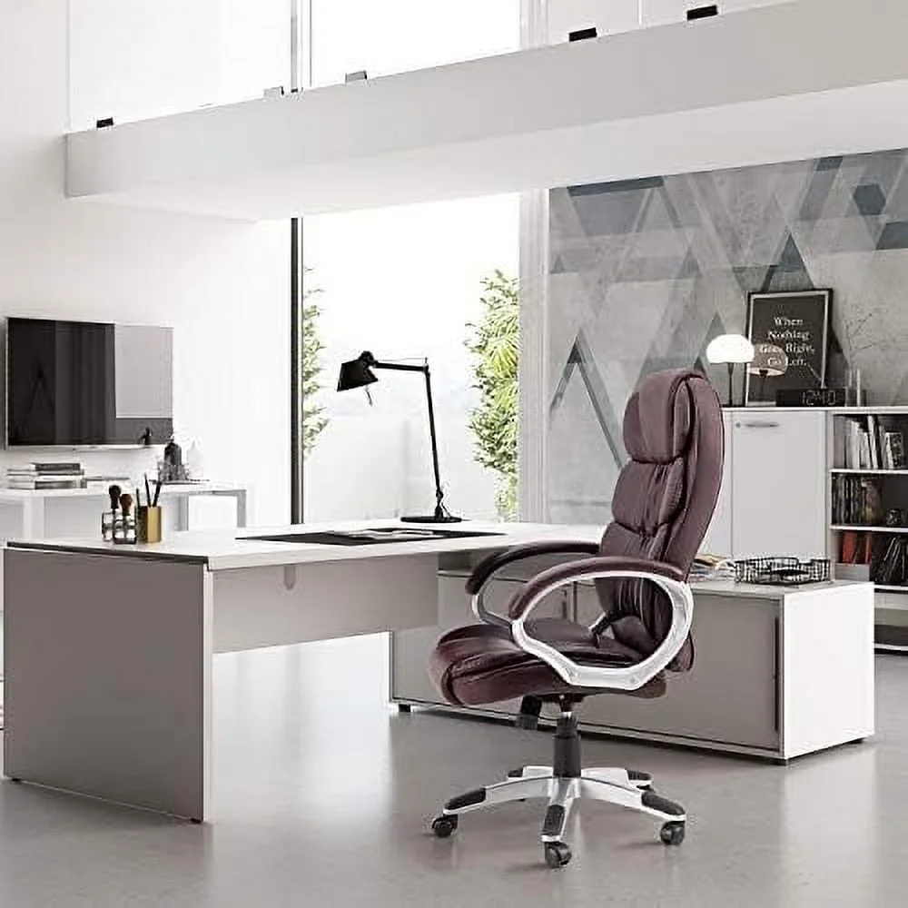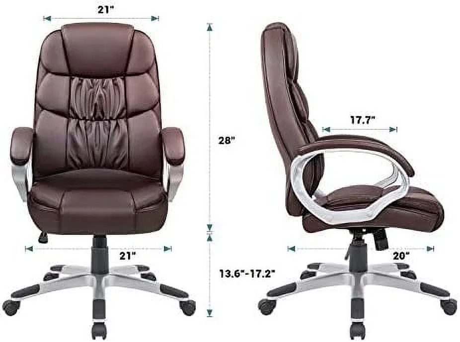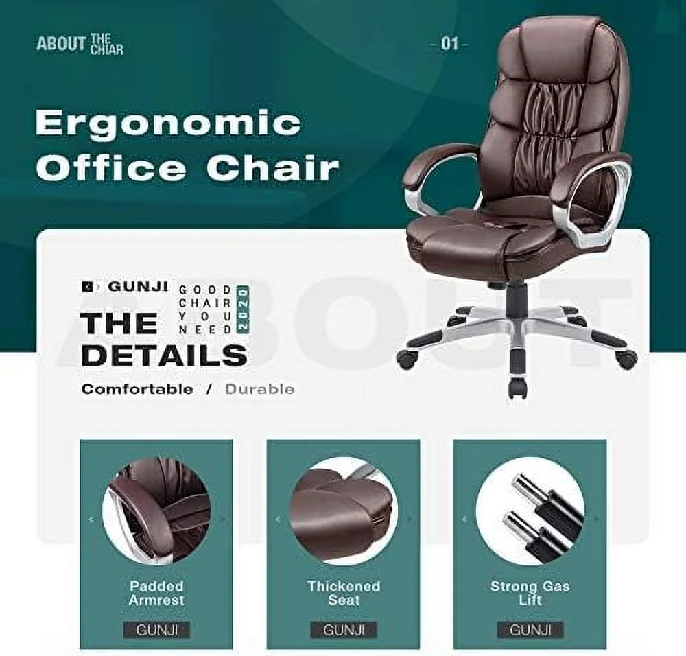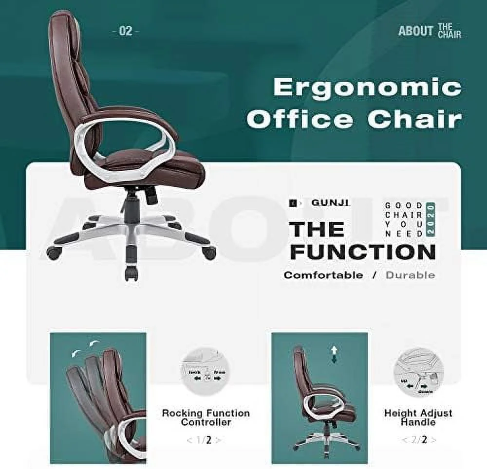 JYHOME Office Chair PU Leather High Back Executive Chair Ergonomic Computer Chair Modern Adjustable Home Desk Chair Swivel Managerial Chair with Padded Armrests and Lumbar Support (Gray) - Curated Treasures Market