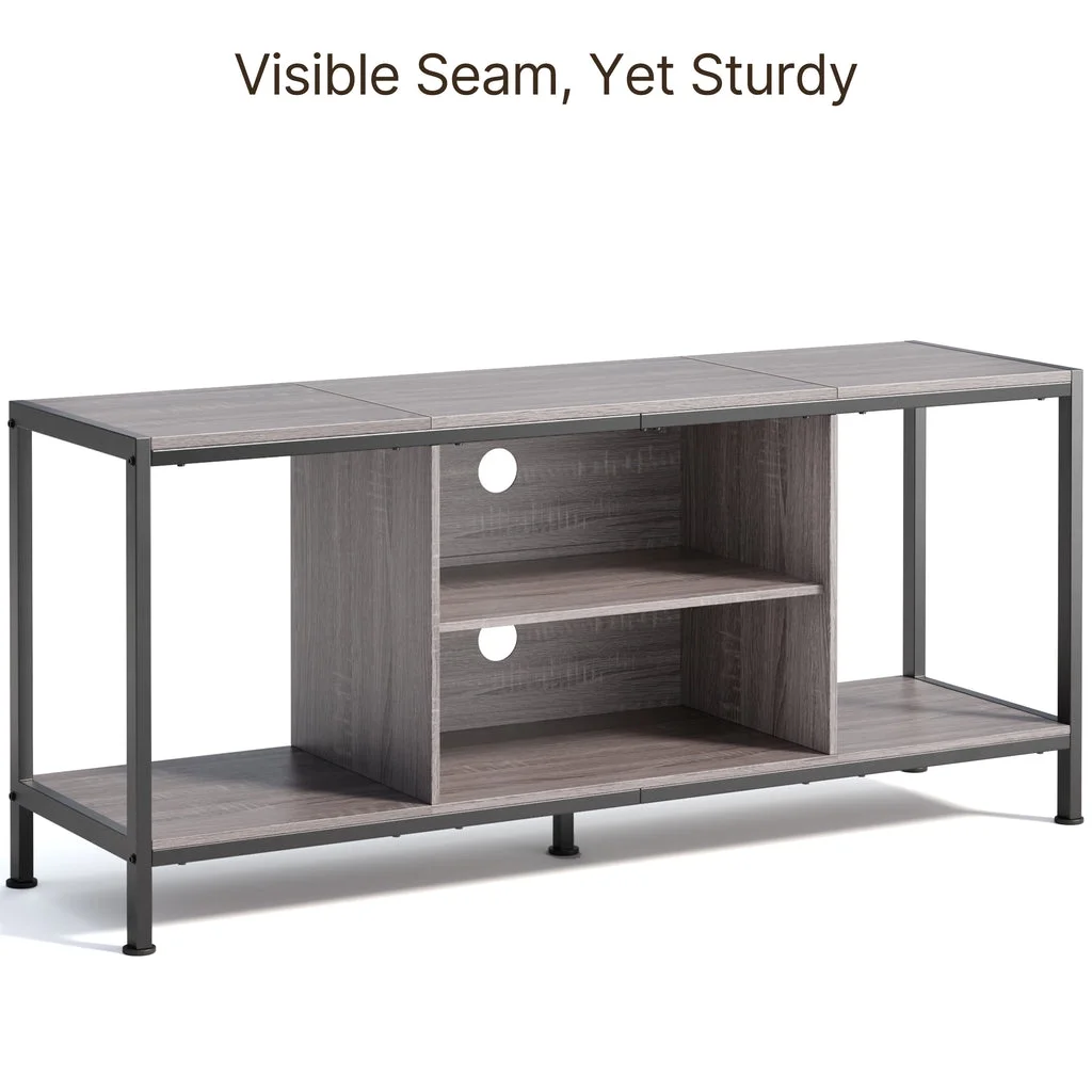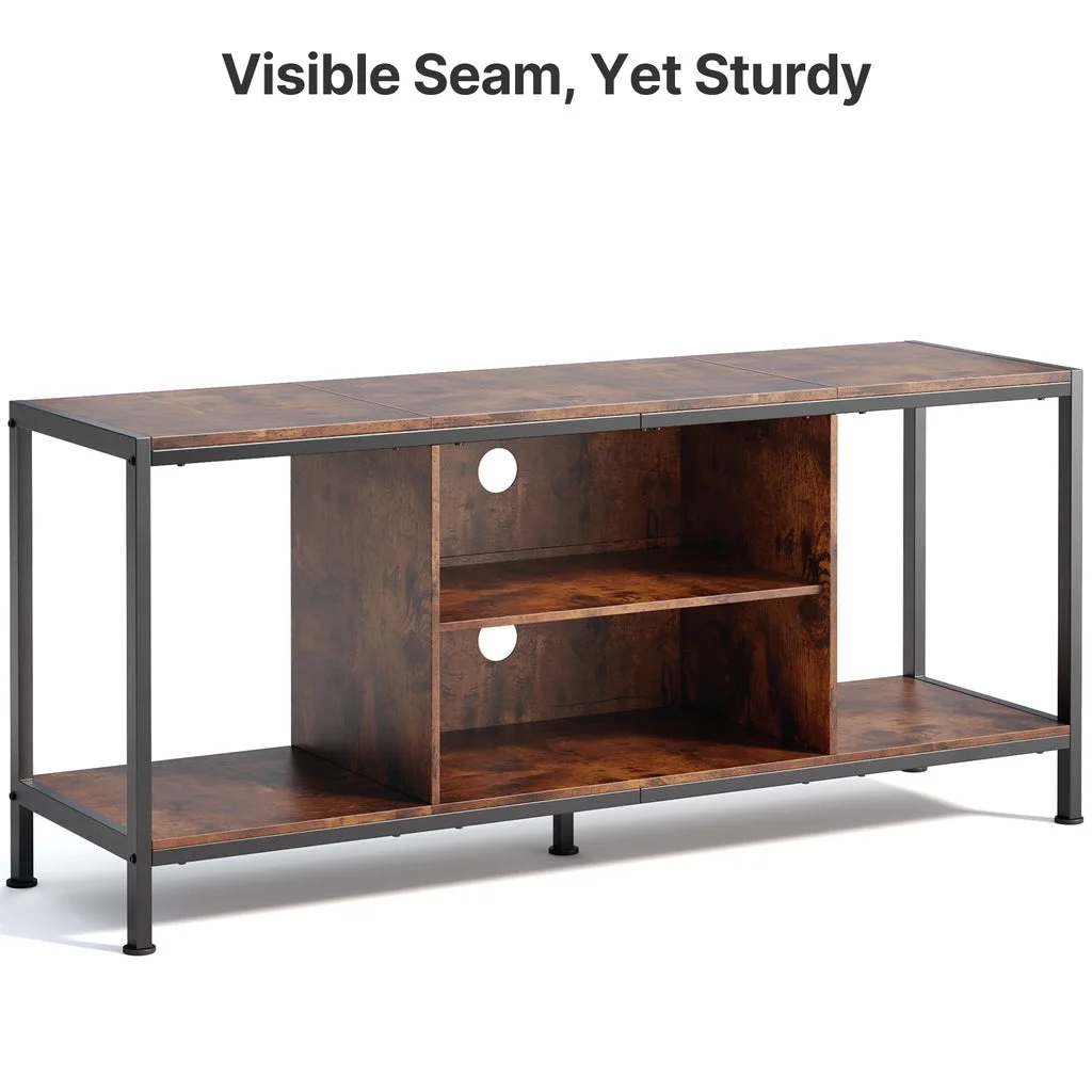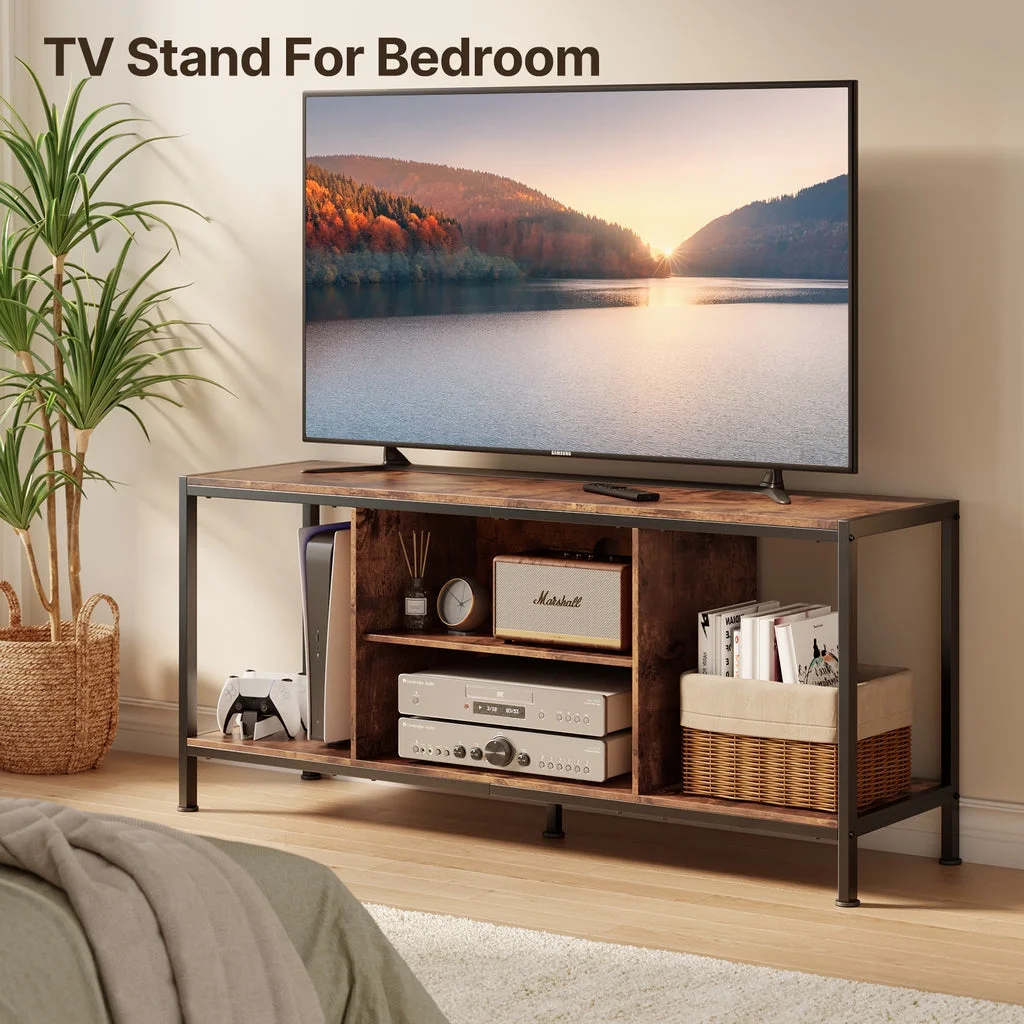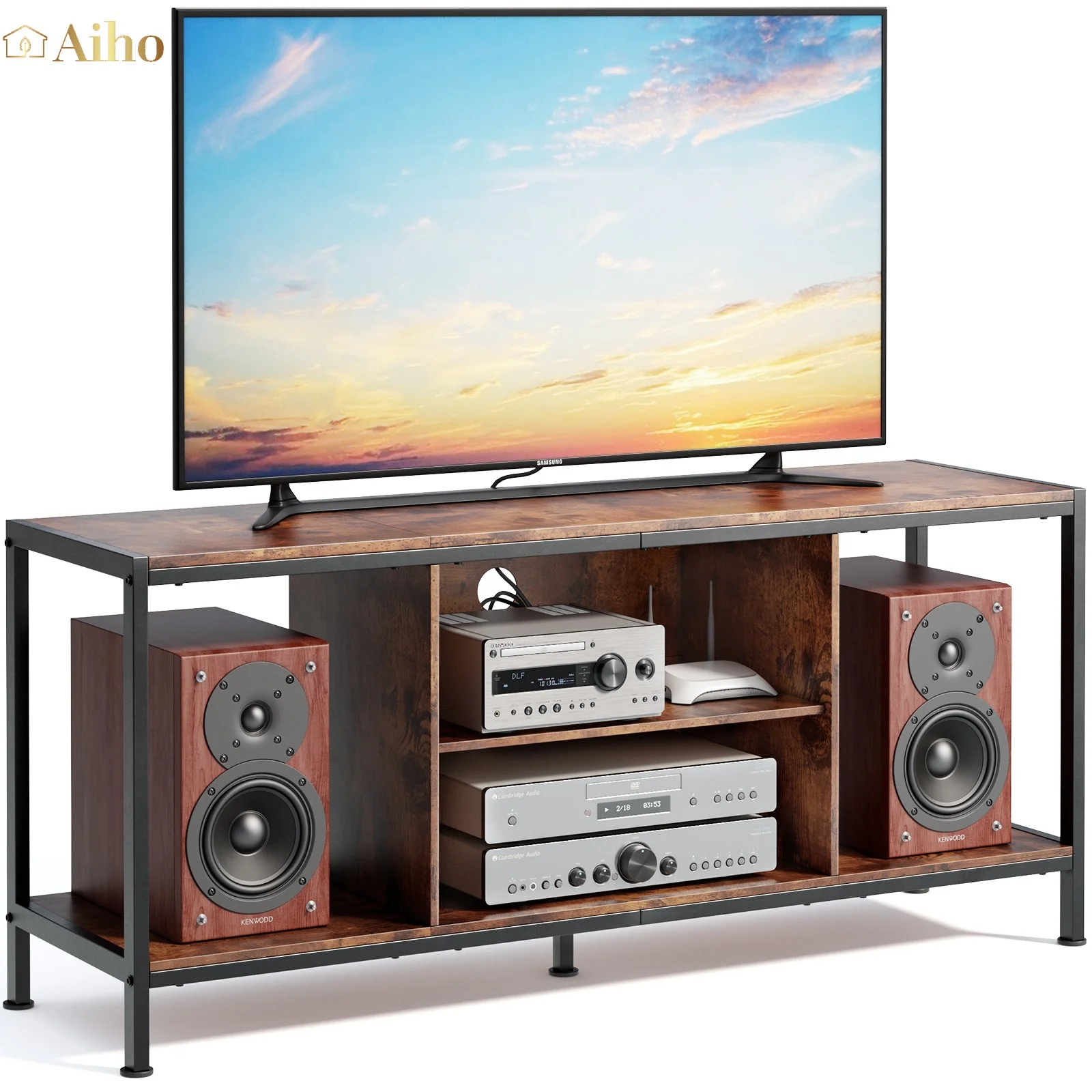 Aiho Mid-Century Wooden TV Stand for TVs up to 65 with Open Storage Shelves and Metal Frame - Retro