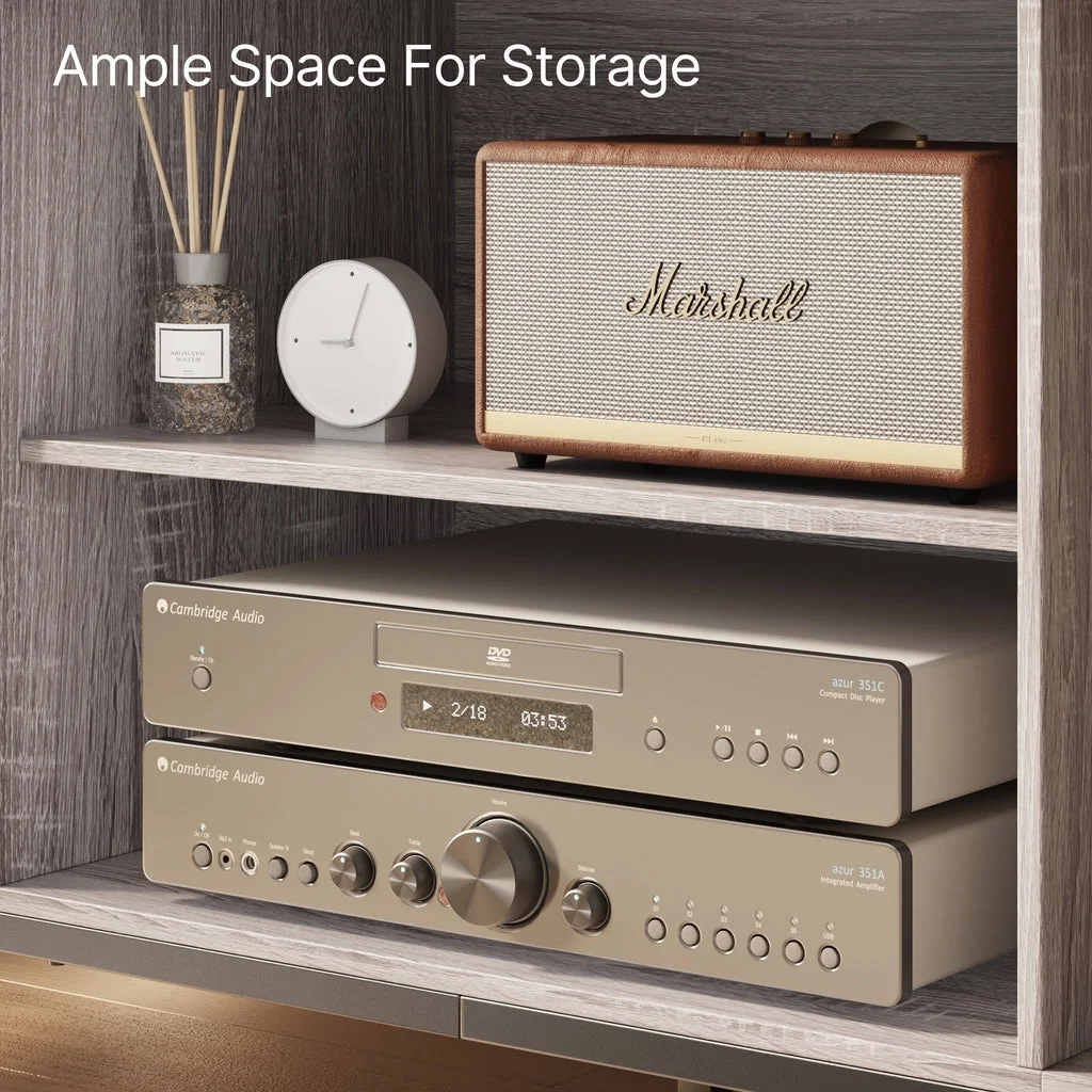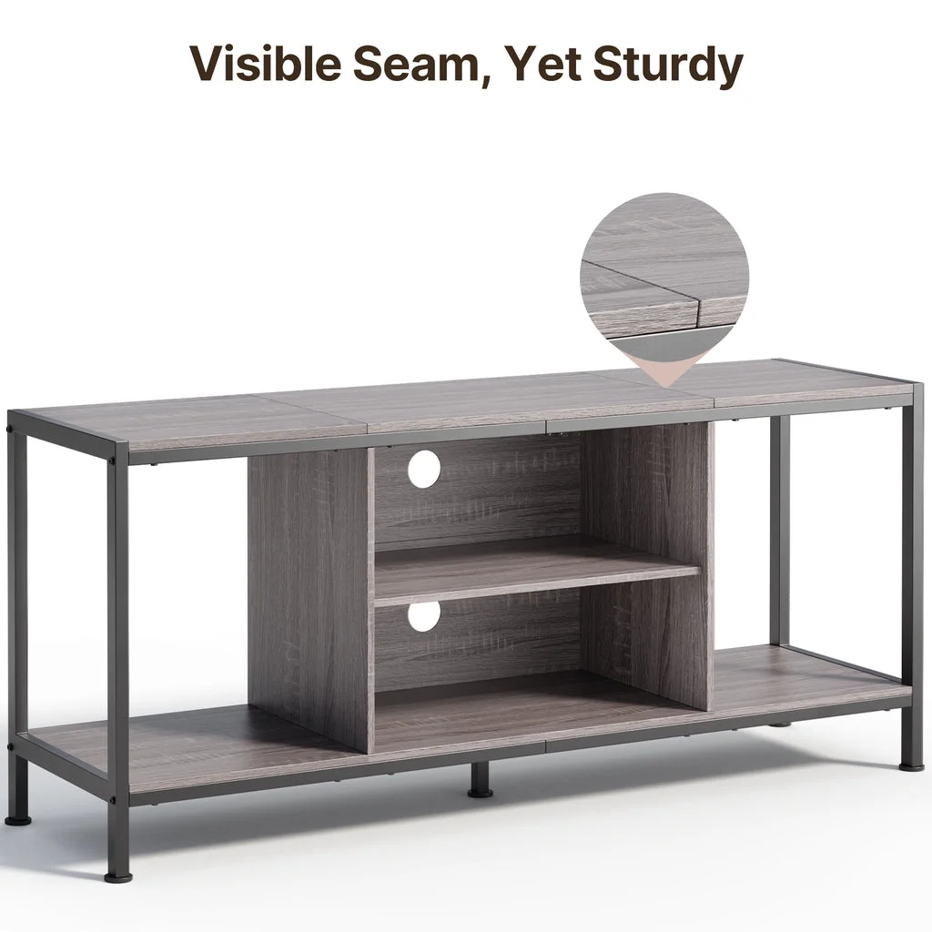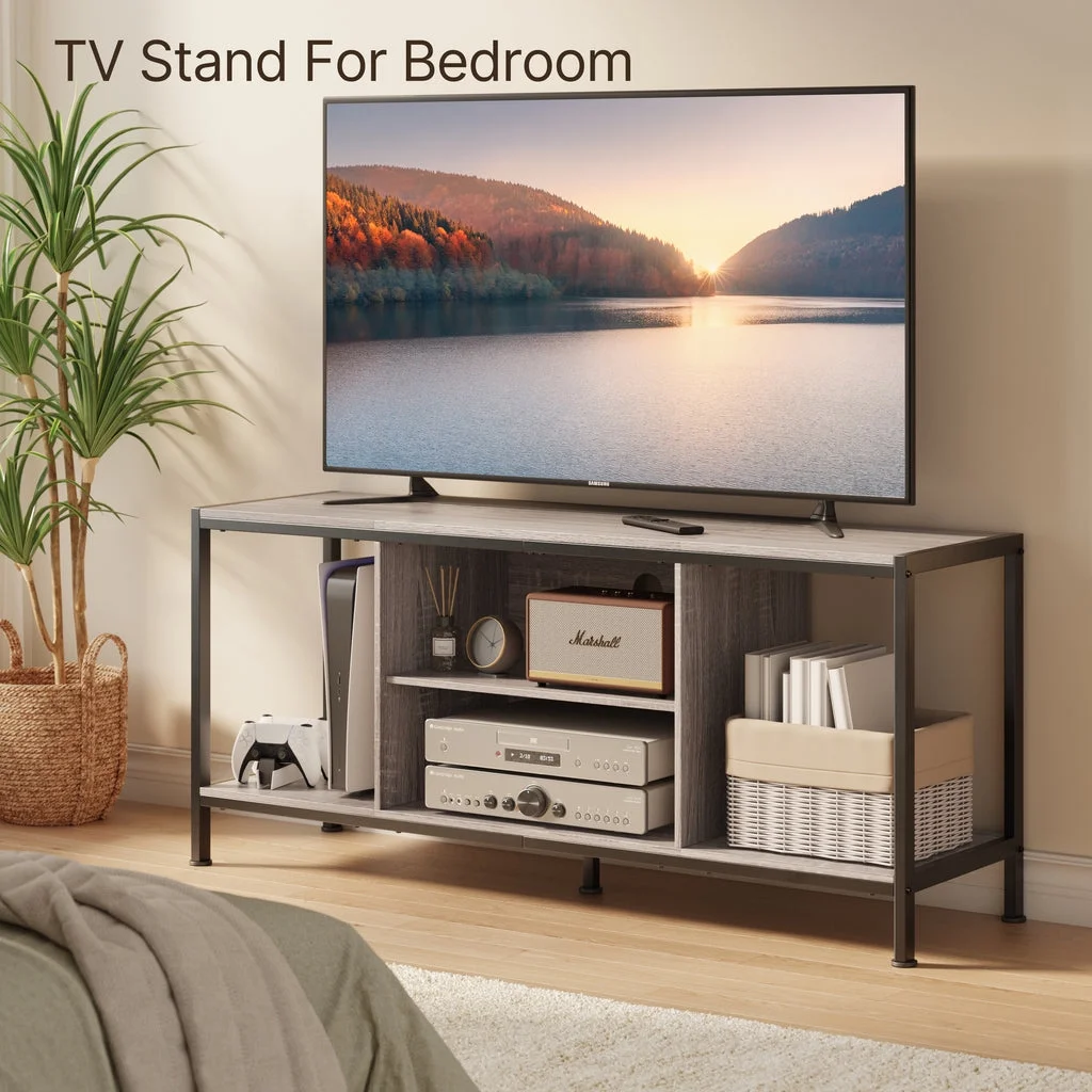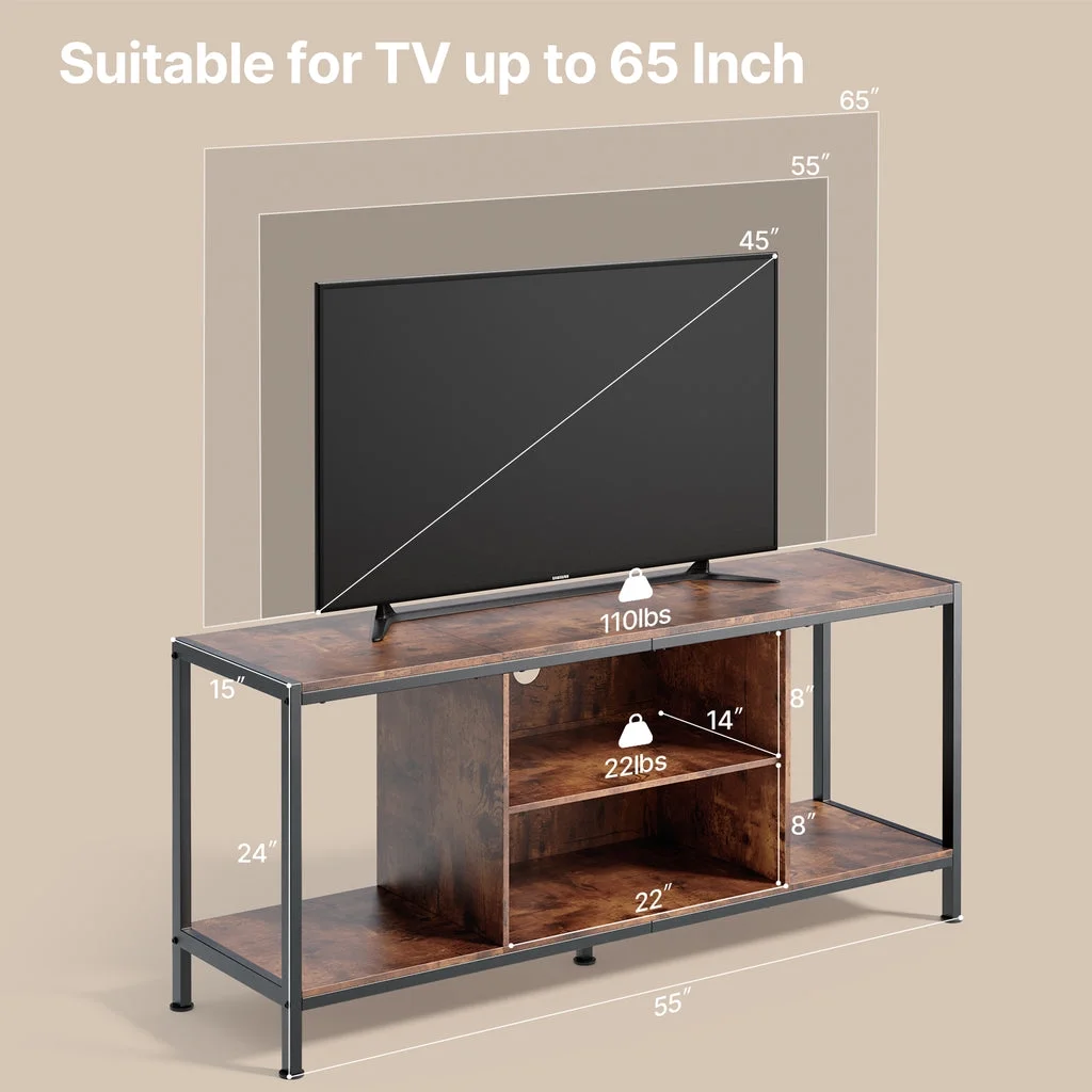 Aiho Mid-Century Wooden TV Stand for TVs up to 65 with Open Storage Shelves and Metal Frame - Retro