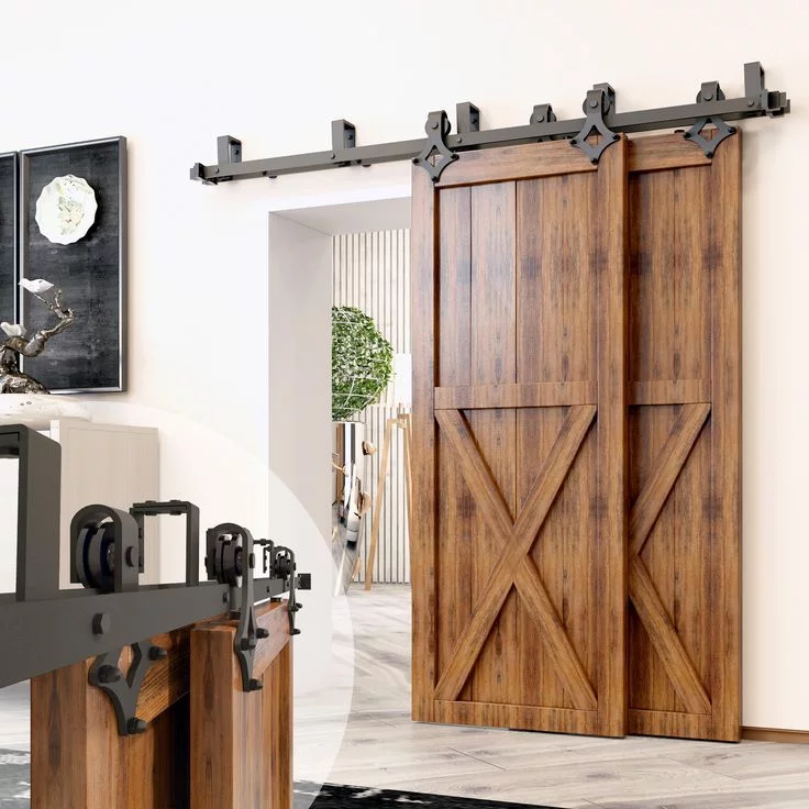 Homacer Black Rustic Double Track U-Shape Bypass Sliding Barn Door Hardware Kit, for Two/Double Doors, 8ft Long Flat Track, Diamond Design Roller, Heavy Duty, for Interior & Exterior Use - Curated Treasures Market