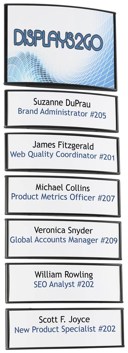Displays2go Wcsbk85s6 Office Wall Directory Signs, 7 Panels, Adhesive Install with Snap Out Lens, Black - Megean