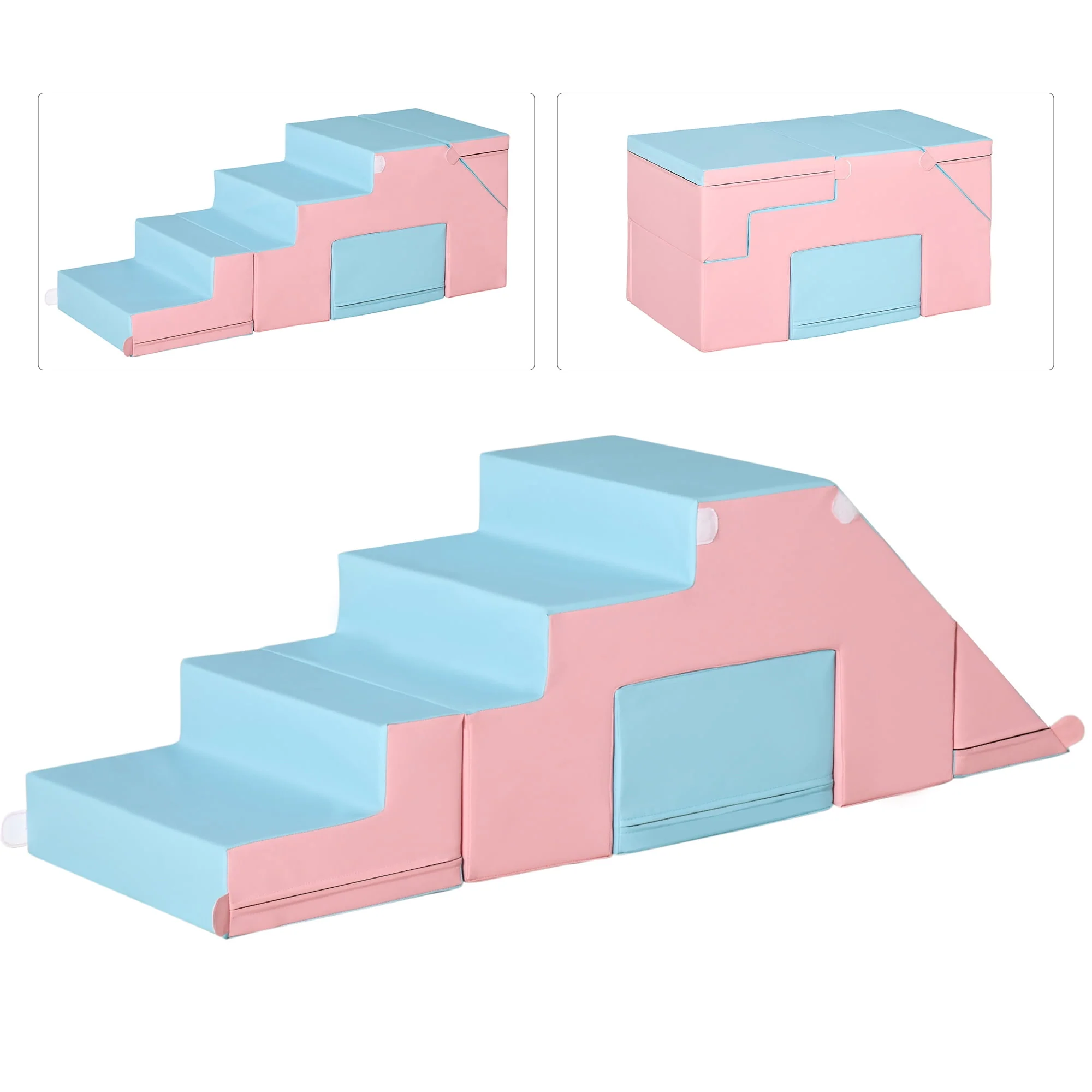 Qaba Foam Play Set for Toddlers and Children, Easy-to-clean 2 Piece Soft & Safe Kids Climbing Set for Crawling or Sliding, Multicolor