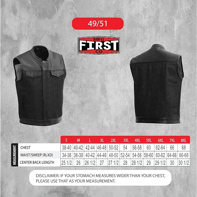 First Mfg Co - 49/51 - Men's Motorcycle Biker Riding Black Denim, Leather Vest - 2X Large - Curated Treasures Market