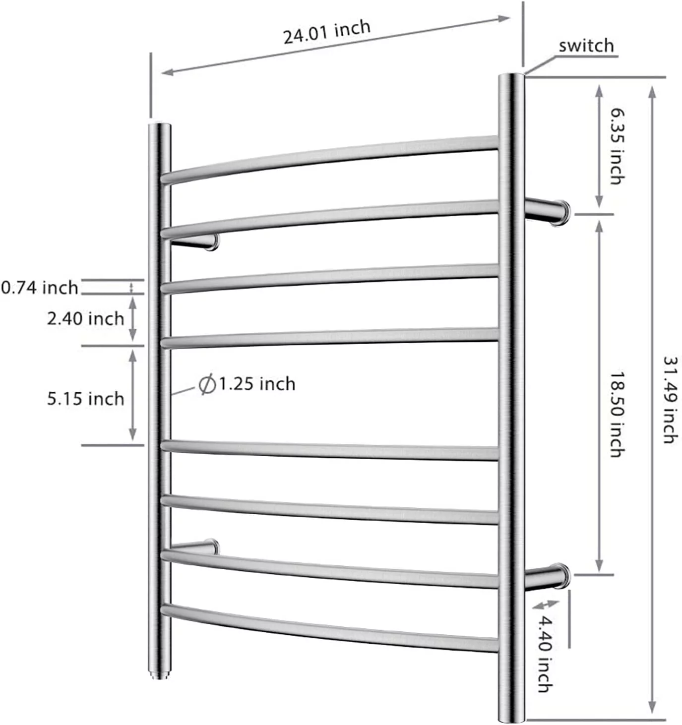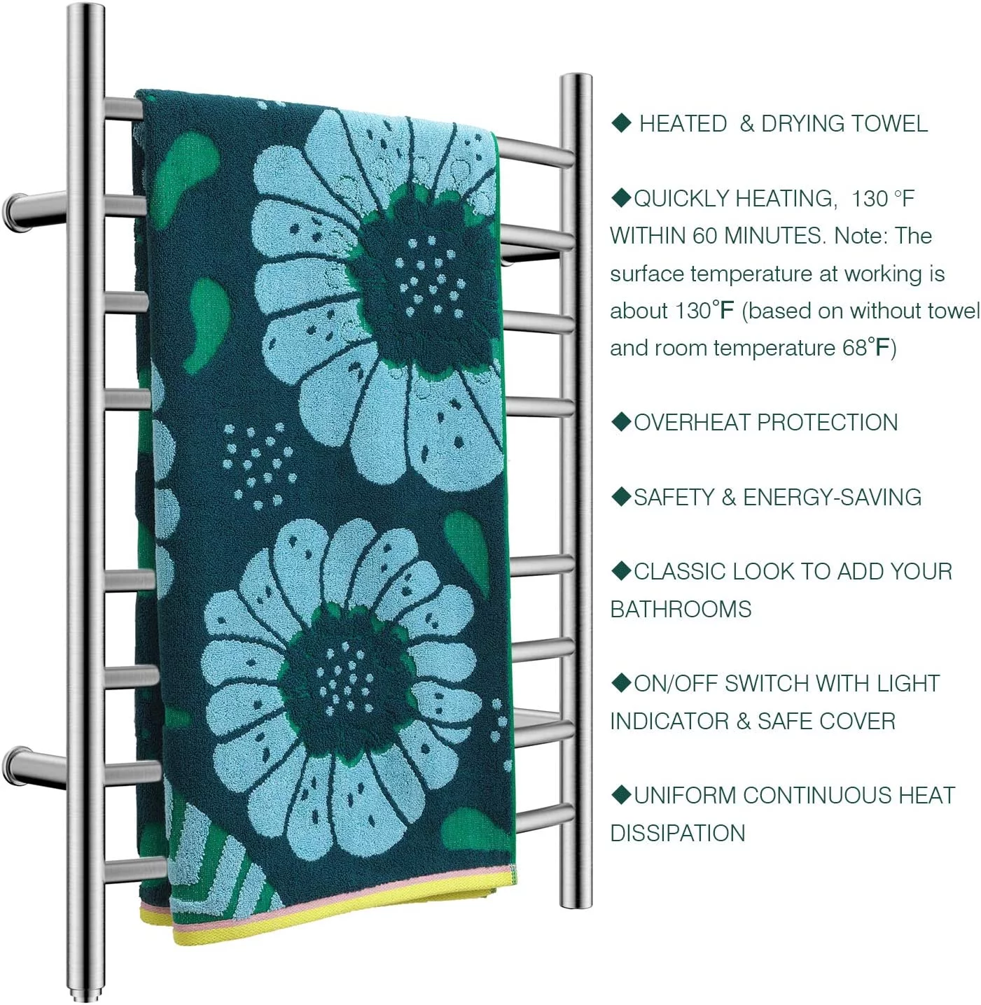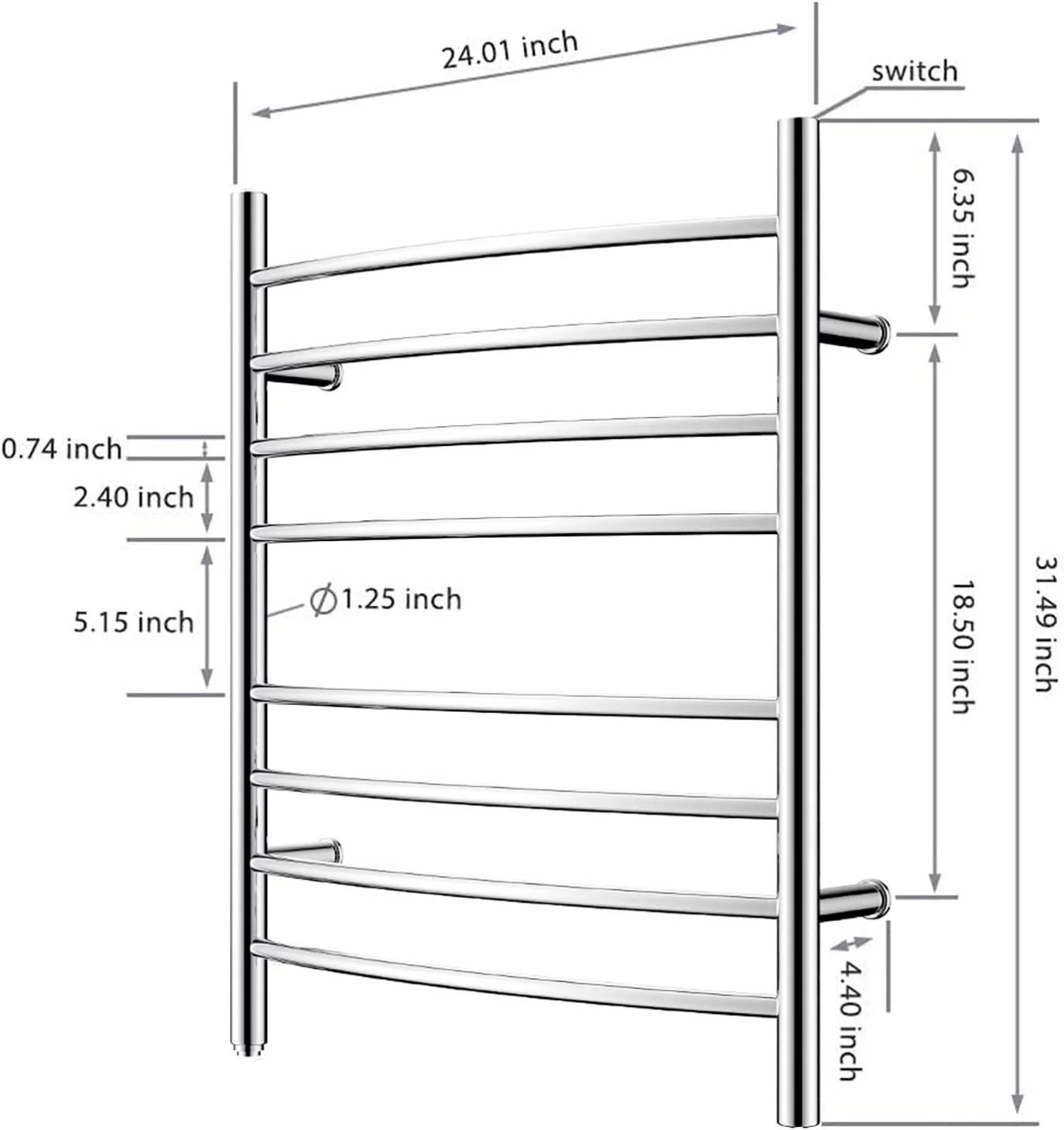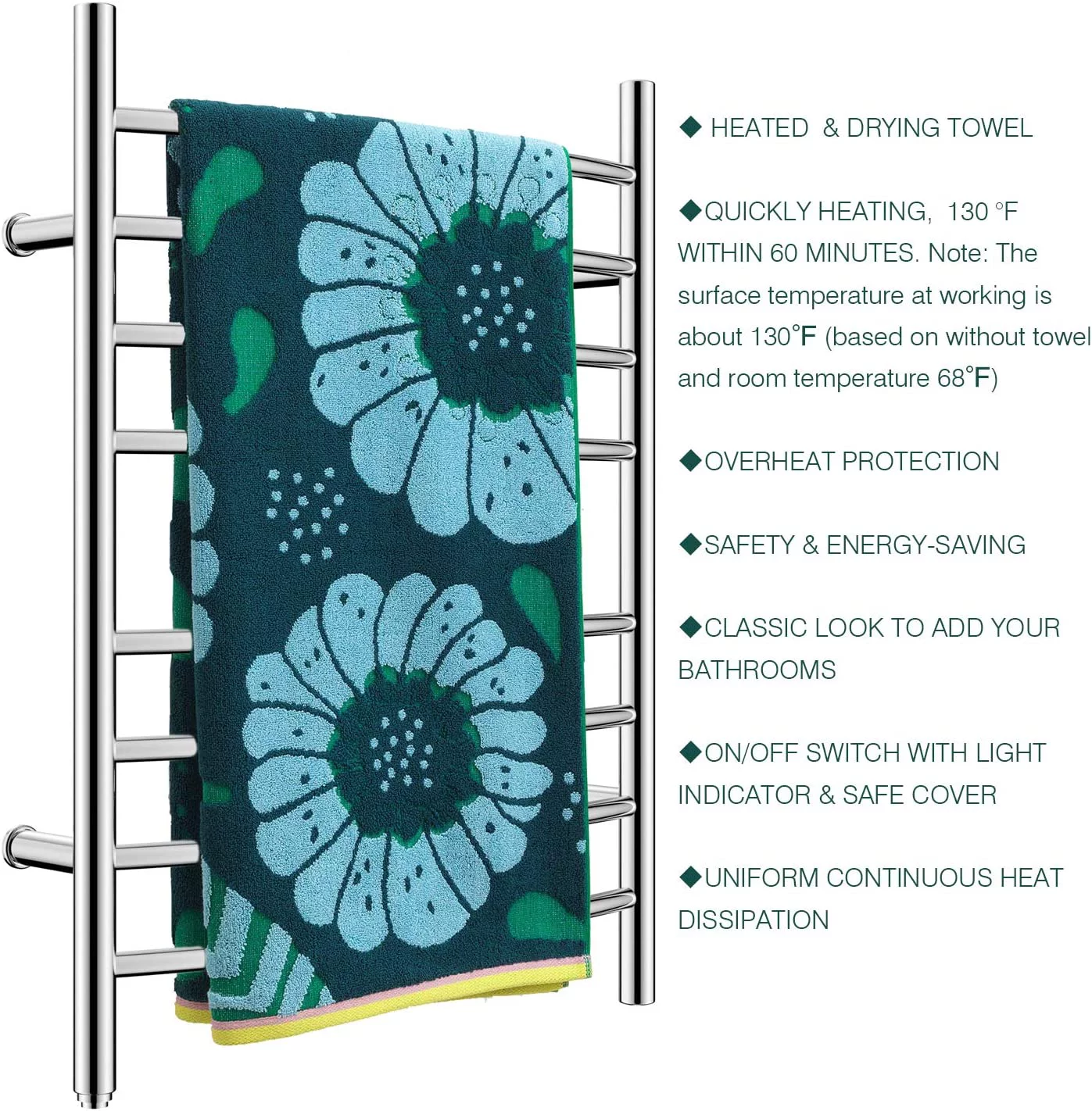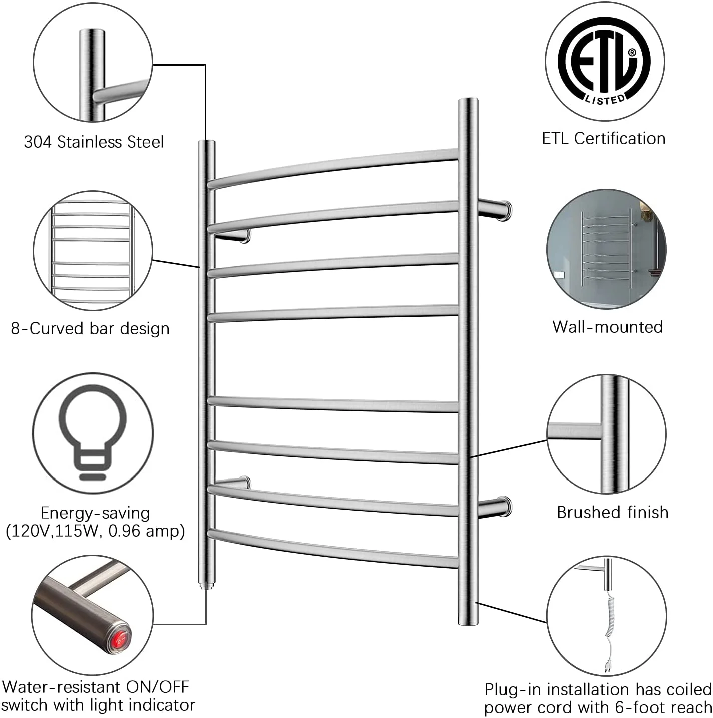 AUCHI Towel Warmer 8 Bar Plug-in Curved Bath Towel Heater Towel Warmer for Bathroom Plug-in Drying Rack Mirror Polish - Curated Treasures Market