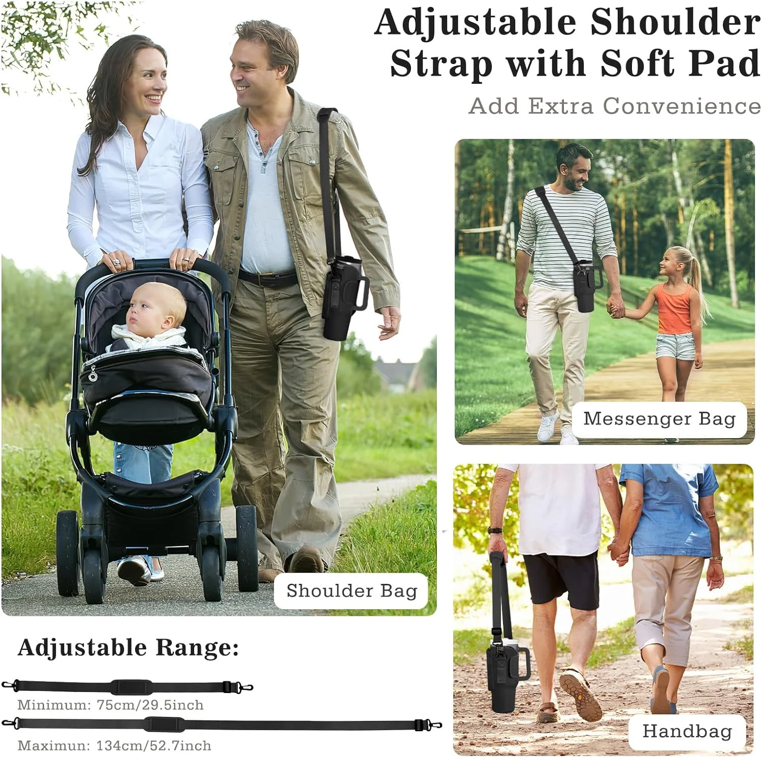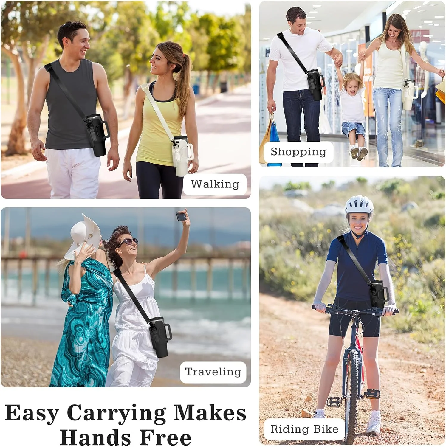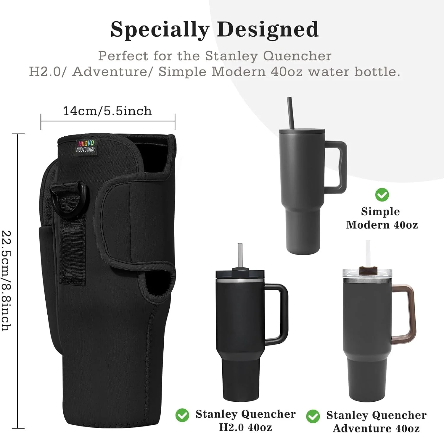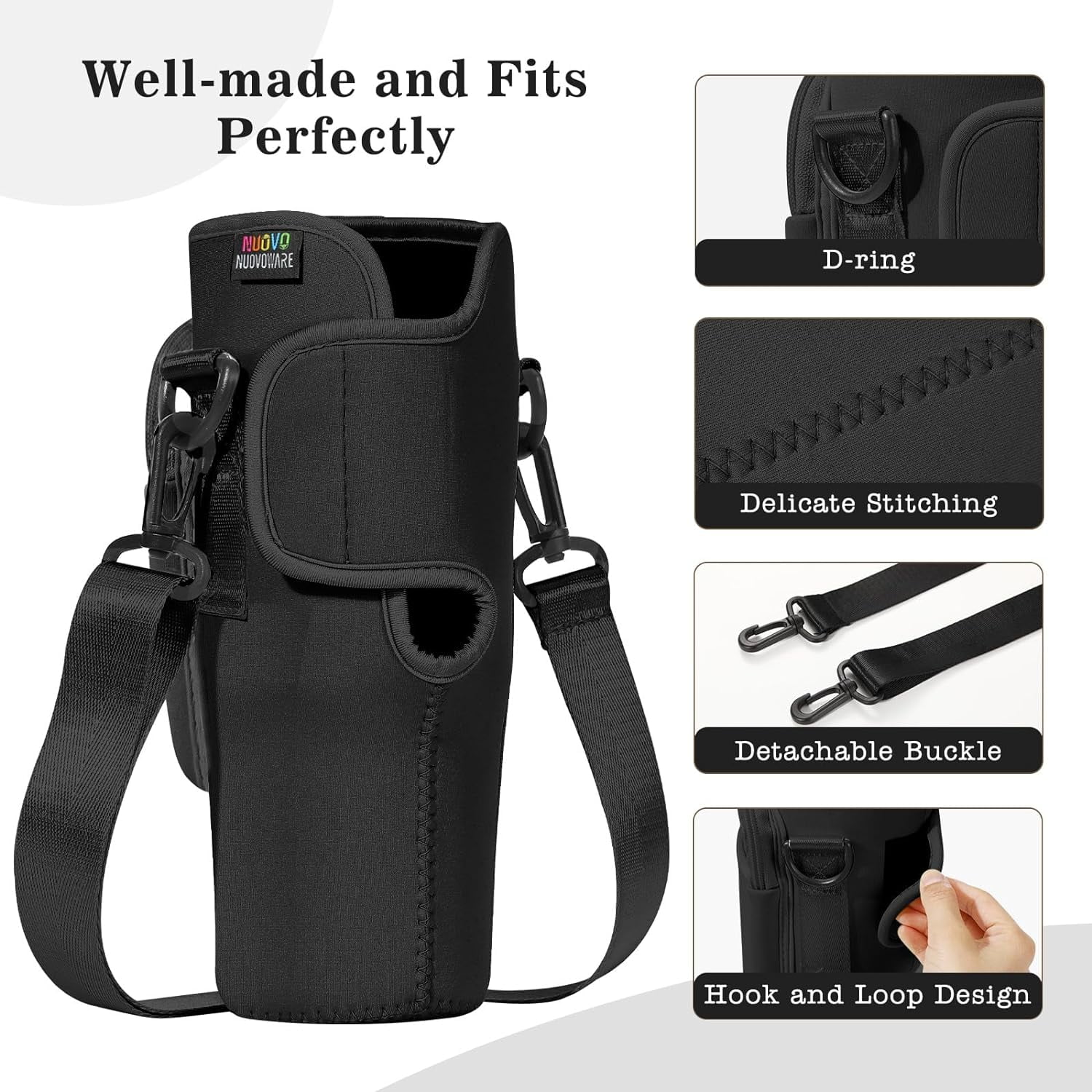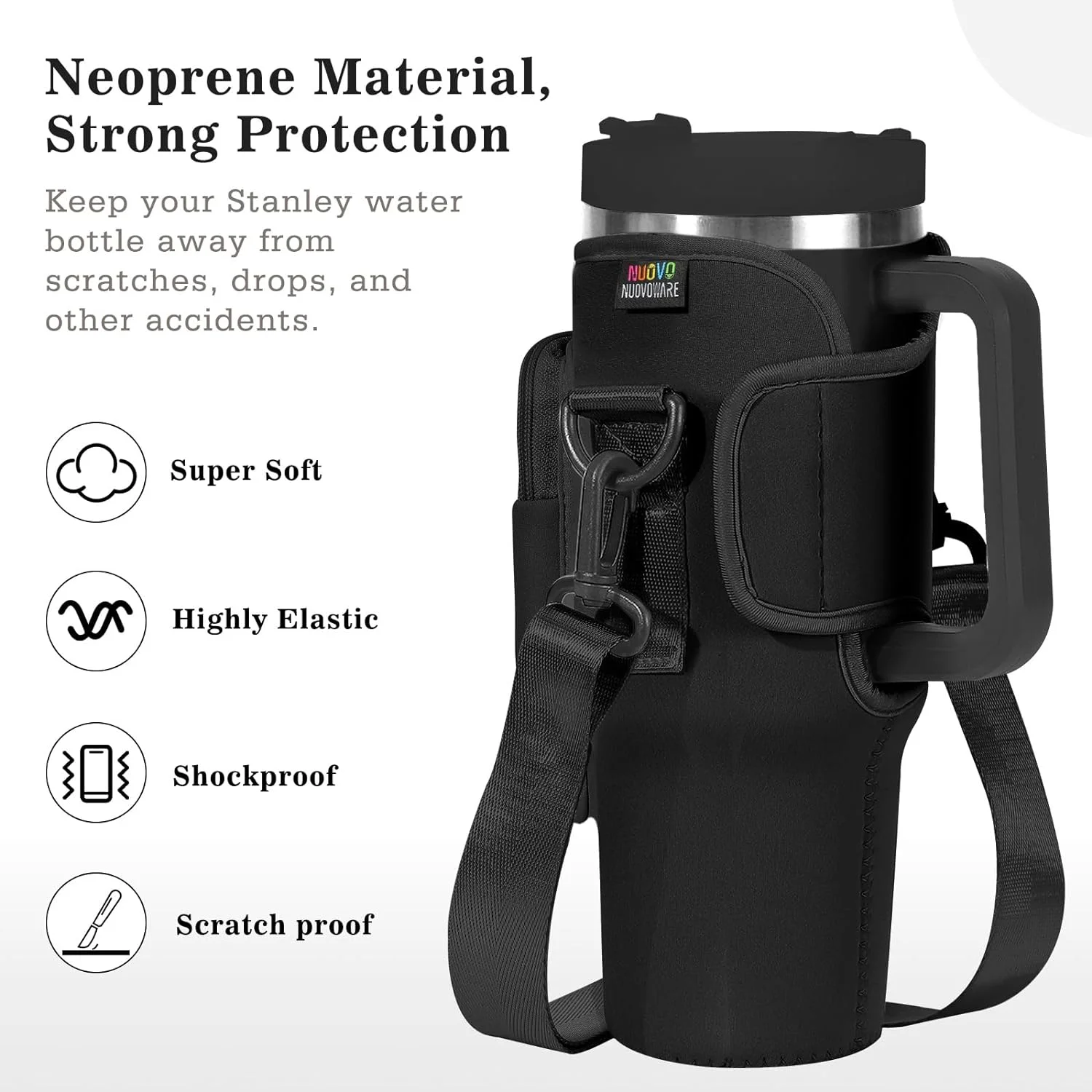 Nuovoware Water Bottle Carrier Bag Fit Stanley Quencher H2.0/Simple Modern, 40OZ Bottle Pouch Holder with Pocket Adjustable Shoulder Strap, Neoprene Water Bottle Holder for Hiking Camping, Black - Curated Treasures Market
