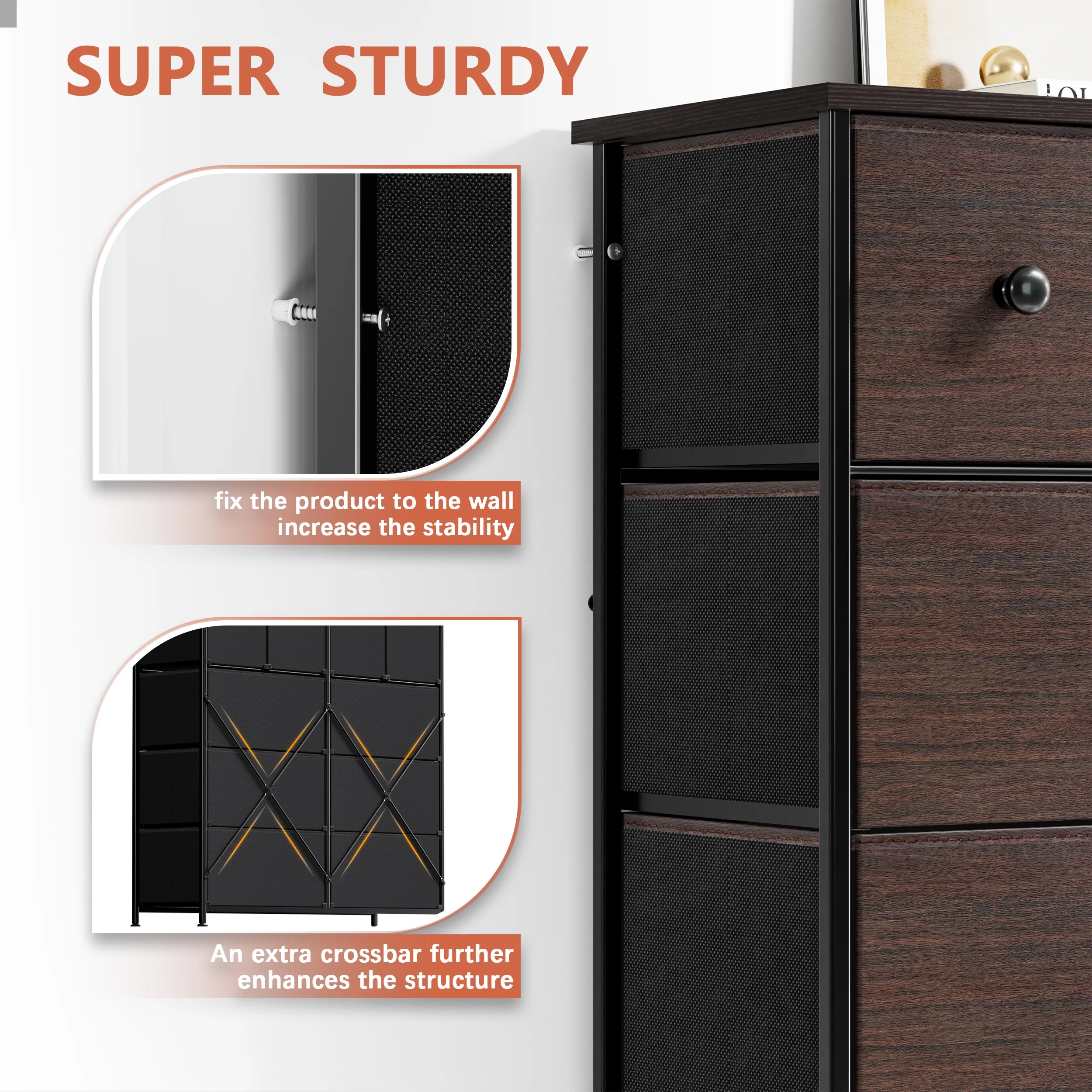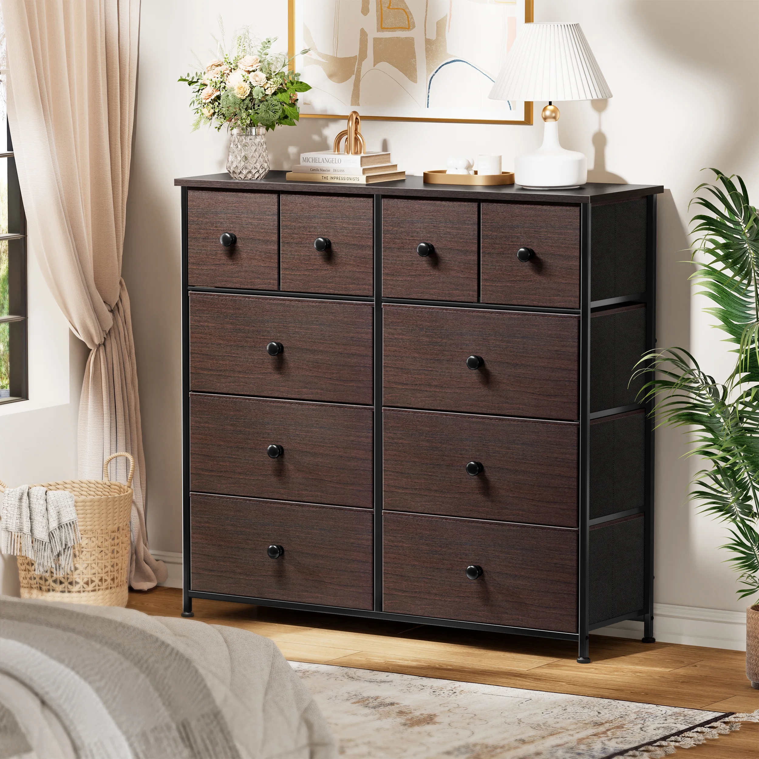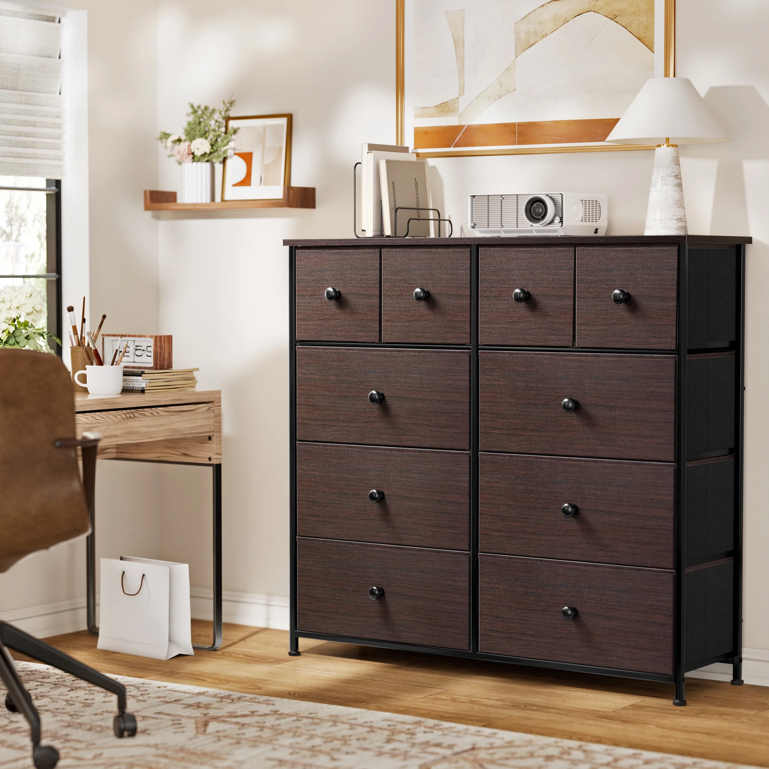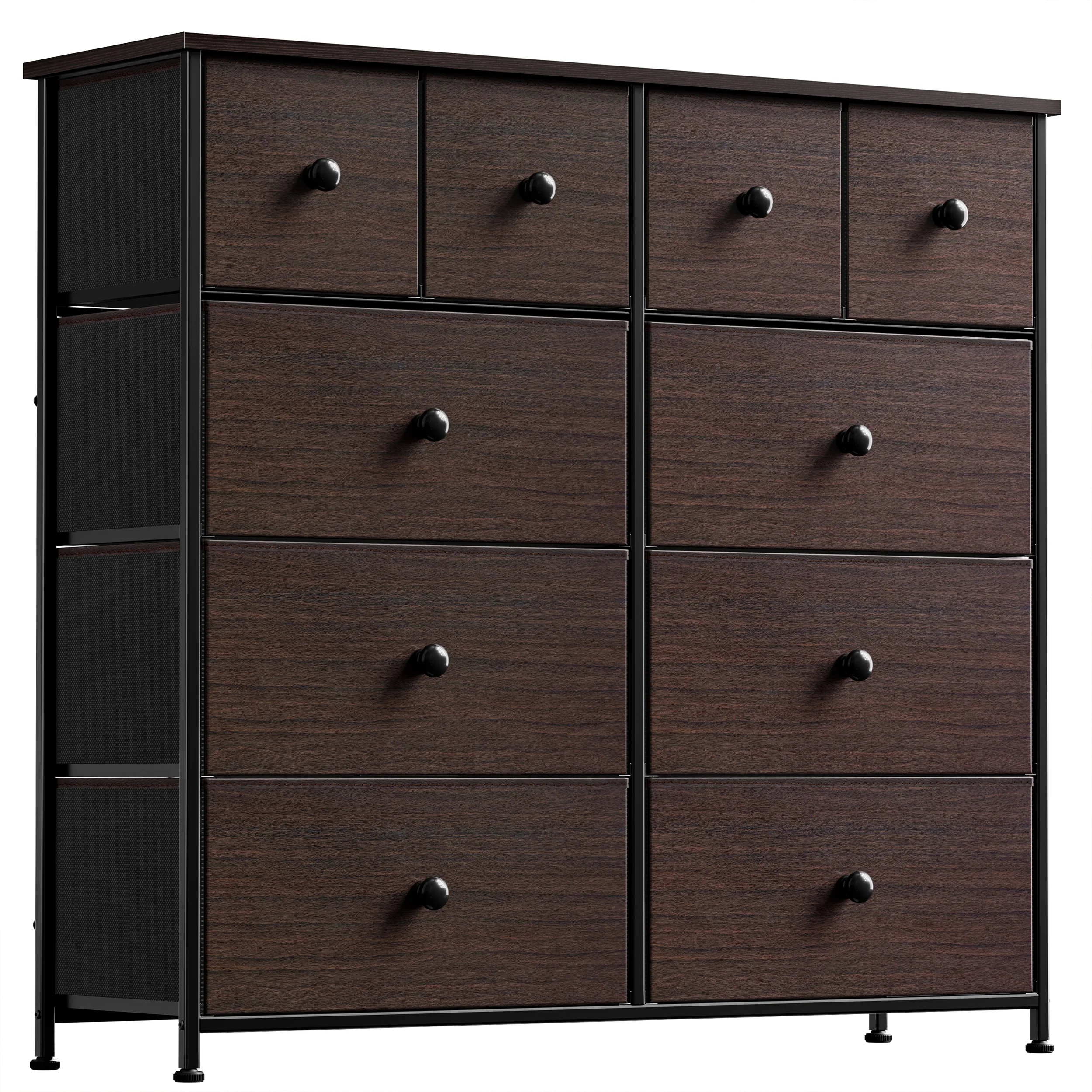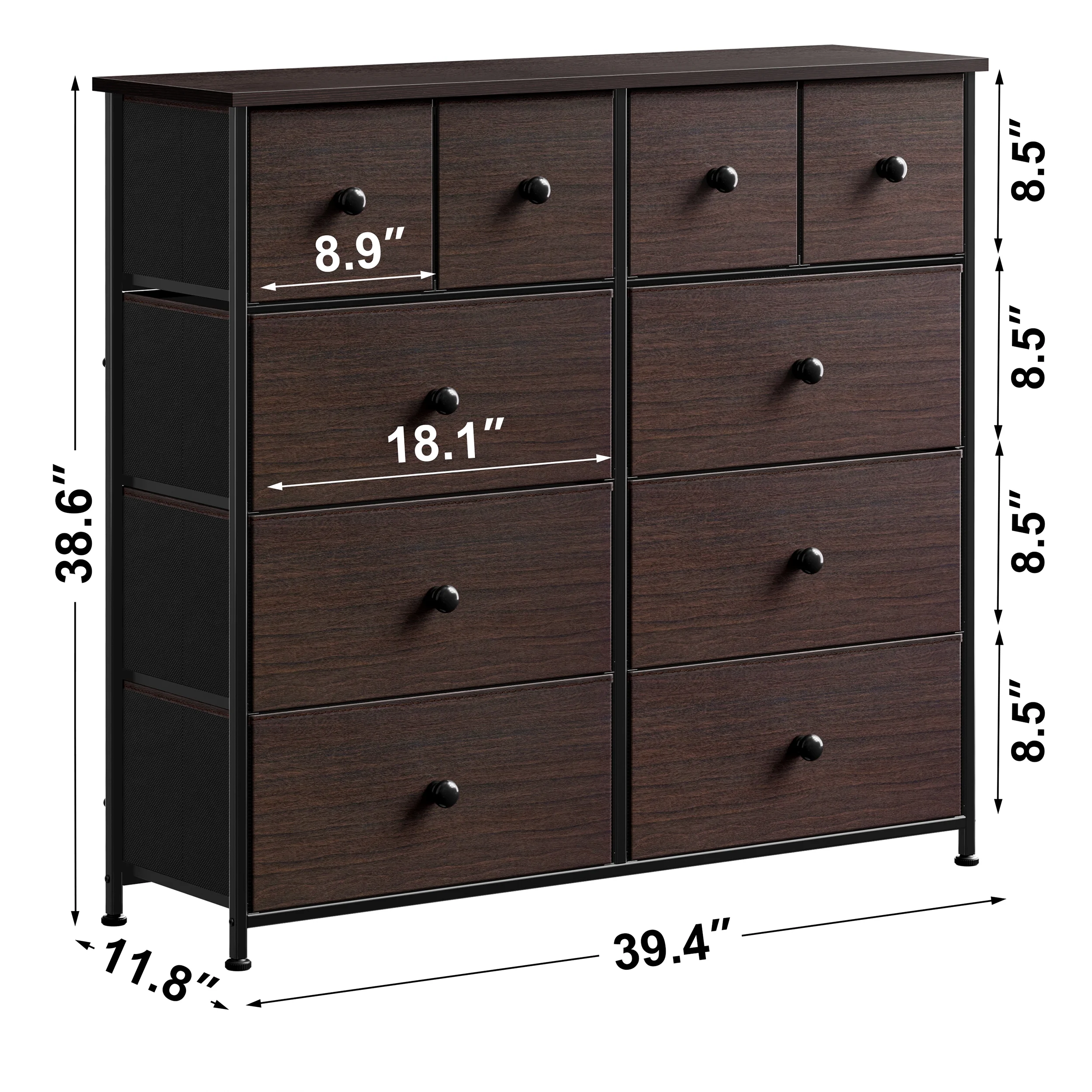 GUNAITO Dressers for Bedroom with 10 Drawer Fabric Chest of Drawers Storage Drawer Unit Tower Luxury Leather Finish Dark Brown