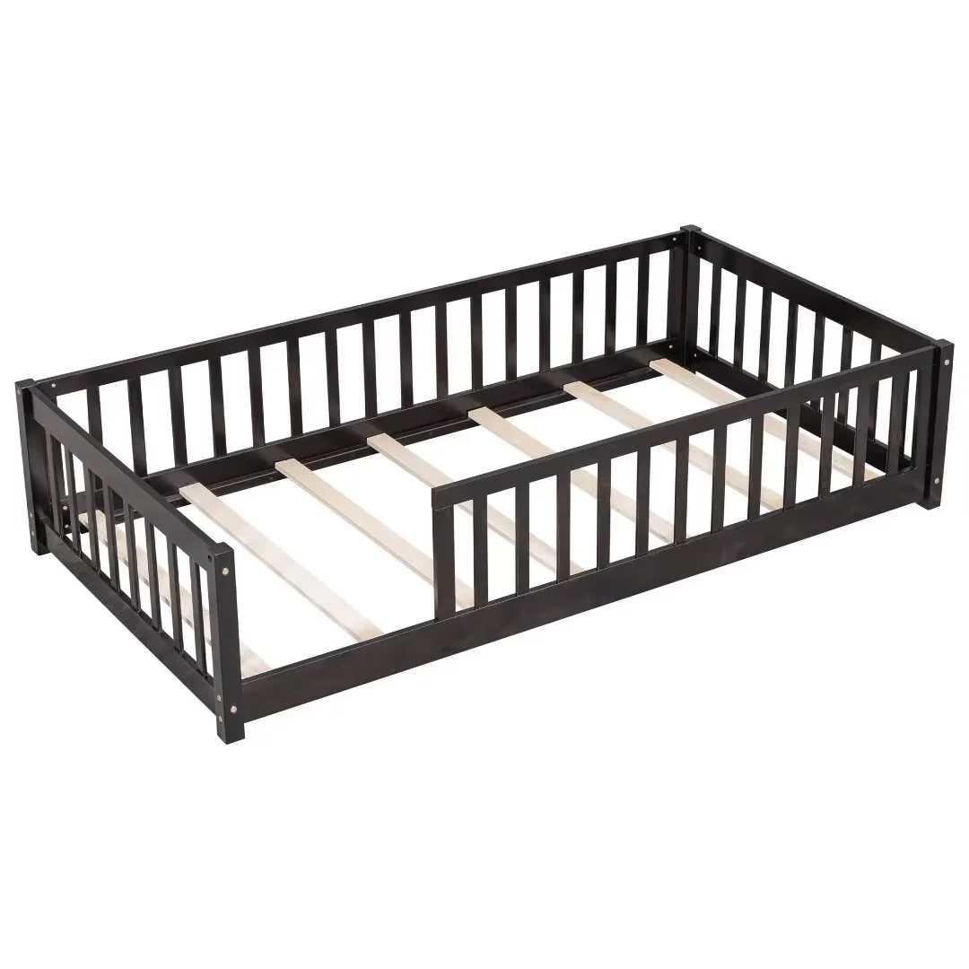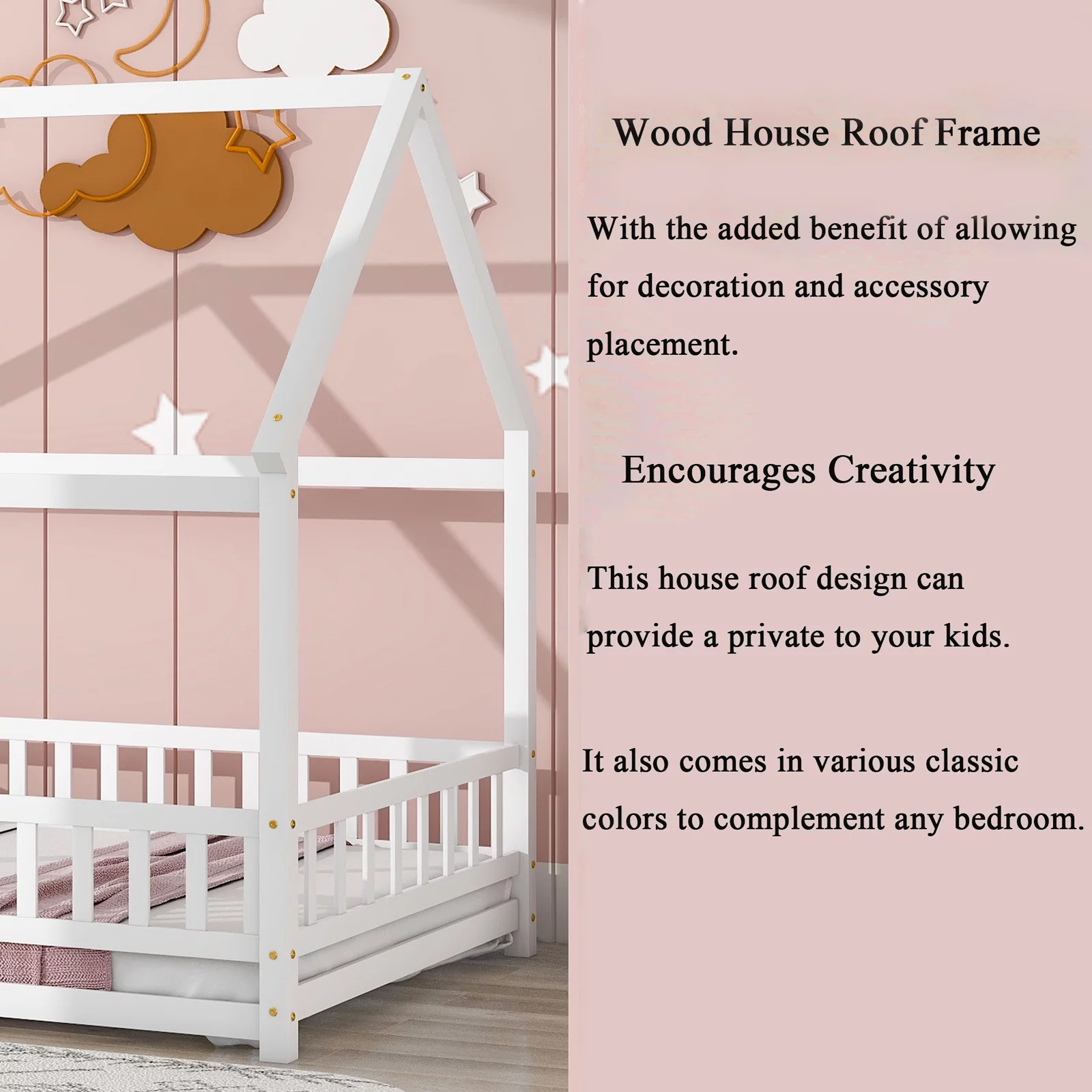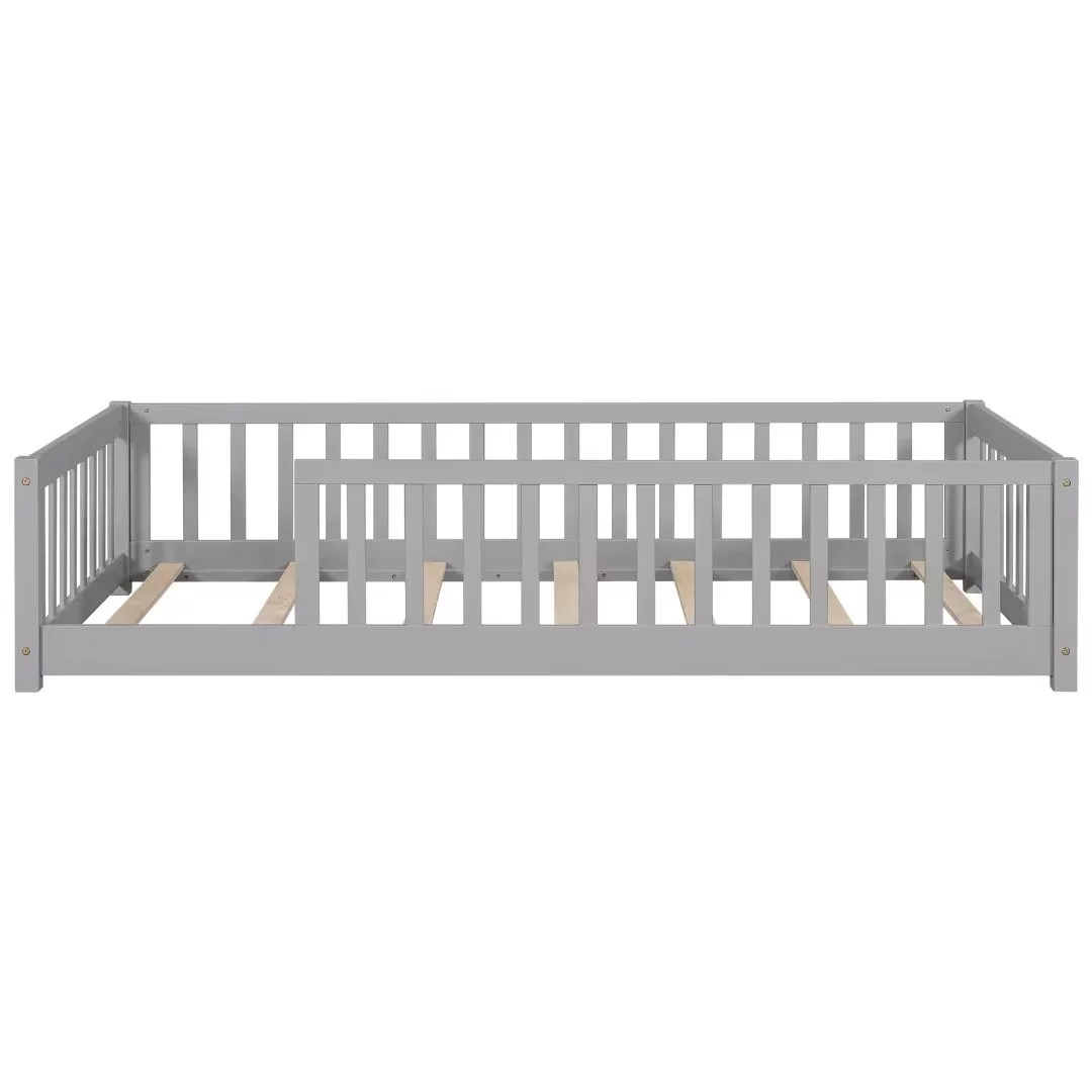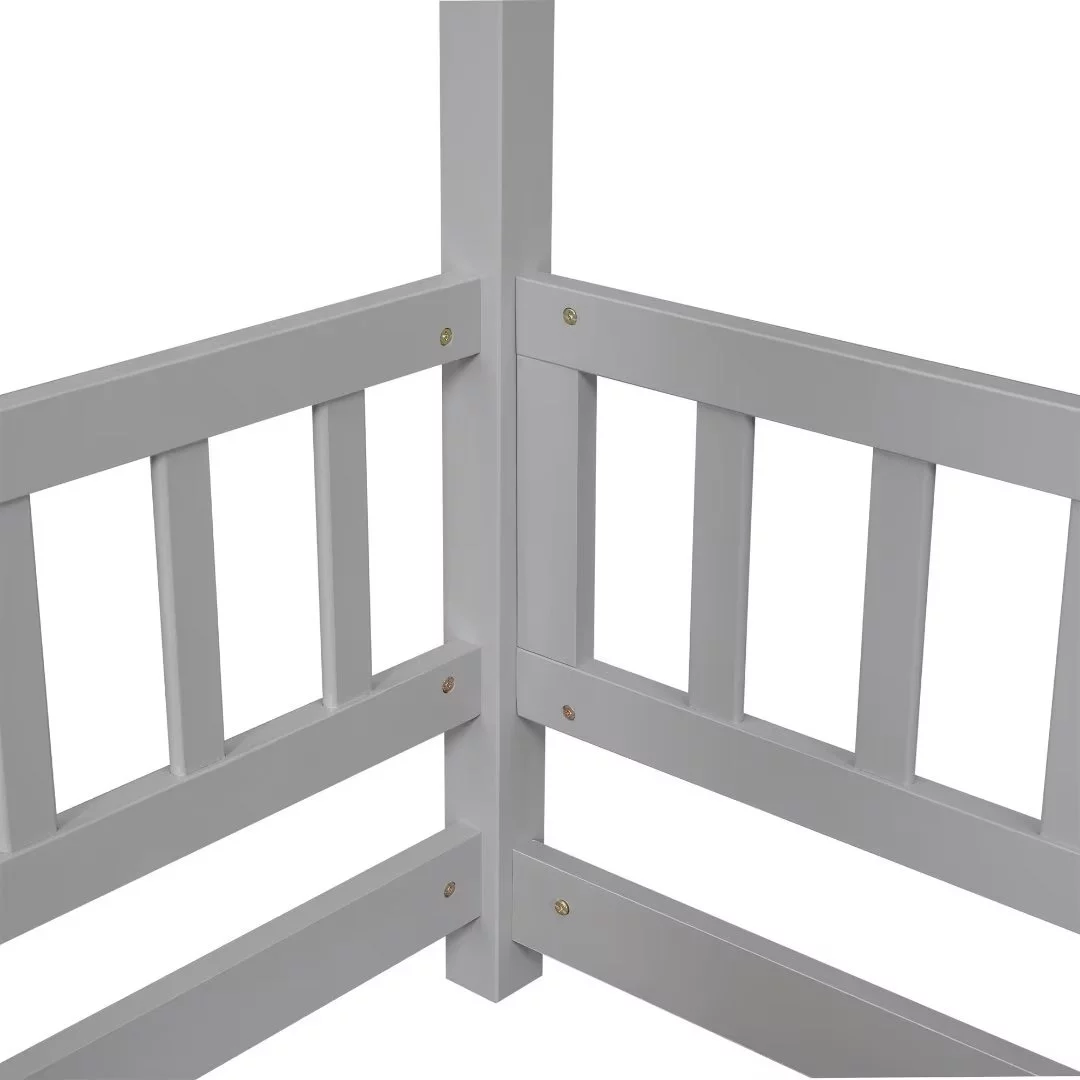 Full Size Floor Bed with Fence Guardrails for Kids, Montessori Bed Playhouse Bed with Roof, Full Platform Bed Frame for Children Teens Bedroom, No Slats Included (White, Full Size)