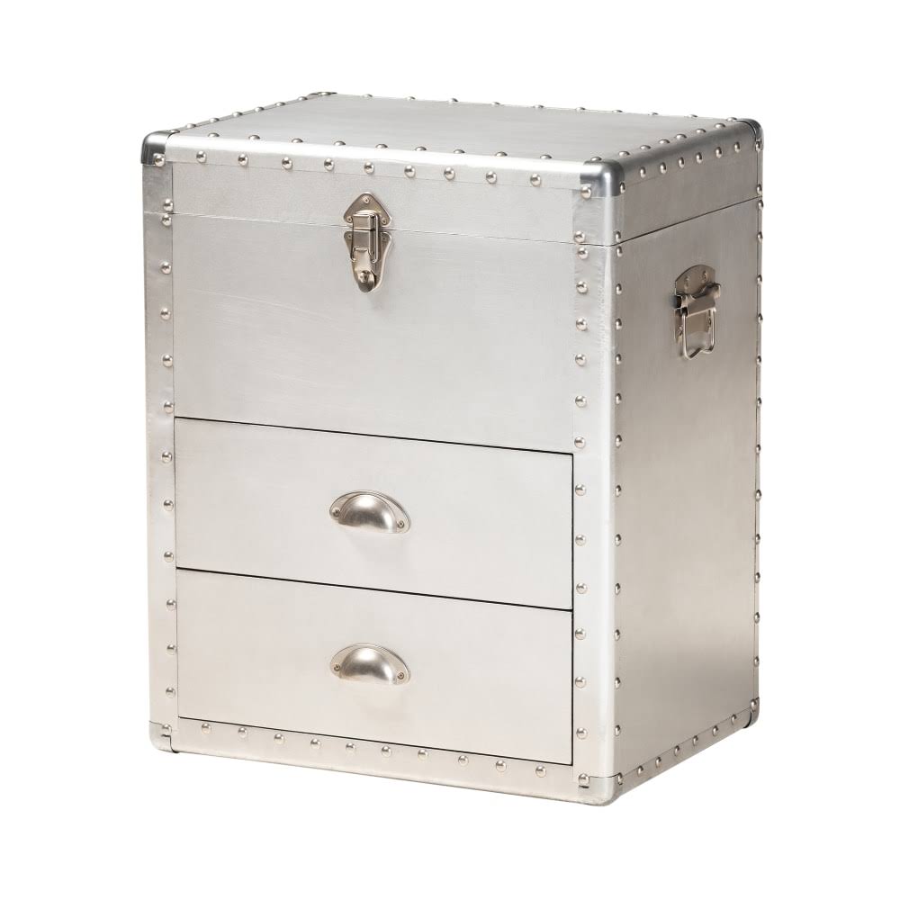 French Industrial Silver Metal 2-Drawer Accent Storage Cabinet - Avayadevconnect