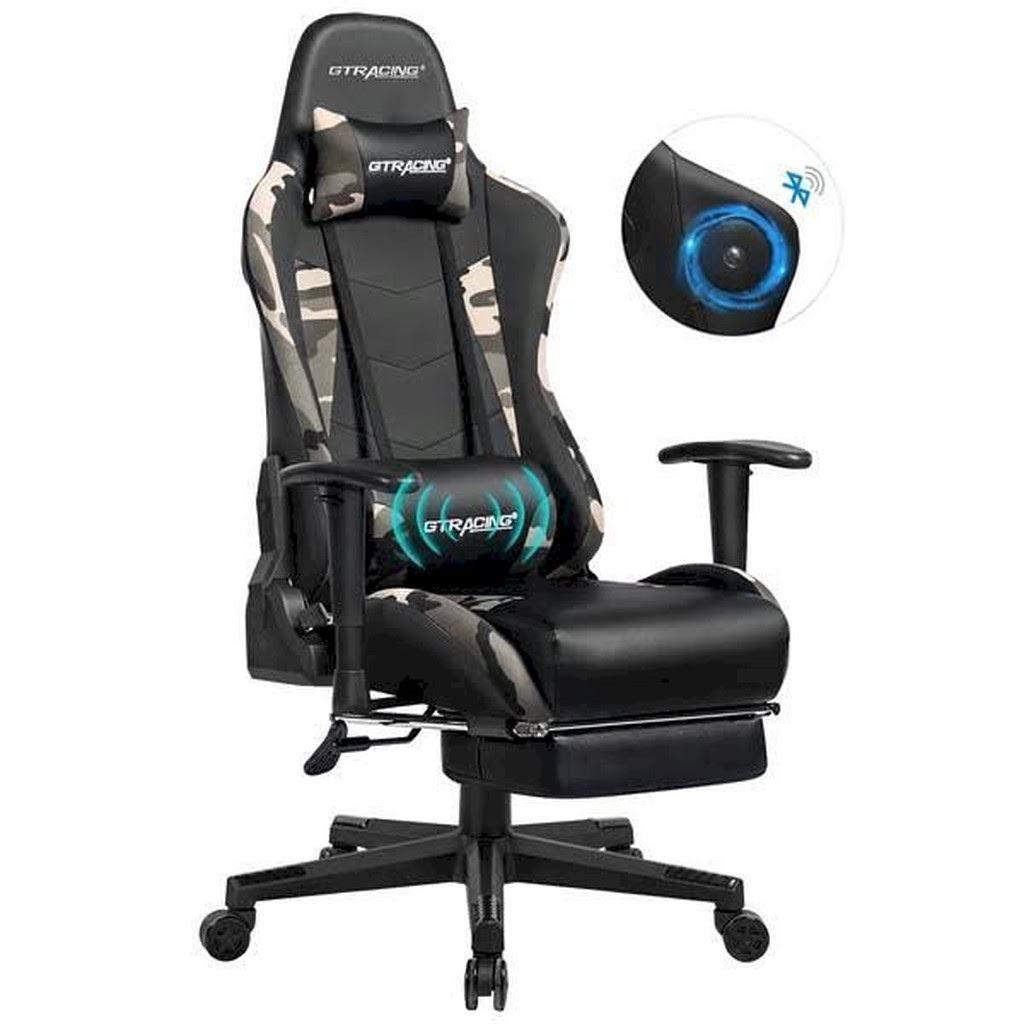 GTRACING 2021 Camo Footrest Massage Gaming Chair with Bluetooth Speakers - Black - Megean
