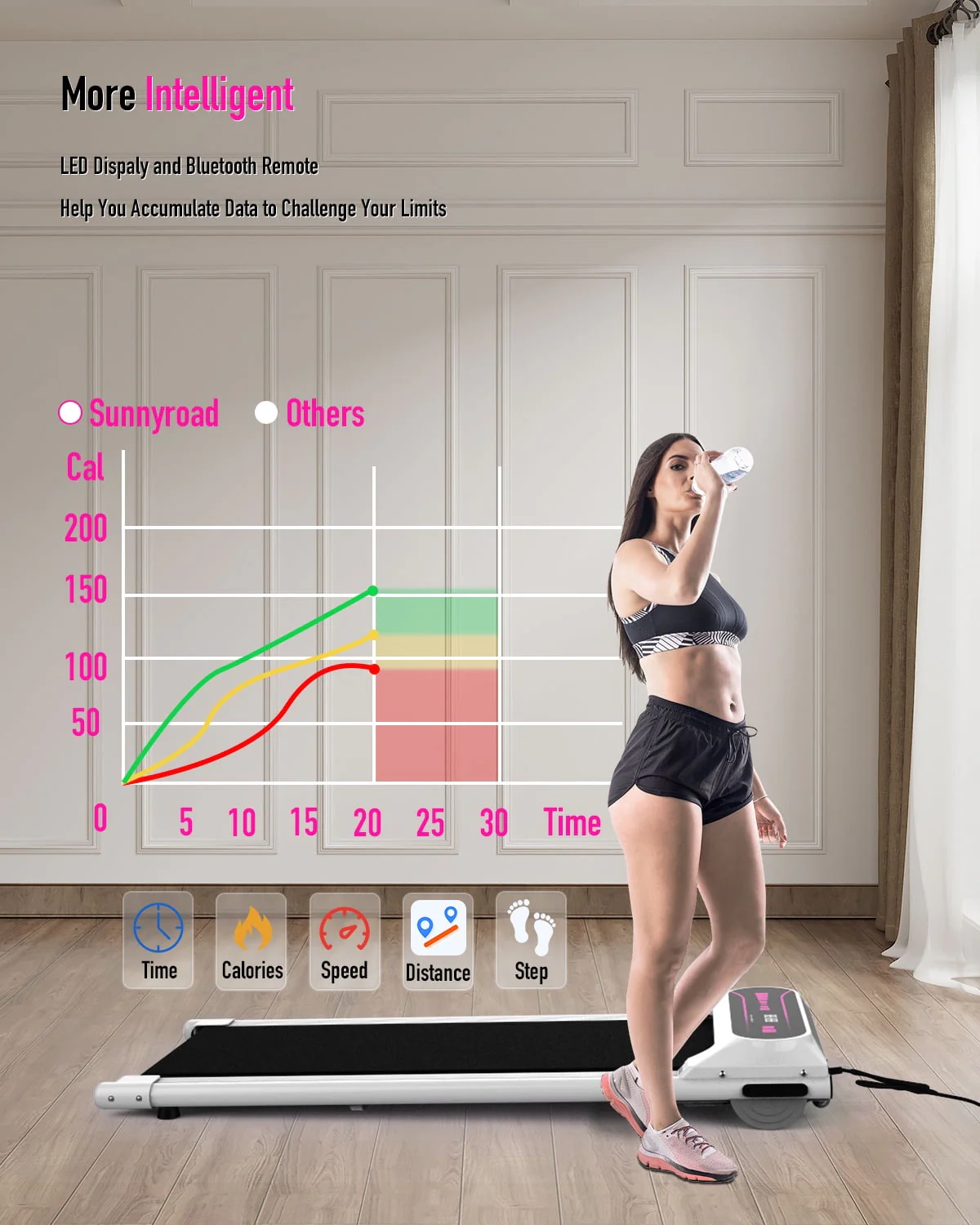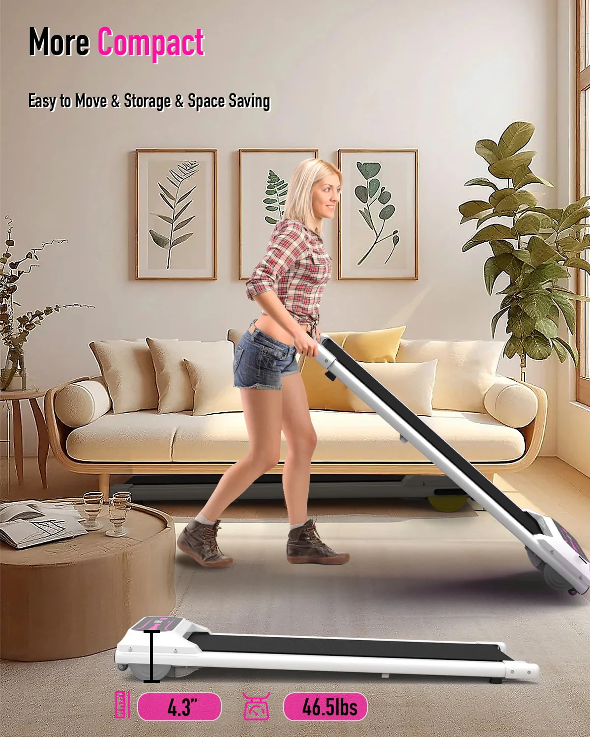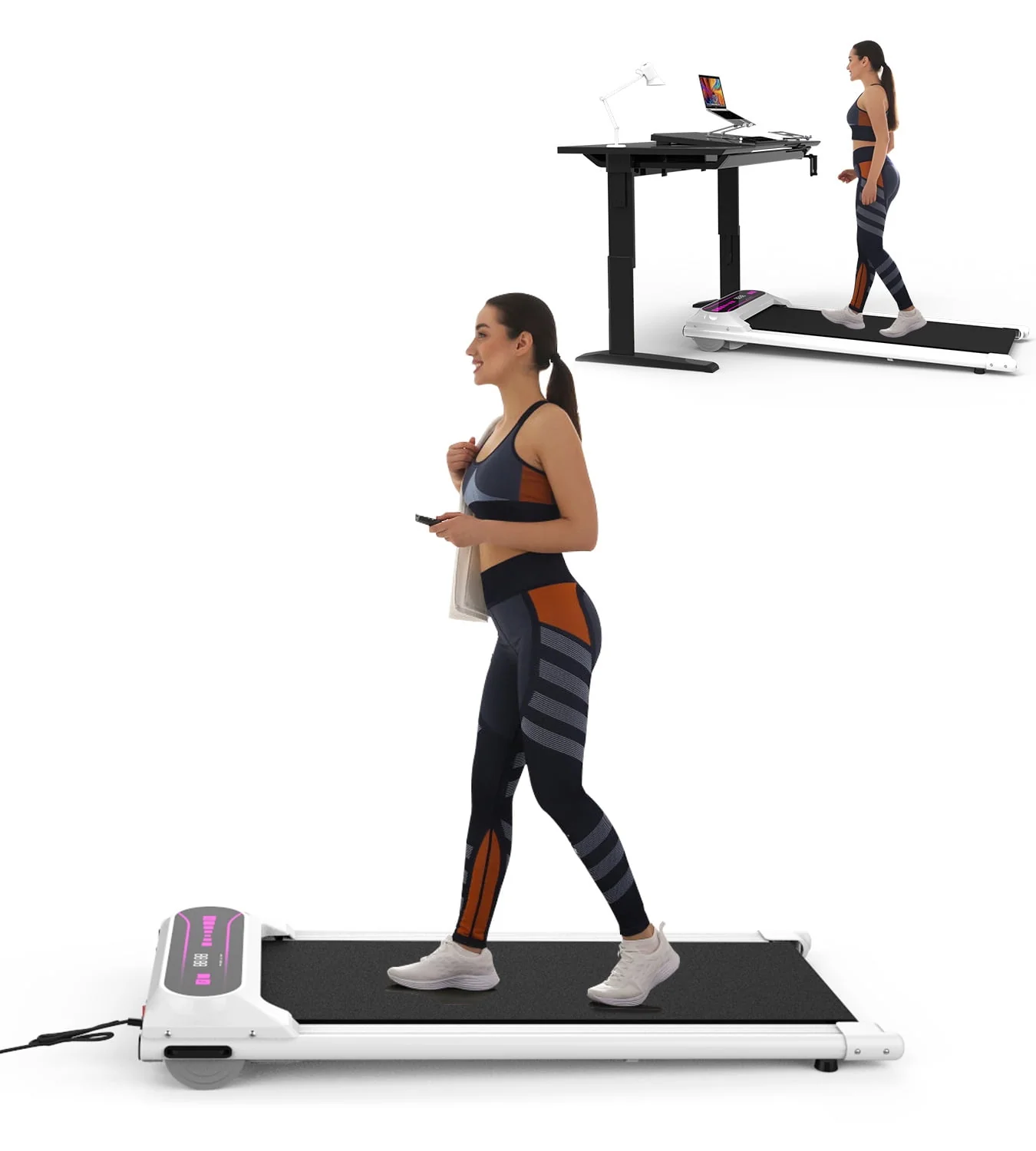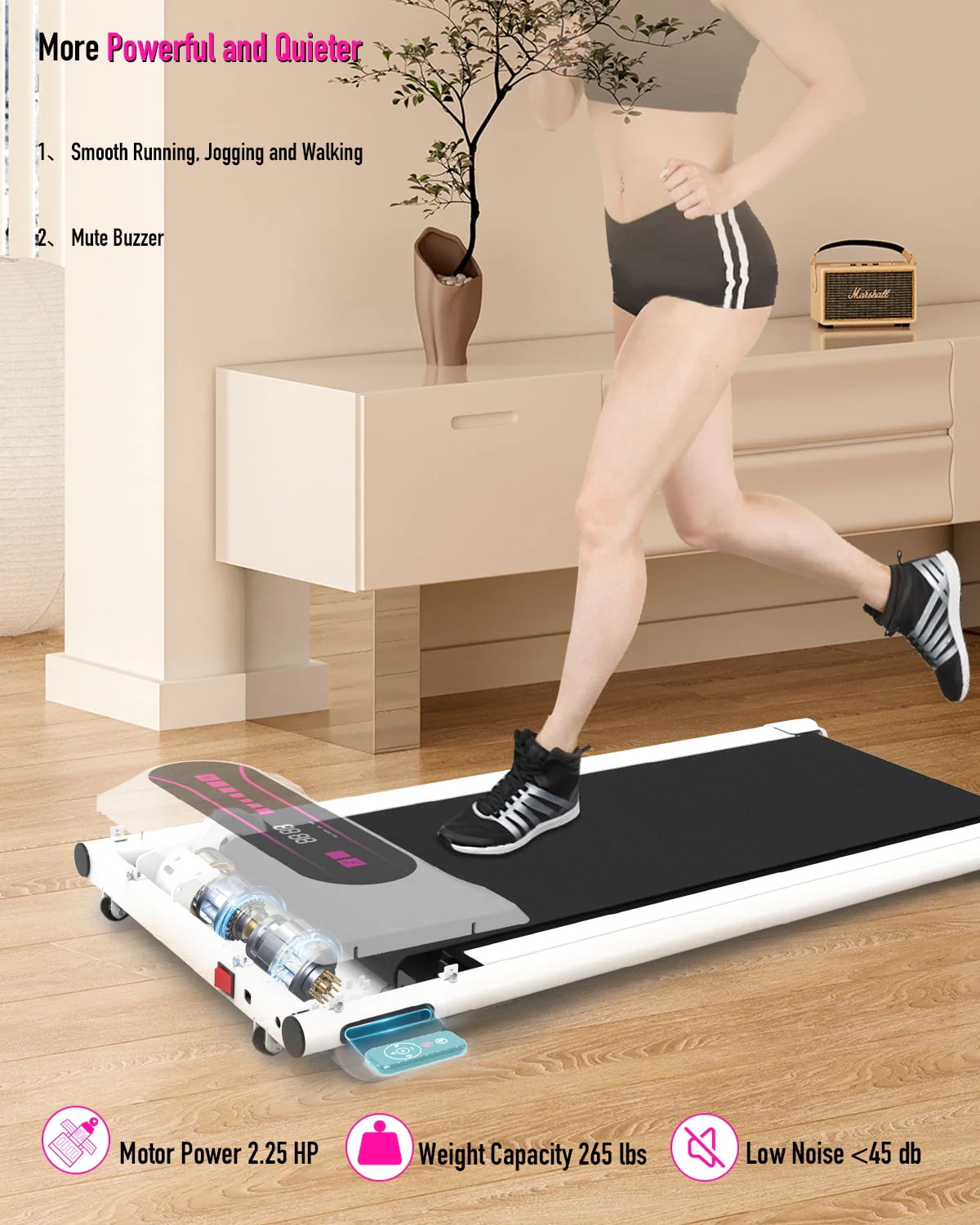 OBENSKY Walking Pad Treadmill Under Desk, 2.25HP Portable Mini Treadmill w/ Remote Control Pink