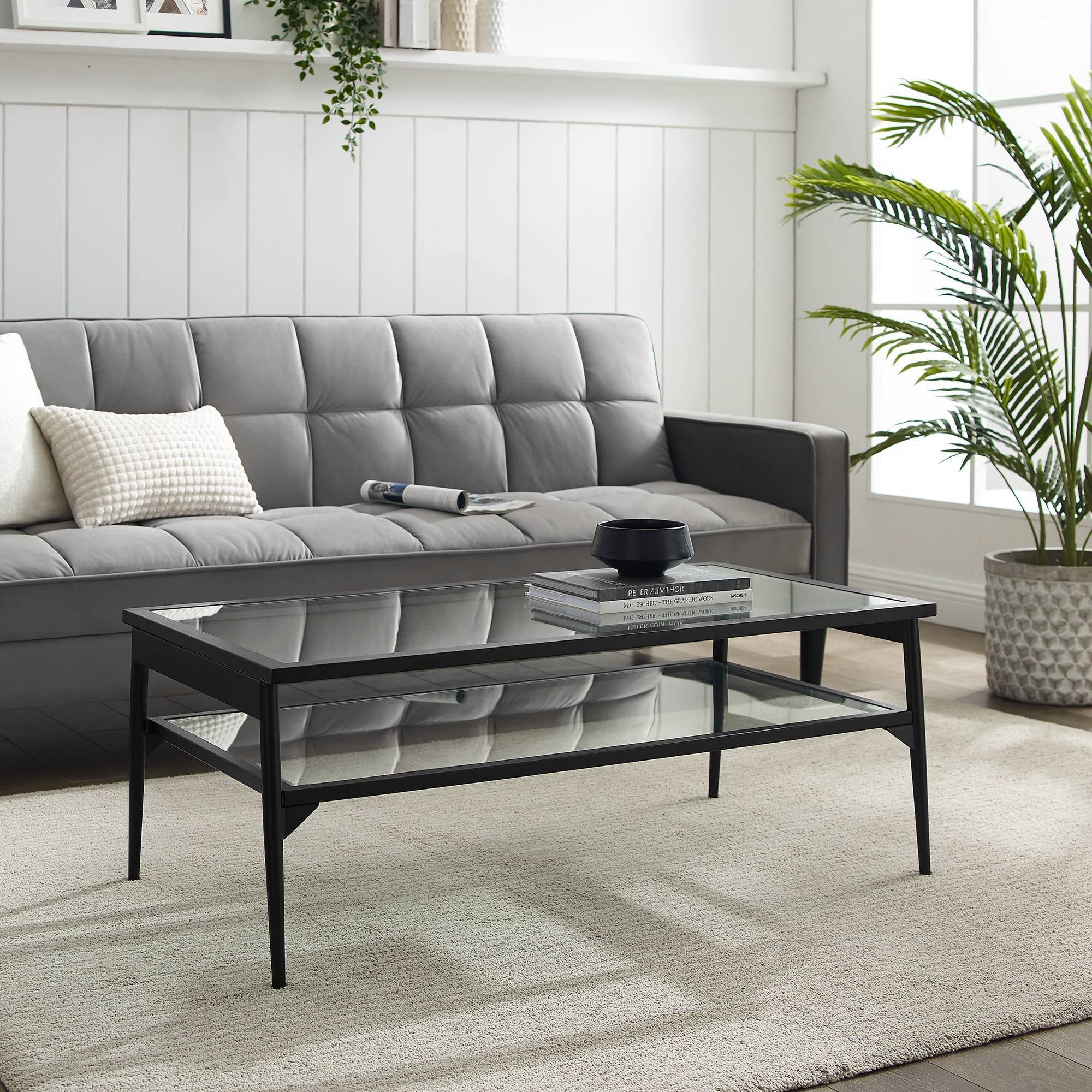 Viv Modern 2 Tier Glass Top Coffee Table Black - Saracina Home - Avayadevconnect
