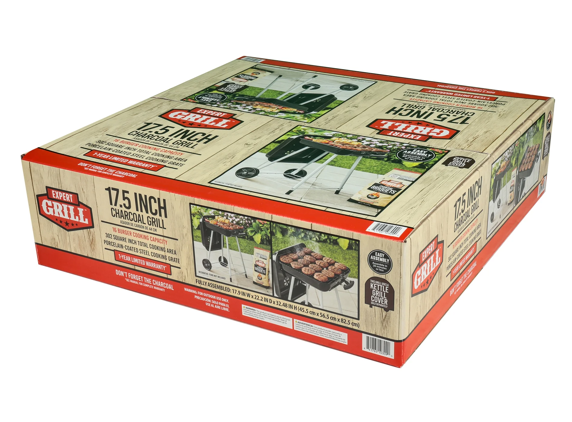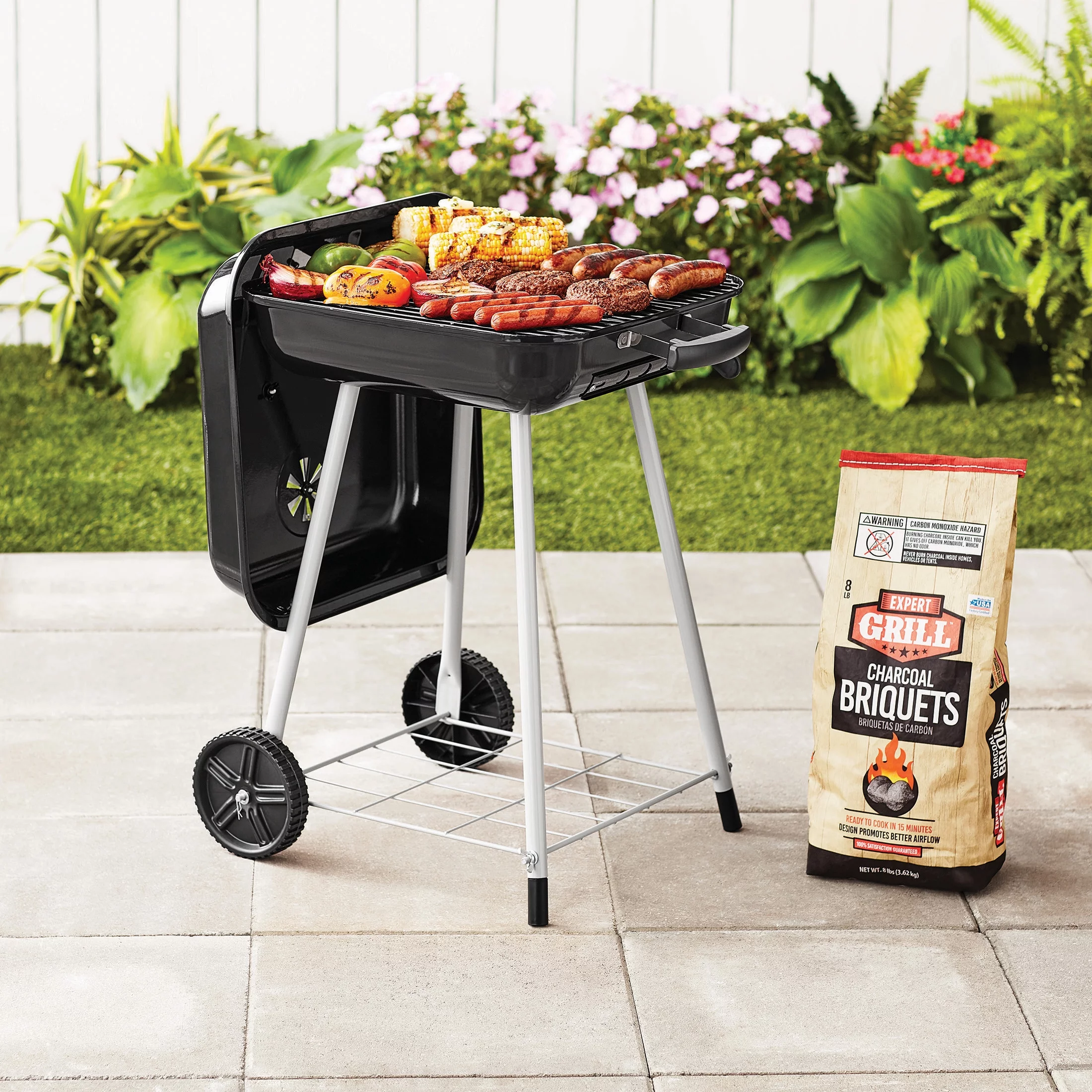 Expert Grill 17.5 Square Steel Charcoal Grill with Wheels, Black