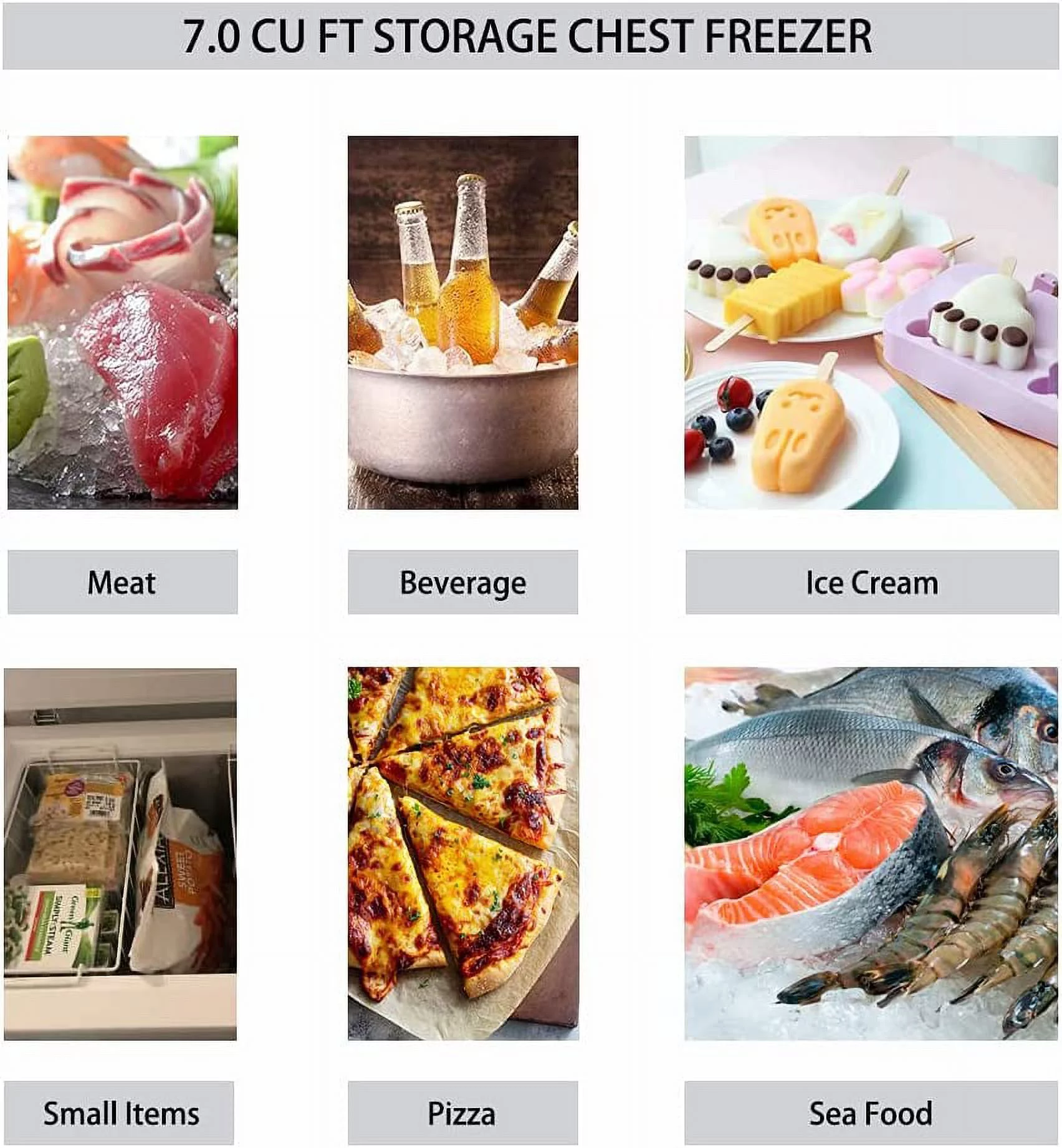 Smad 7.0 Cu ft Chest Freezer Water Drain Garage Kitchen Upright Deep Freezer