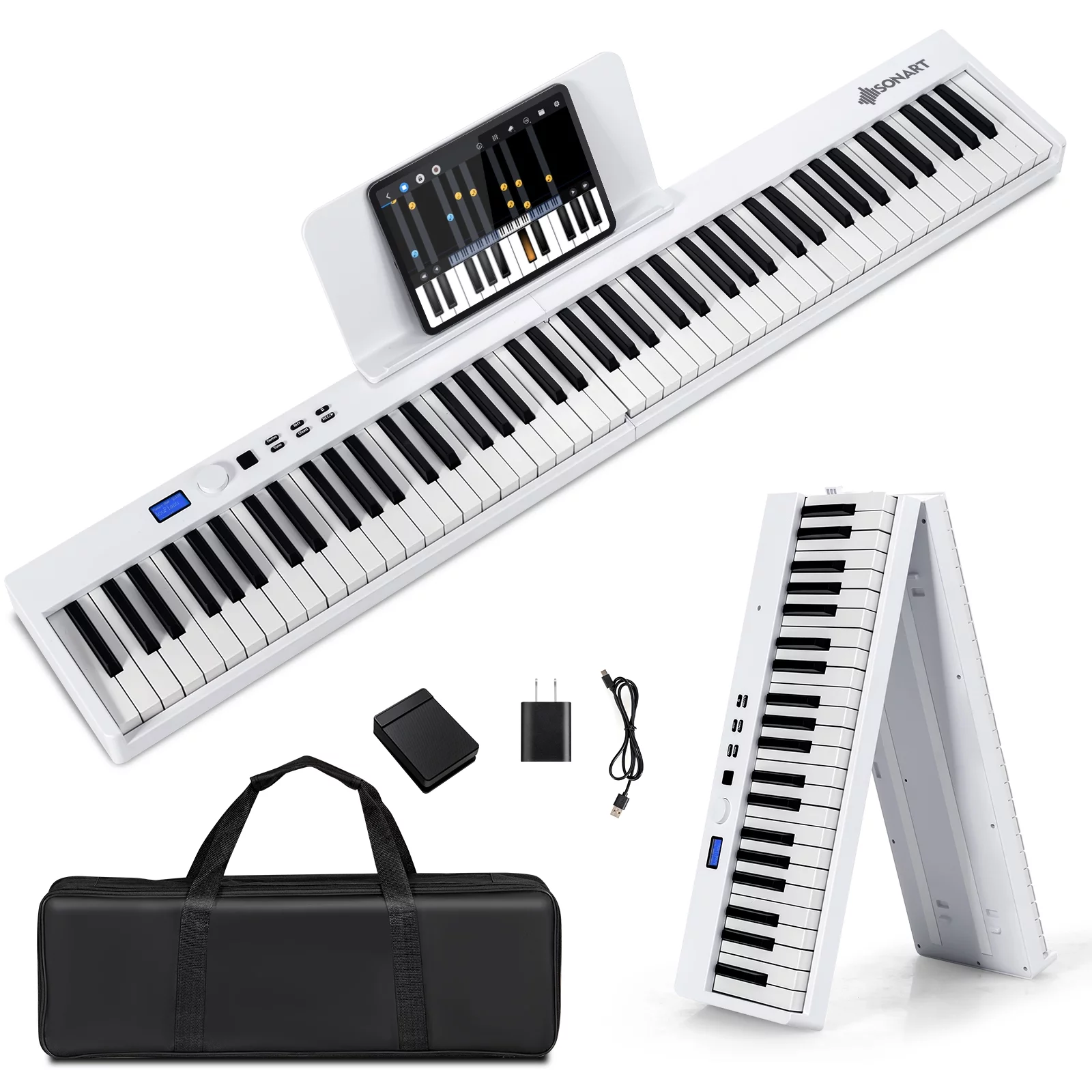 Sonart 88-Key Folding Electric Piano Keyboard Semi Weighted Full Size MIDI white - Curated Treasures Market