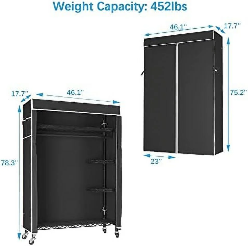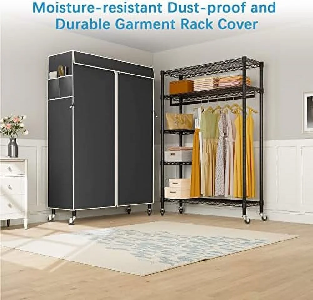 ZFGSUIJN V11C Wire Garment Rack Rolling 5 Tiers Heavy Duty Adjustable Portable Closet with Lockable Wheels Wardrobe White Metal Clothing Rack with Grey Oxford Fabric Cover Max Load 452L - Curated Treasures Market